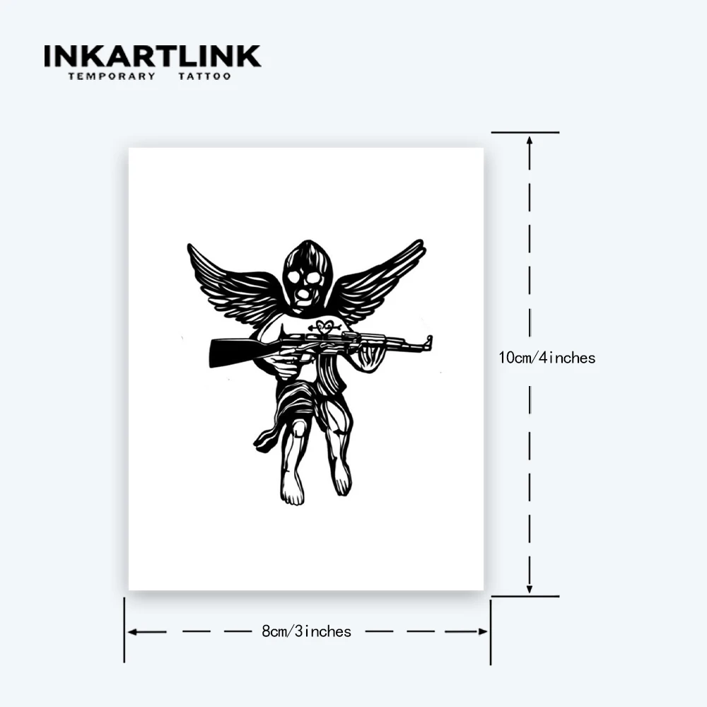 Autocollant de tatouage temporaire ange avec un pistolet, tatouage magique imperméable, faux tatouage dure jusqu’à 15 jours, tatouage semi-permanent