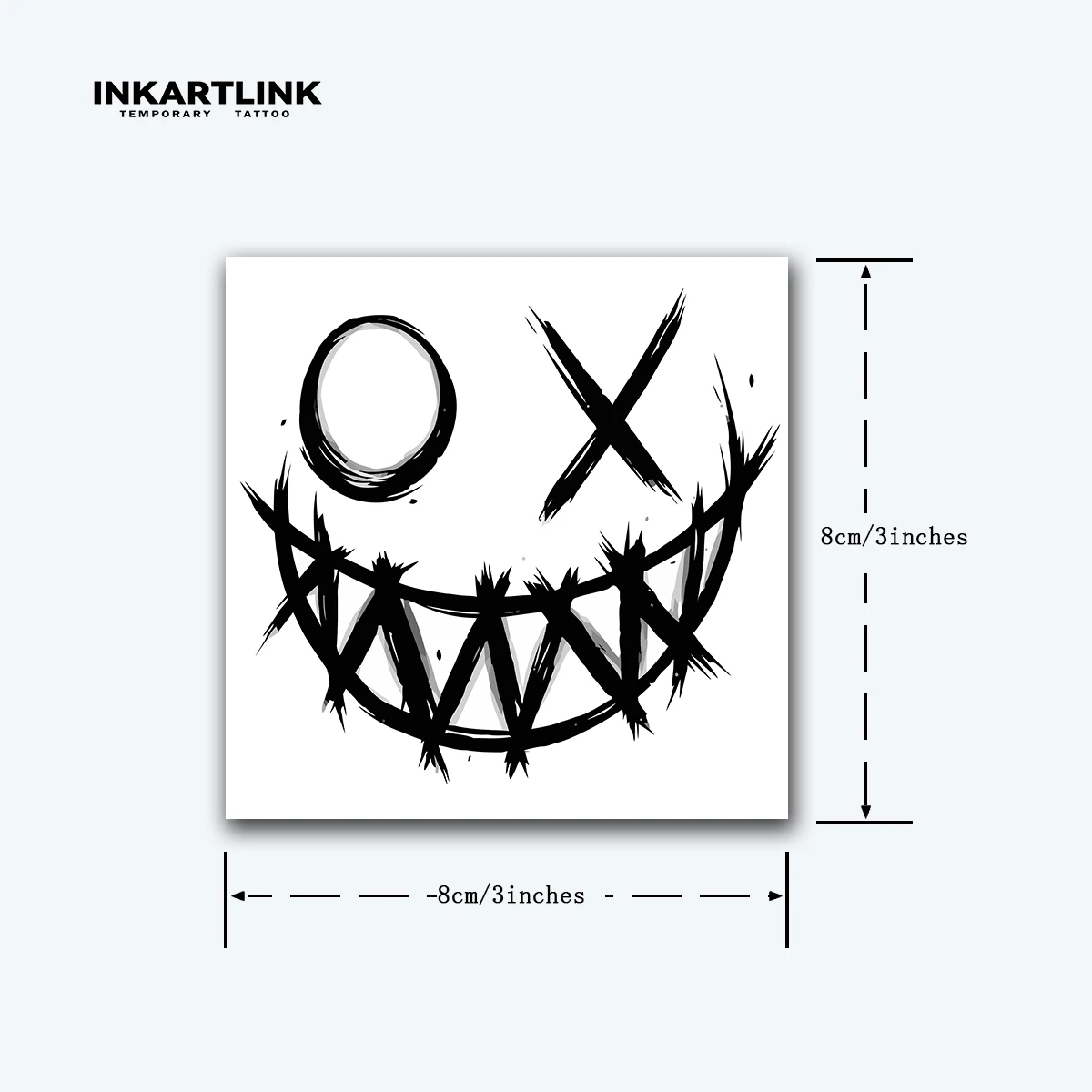 4 : Appuyez doucement et maintenez le tatouage pendant 20 secondes, puis décollez complètement.Selon votre peau, le tatouage deviendra bleu foncé ou noir dans les 24 heures!