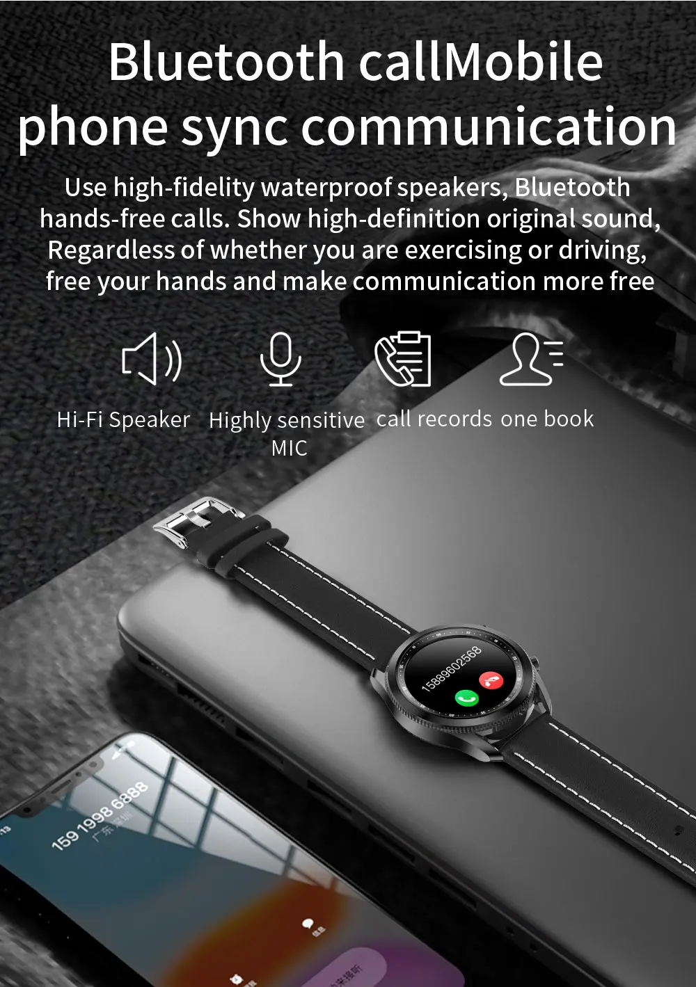 TK88 BYMUSE: Montre Homme Connectée à Soupirail Presse, Météo, SPO2 et Bluetooth.