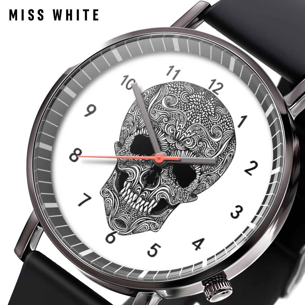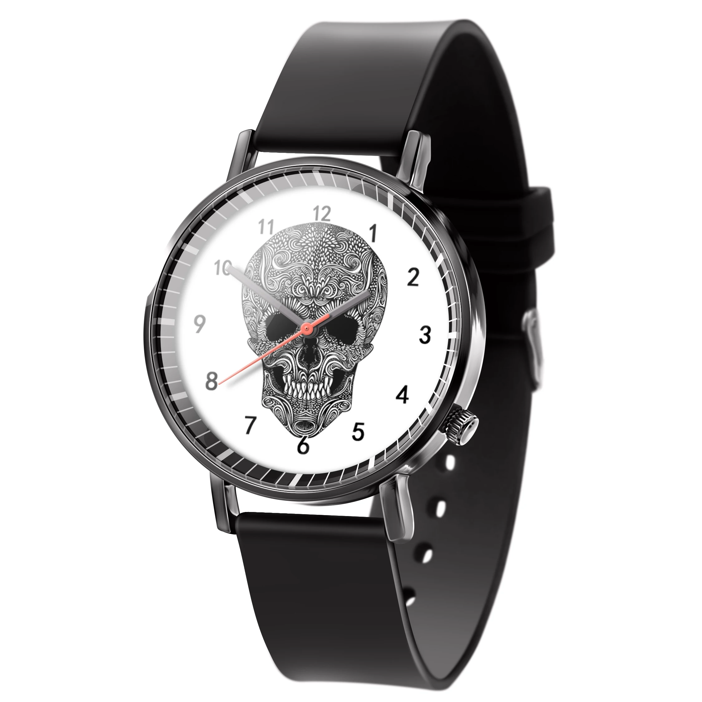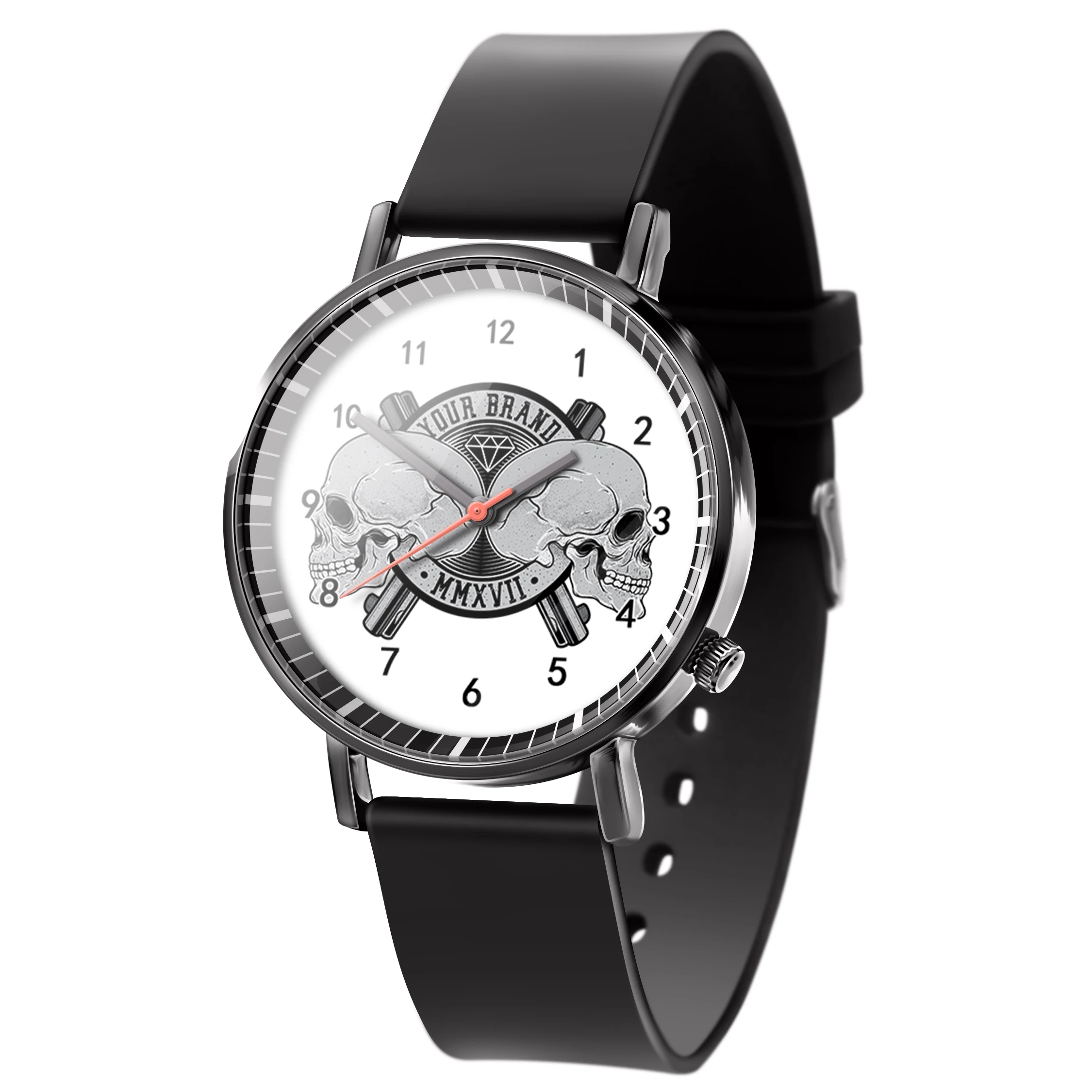 « Skullwatch : Montres tête de mort noire et blanche, caoutchouc et quartz, mode et élégance ».