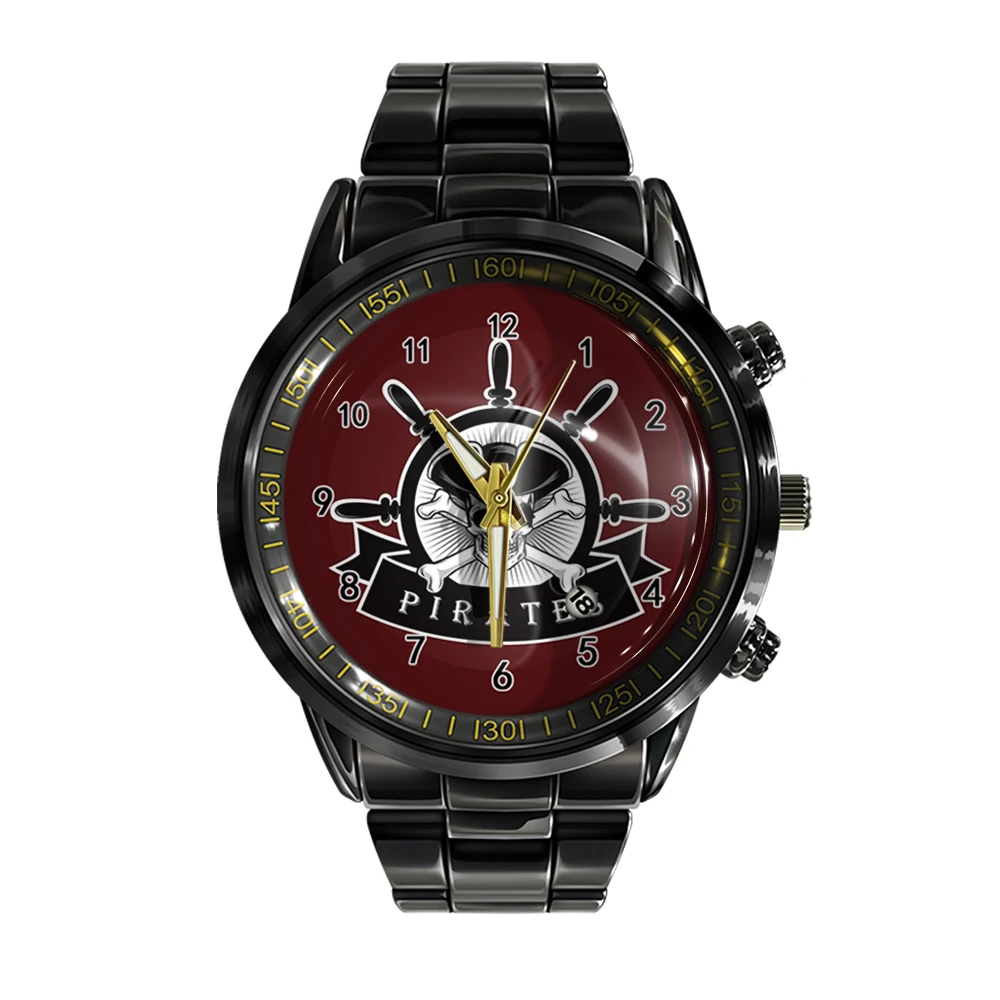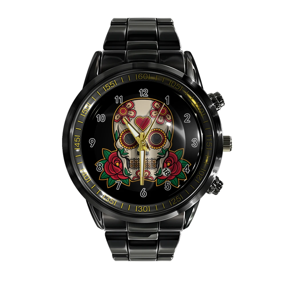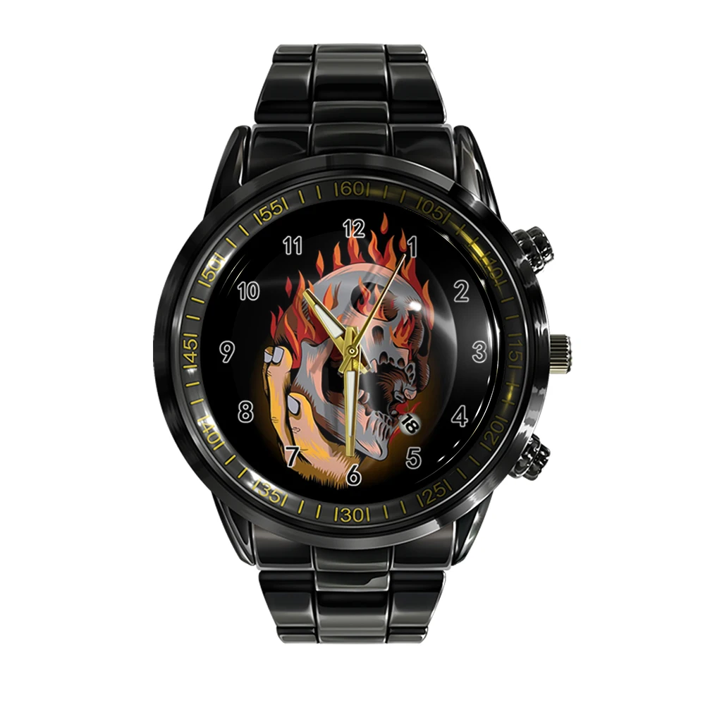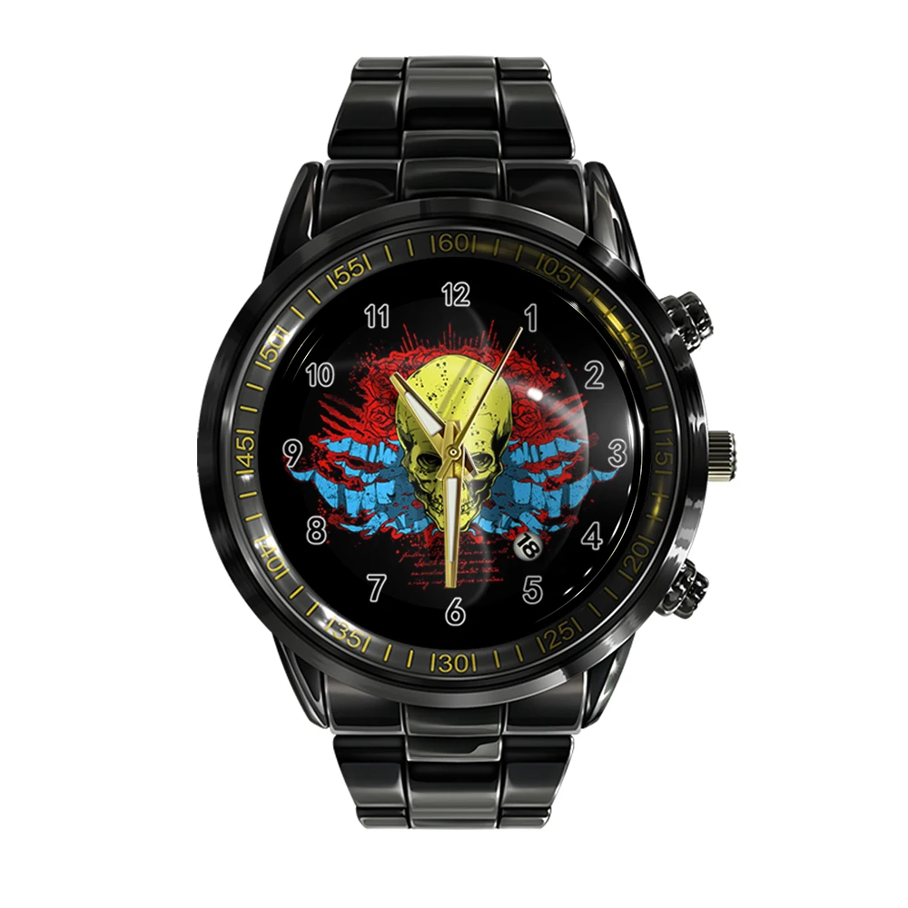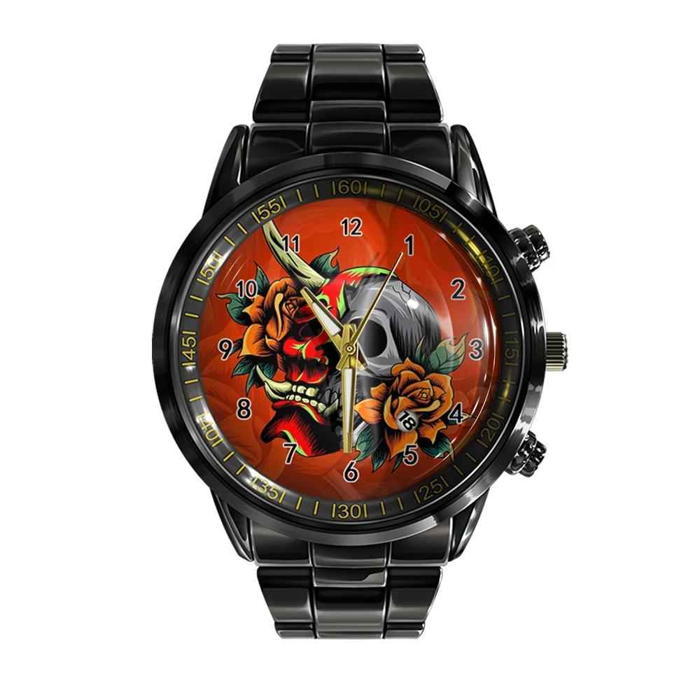 « Skullwatch » – Montre bracelet en acier pour homme, calendrier ual, couleur noir et blanc, tête de mort, sport, affaires.