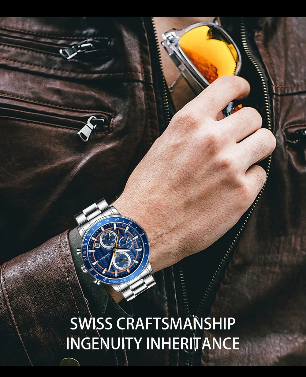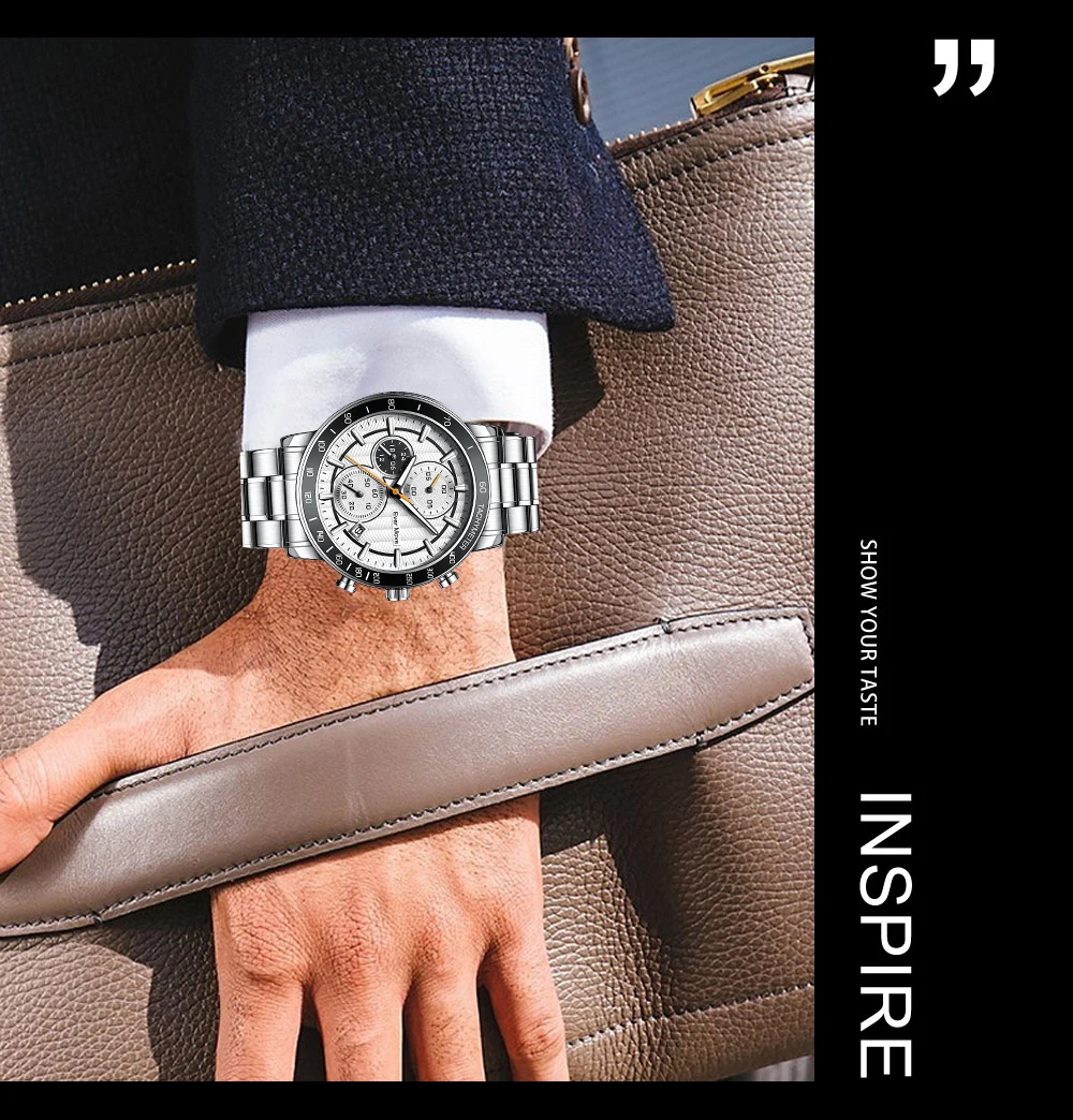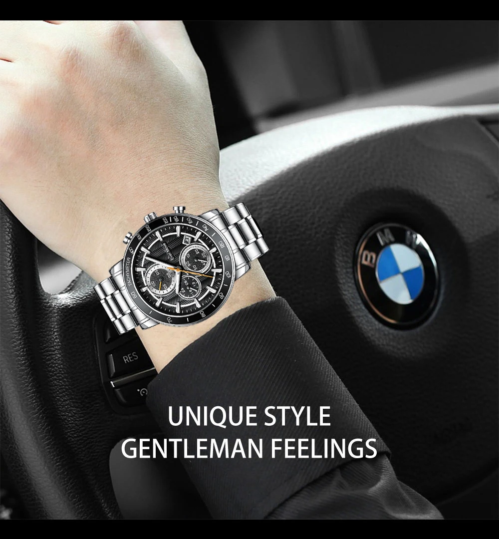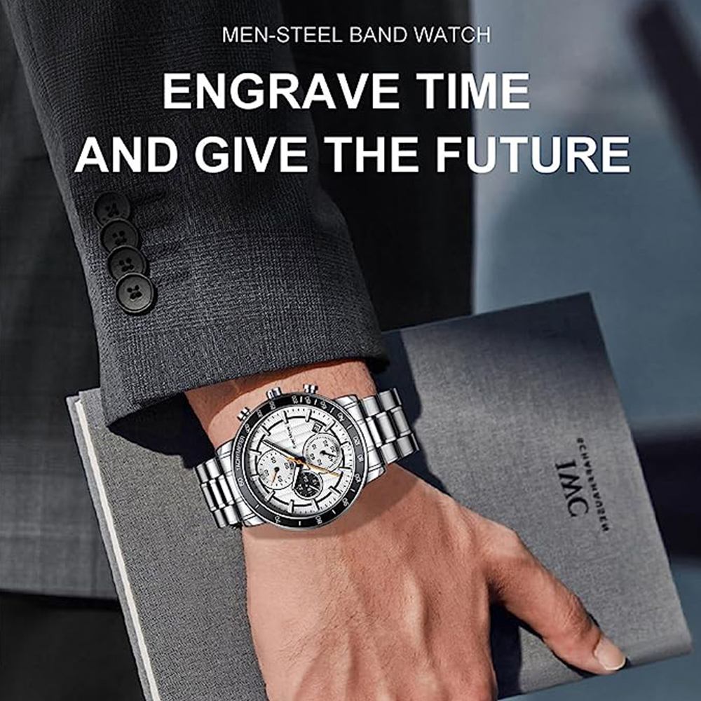 * La montre pour hommes est une montre multifonctionnelle avec trois sous-cadrans de chronographe et une fonction de calendrier. Ajoutez à la commodité et au plaisir de votre vie, profitez pleinement de votre bon temps. C’est le meilleur cadeau pour votre famille et vos amis!