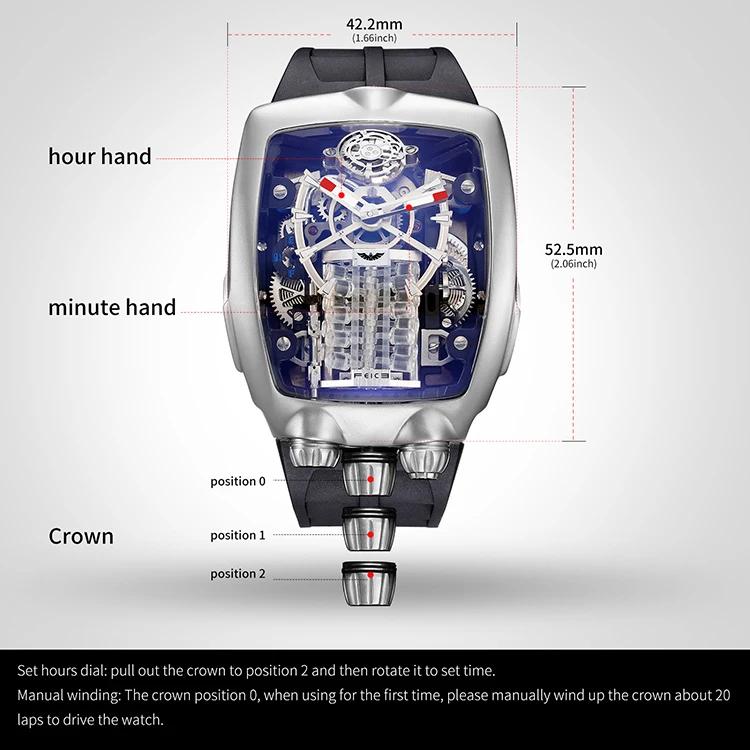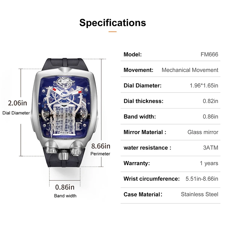 Description:1. montres automatiques pour hommes: forme plein creux vous permettant de voir le design exquis à l’intérieur de la montre-artisanat directement et vous pouvez sentir le mouvement mécanique à tout moment.