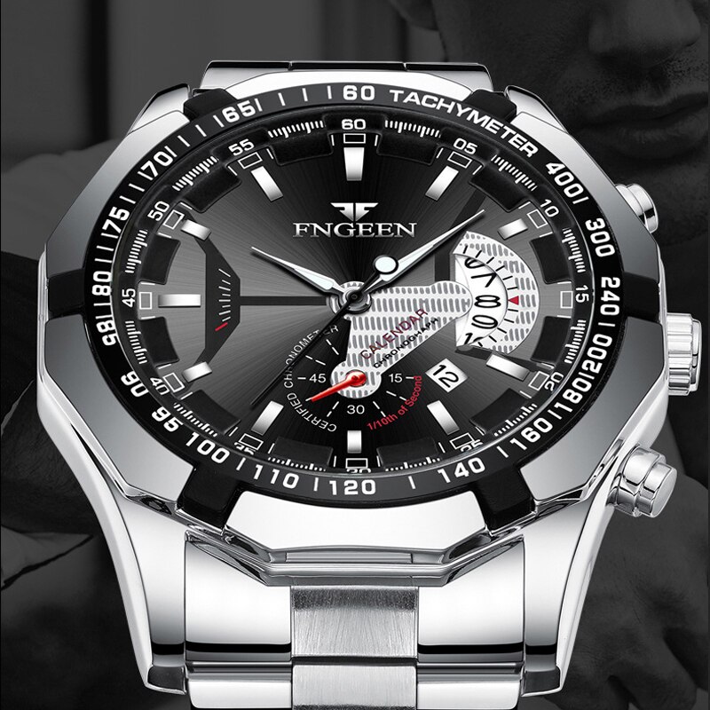 FNGEEN – montres de luxe pour hommes, bracelet en acier inoxydable, mode, étanche, à Quartz, calendrier, horloge masculine, reloj hombre