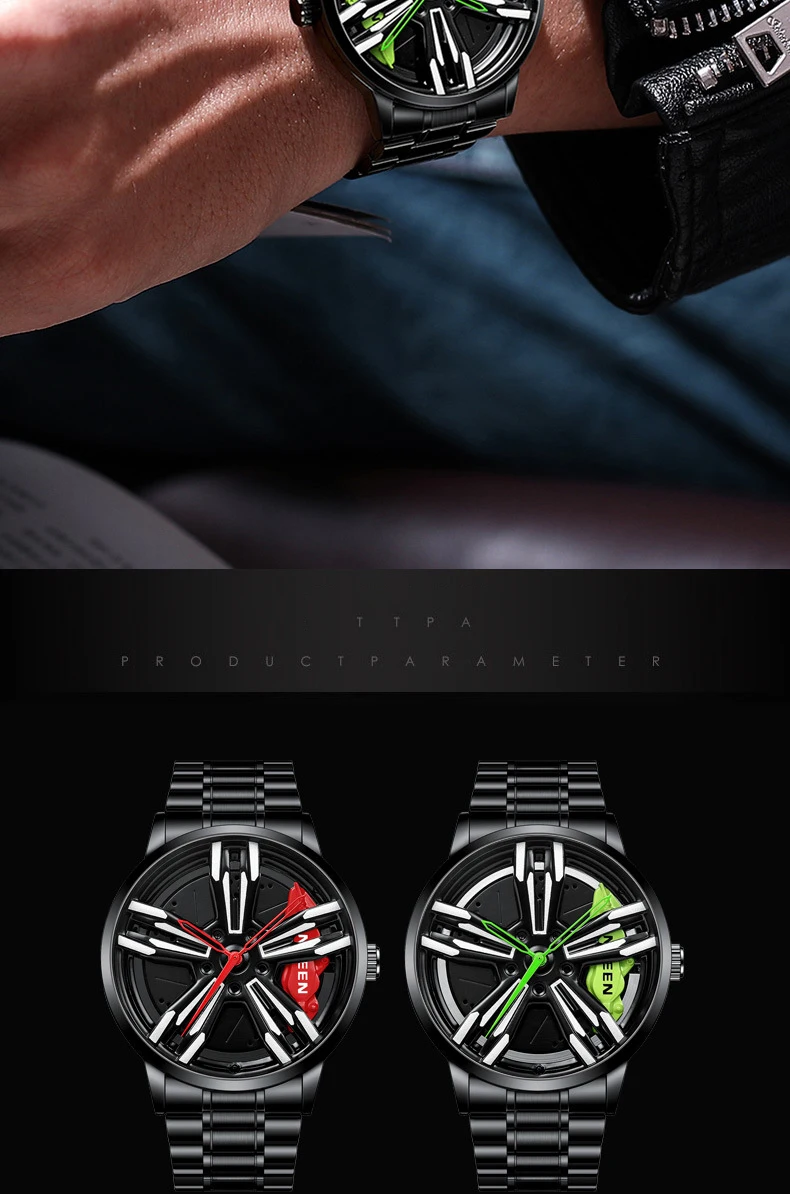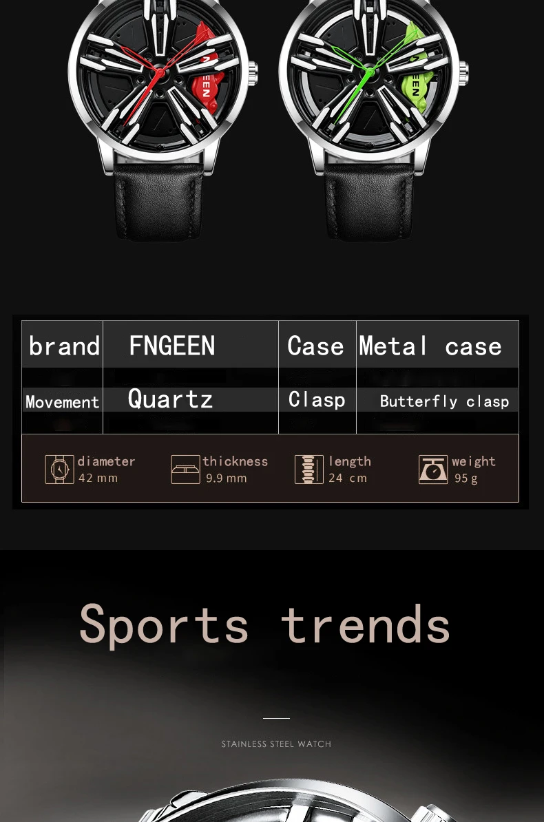 FNGEEN – montre de course pour hommes, tendance, personnalité, cadran de frein, étrier vert, étanche, L001