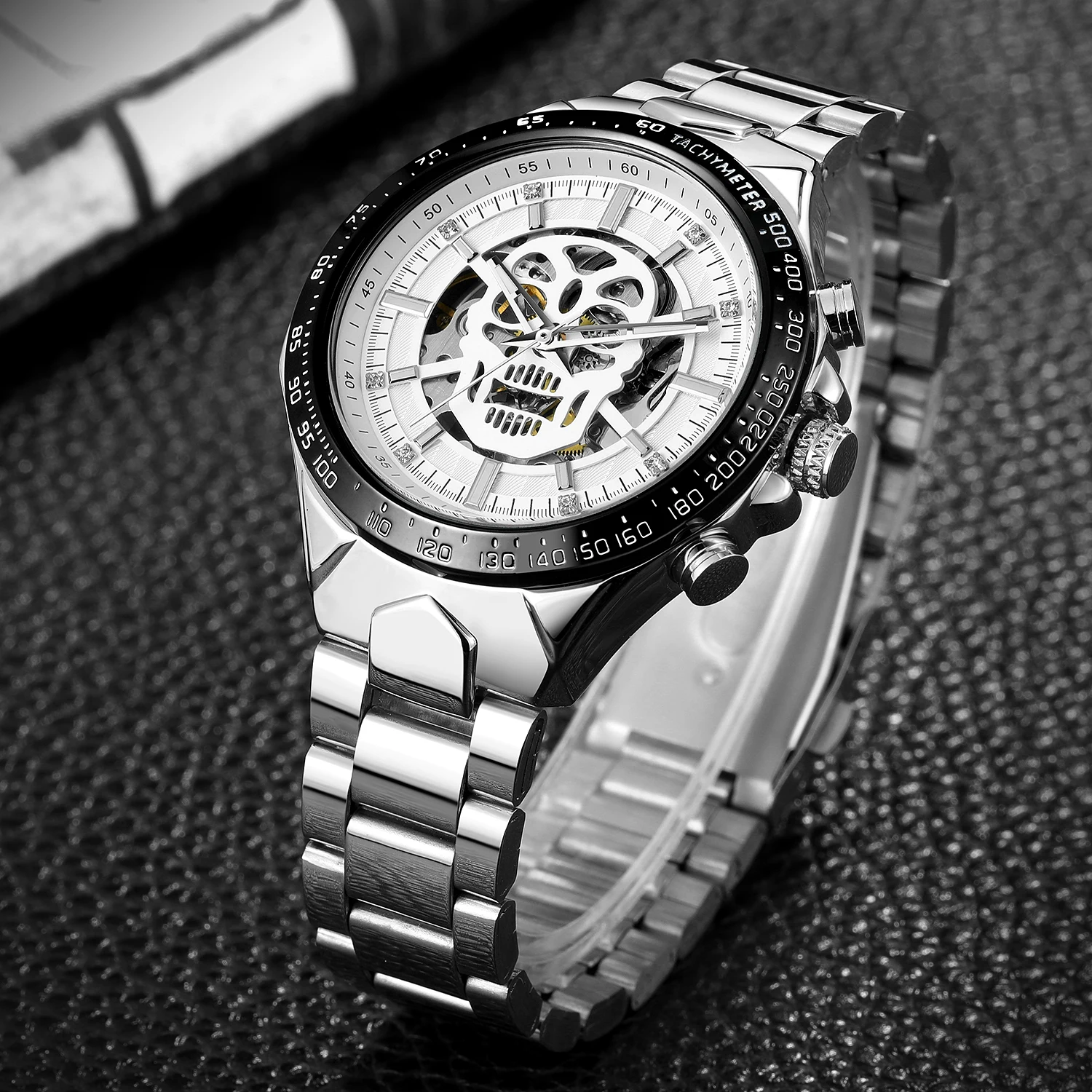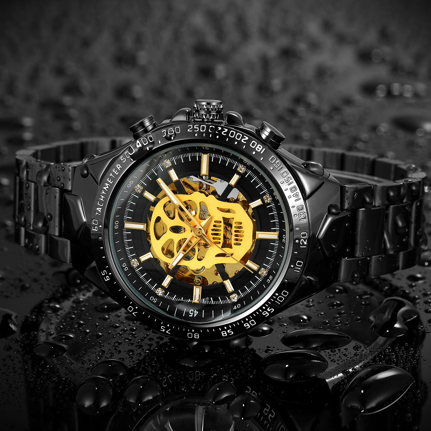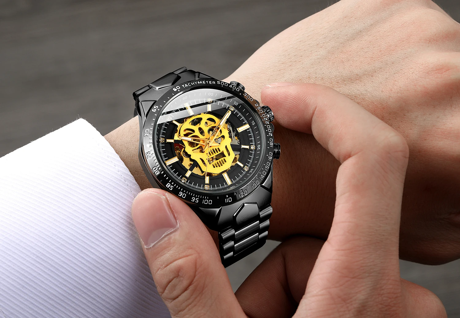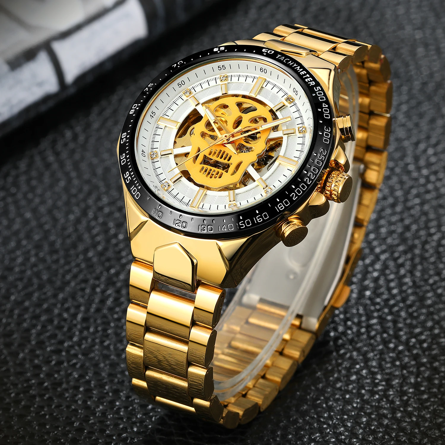 Ajoutez une touche de Steampunk à votre style avec les Montres Automatiques Steampunk pour Homme de la Série Luxe Golden Skull Modules Seton Clock!