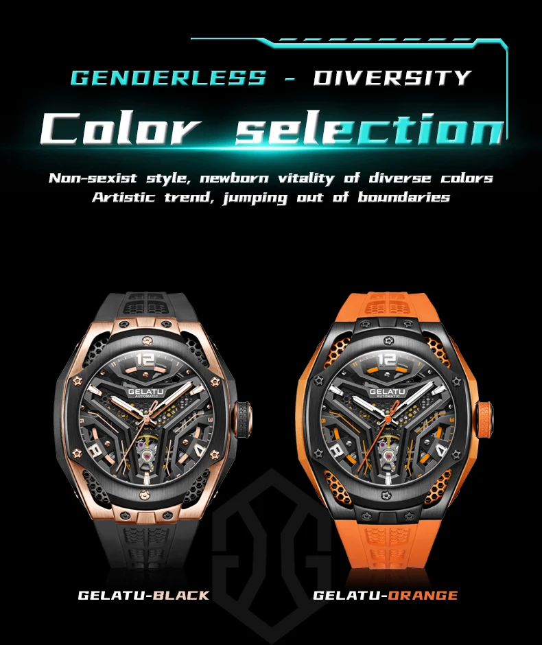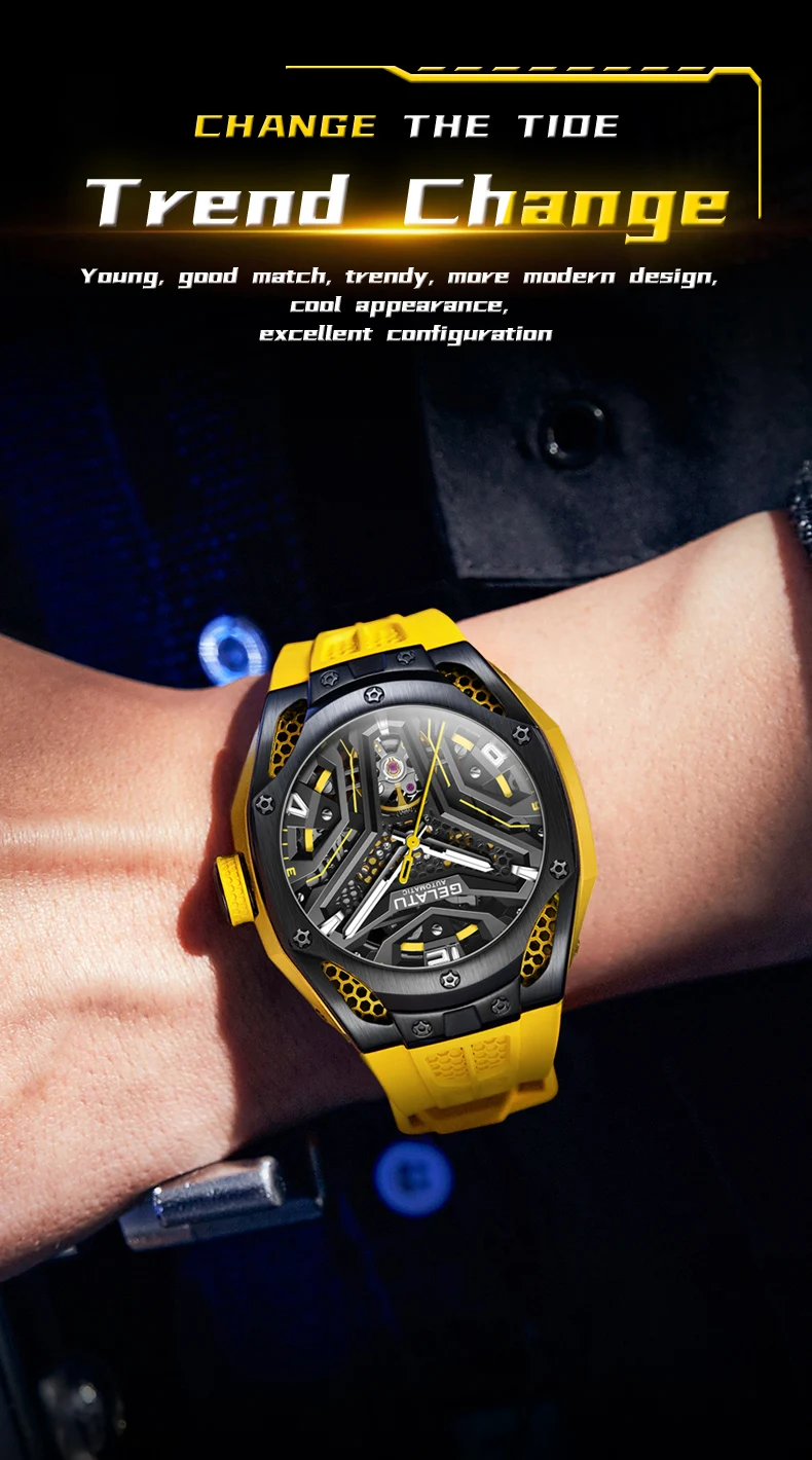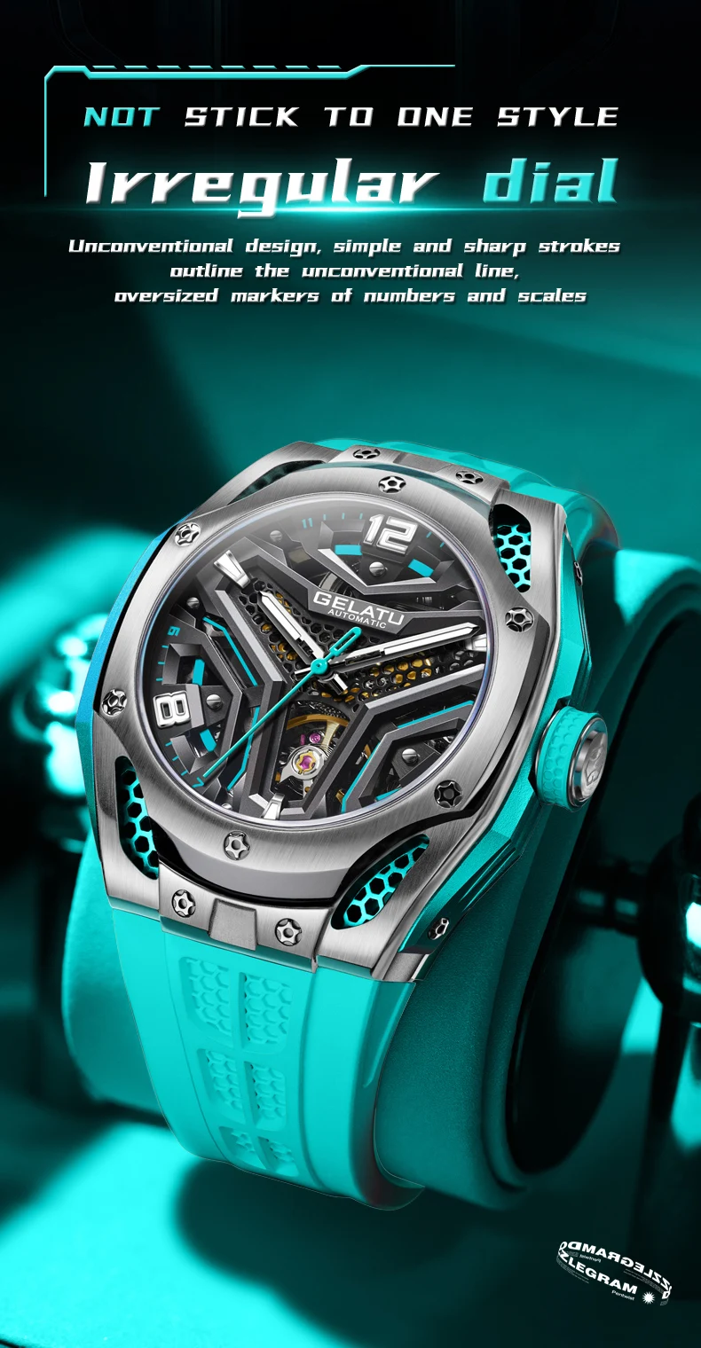 Le style et le design sont à votre portée avec la montre-bracelet automatique en silicone GELATU Seton pour homme !