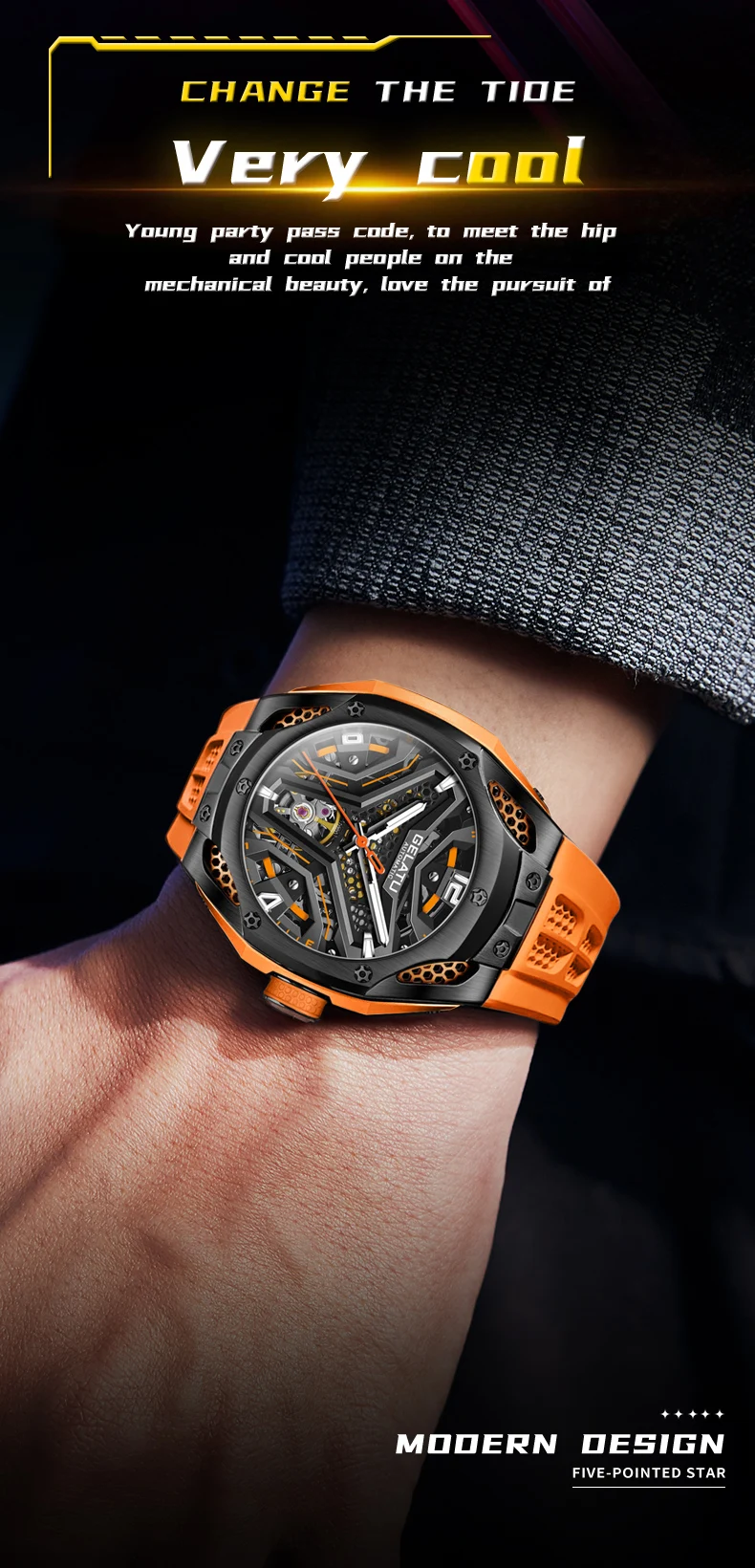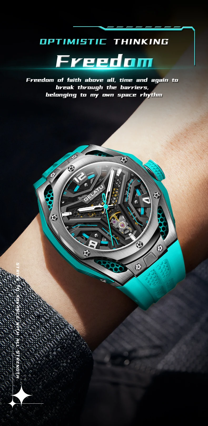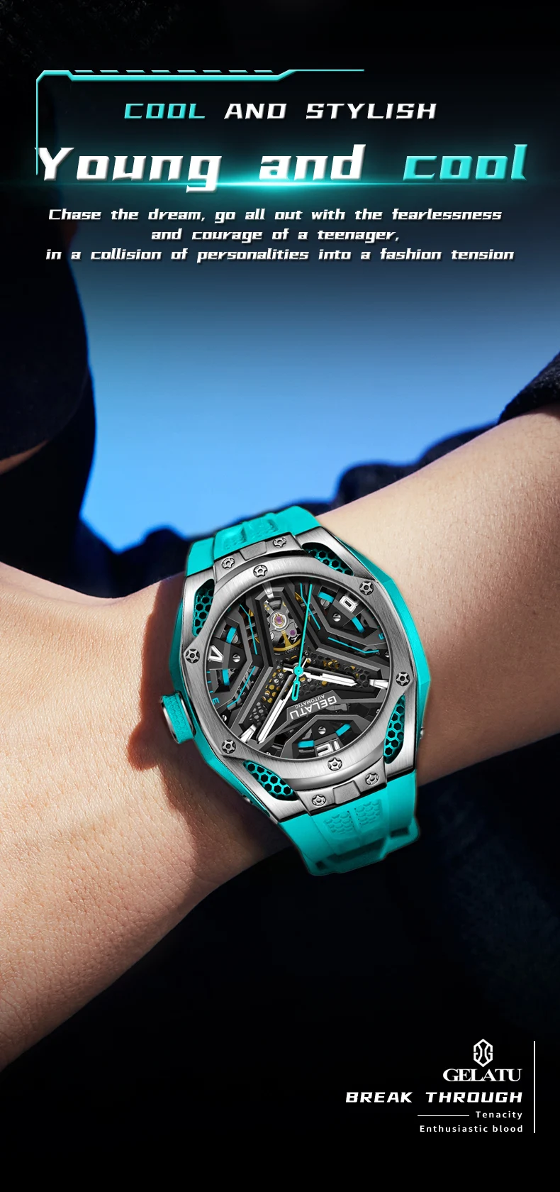 Le style et le design sont à votre portée avec la montre-bracelet automatique en silicone GELATU Seton pour homme !