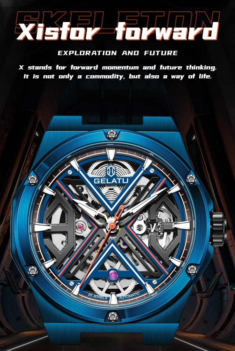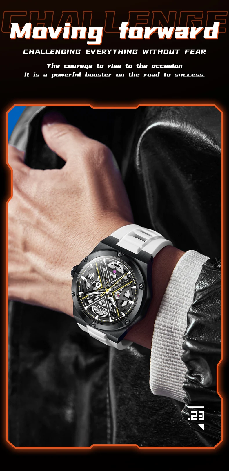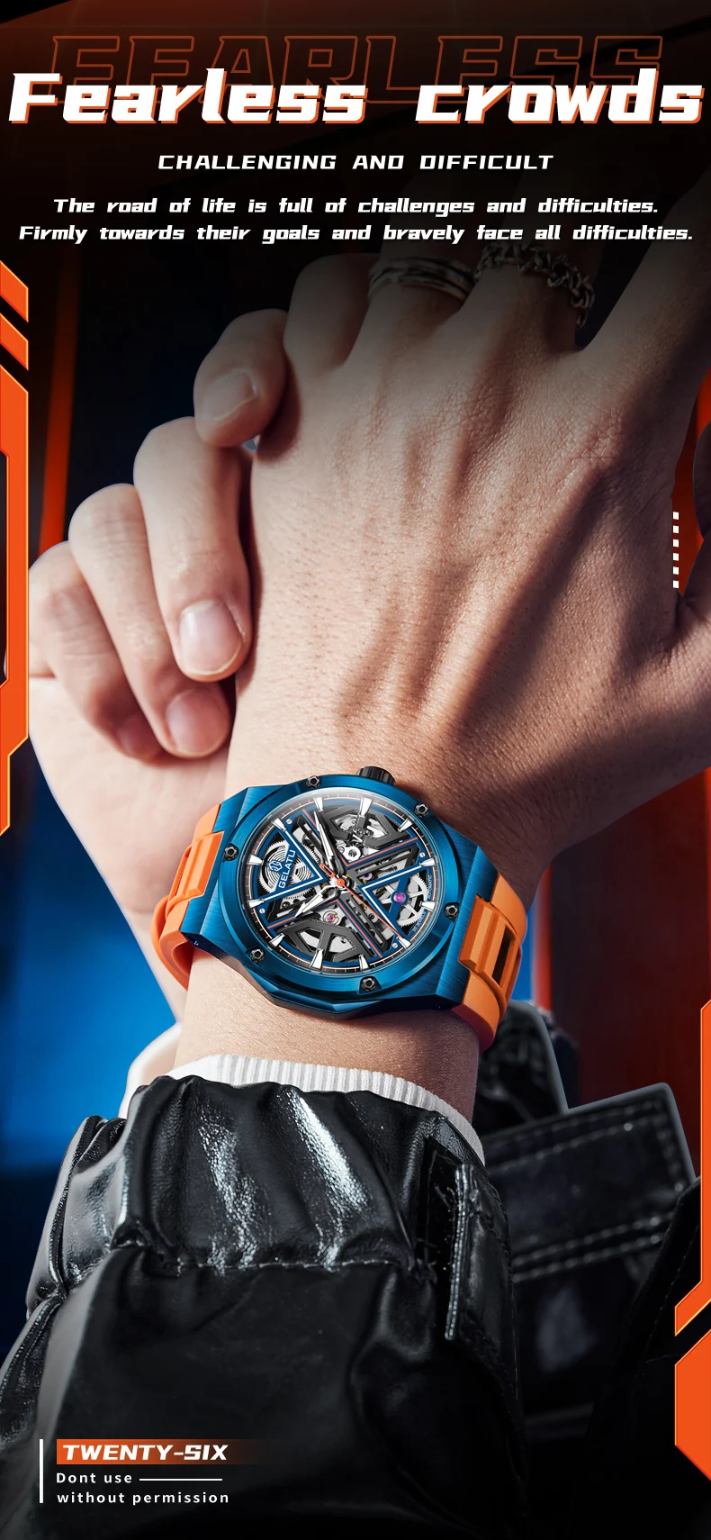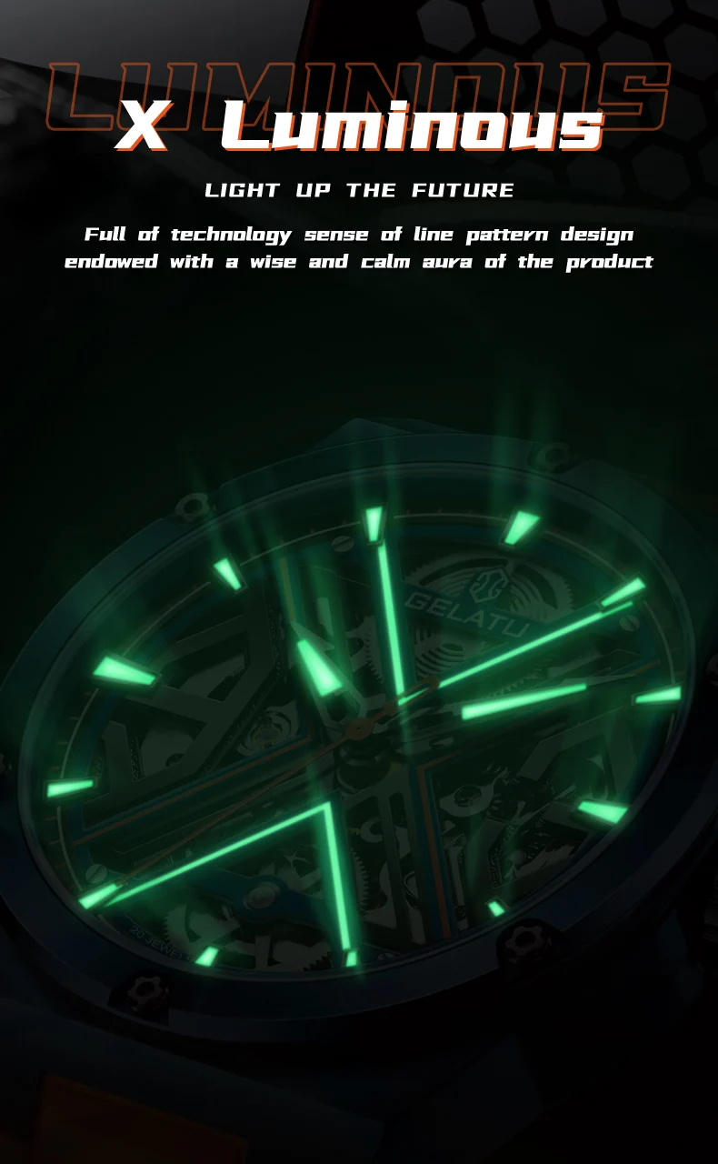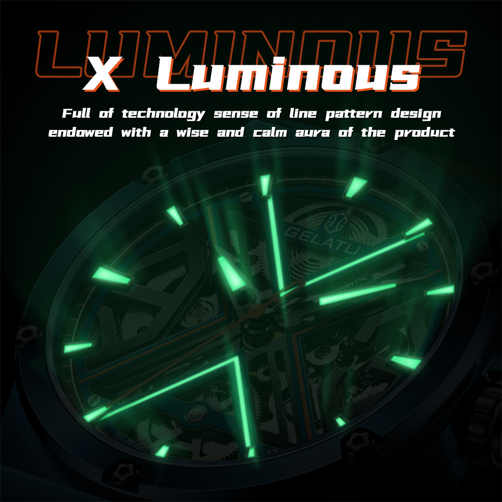 GELATU Nouvelle Montre Mécanique Automatique pour Hommes Bracelet en Silicone Saphir Miroir Squelette Creux Marque de Luxe Montre-Bracelet pour Hommes