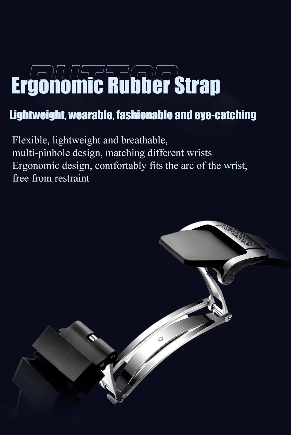Flexible et léger, pas de peur de la sueur, une nouvelle atmosphère moderne et tendance, un design ergonomique, s’adapte confortablement à la courbure du poignet et élimine le sentiment de retenue.