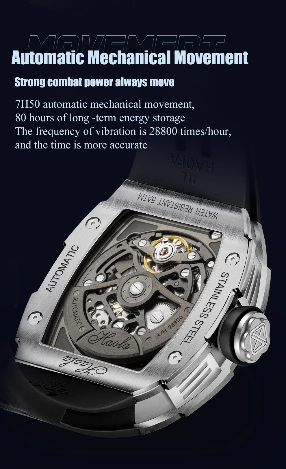 - Movement: Automatic Mechanical Watch Men,7H50
