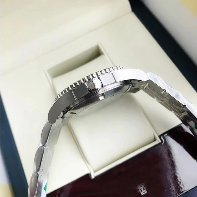 2. Montre de haute qualité: un matériau en acier inoxydable et une lunette en céramique sont utilisés, et la lunette ajoute une luminosité totale, ce qui est très facile à lire la nuit, et utilise une boucle déployante avec fin de fonction de réglage