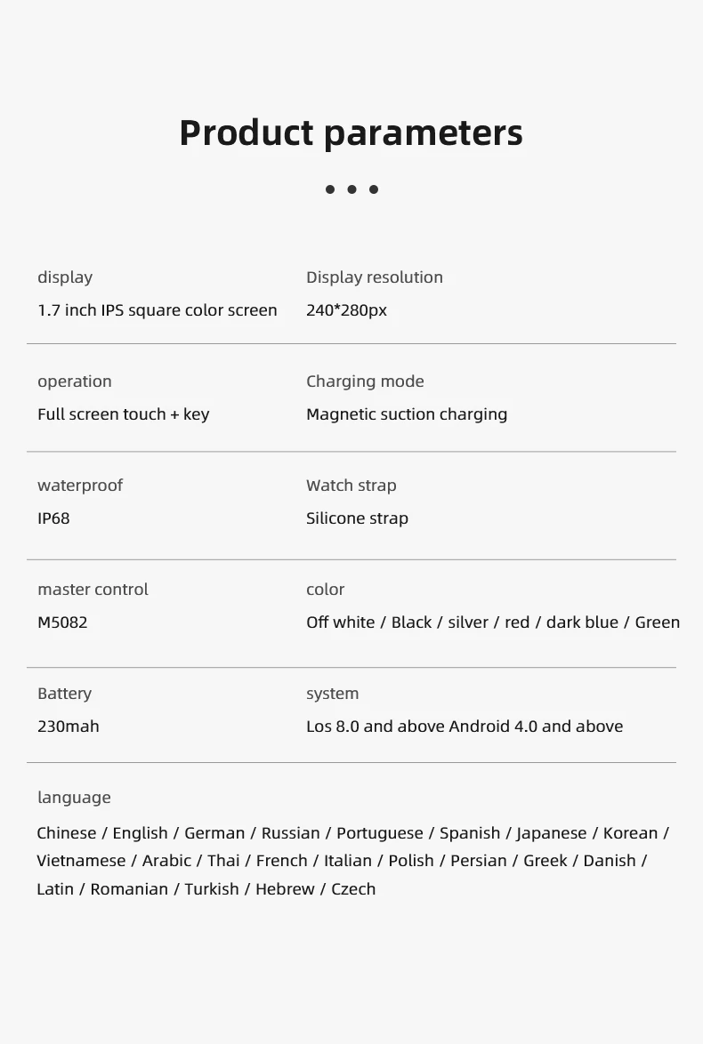 Paquet Comprenant:1 * montre Smart watch; 1 * câble De Charge; 1 * Manuel; 1 * Boîte.
