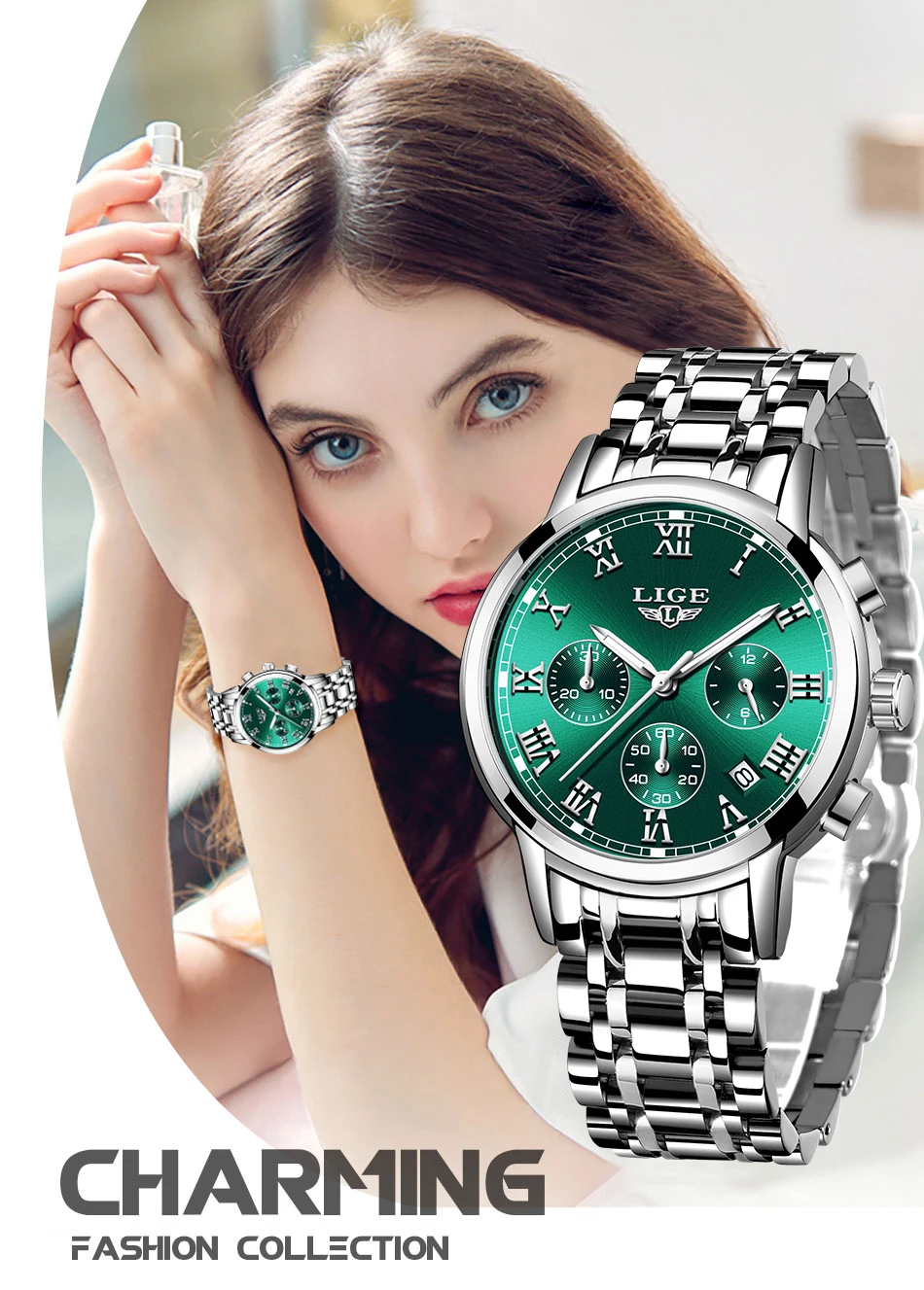 La montre LIGE est une montre de luxe en acier inoxydable qui vous offre un look élégant et raffiné. Elle est étanche et dotée d’une date automatique et d’horloges intégrées. Avec sa nouvelle mode et sa qualité supérieure, elle est le cadeau parfait pour une femme qui sait ce qu’elle veut et qui aime être à la pointe de la tendance. 💃