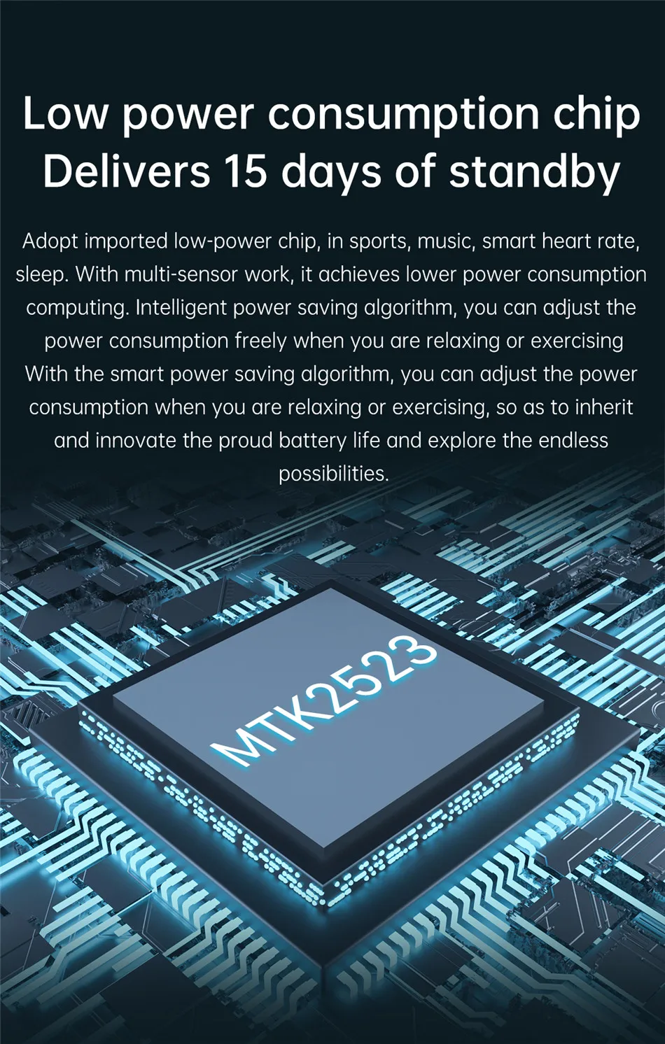 La montre offre également un affichage en temps réel de l’heure, la possibilité de connecter des écouteurs TWS, ainsi que des caractéristiques hors concours, telles que la surveillance de la fréquence cardiaque et de la pression artérielle, la qualité du sommeil, le suivi des pas et des calories brûlées, les objectifs de pas quotidiens, les rappels de mouvement, les notifications sur smartphone et les prévisions météorologiques.