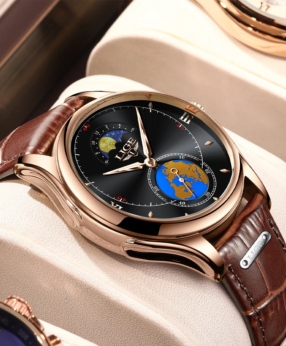 La montre LIGE est une montre de luxe pour homme, conçue avec des matériaux de qualité supérieure et un design unique. Elle est étanche, lumineuse et fonctionne à quartz. La montre LIGE est livrée avec une boîte pour un rangement pratique et sécurisé. Vous serez fier de porter cette montre et de montrer votre style unique à tous ceux qui vous entourent.