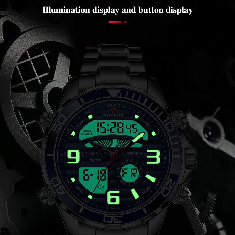 - Caractéristique: chronomètre,Résistant aux chocs,Affichage LED,Luminous,Date d’auto,Calendrier complet,Résistant à l'eau,Nager,Affichage de la semaine,luminous hands