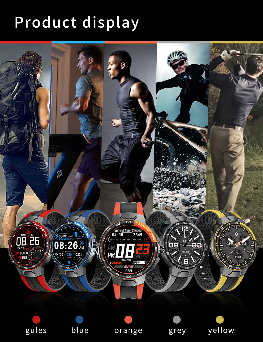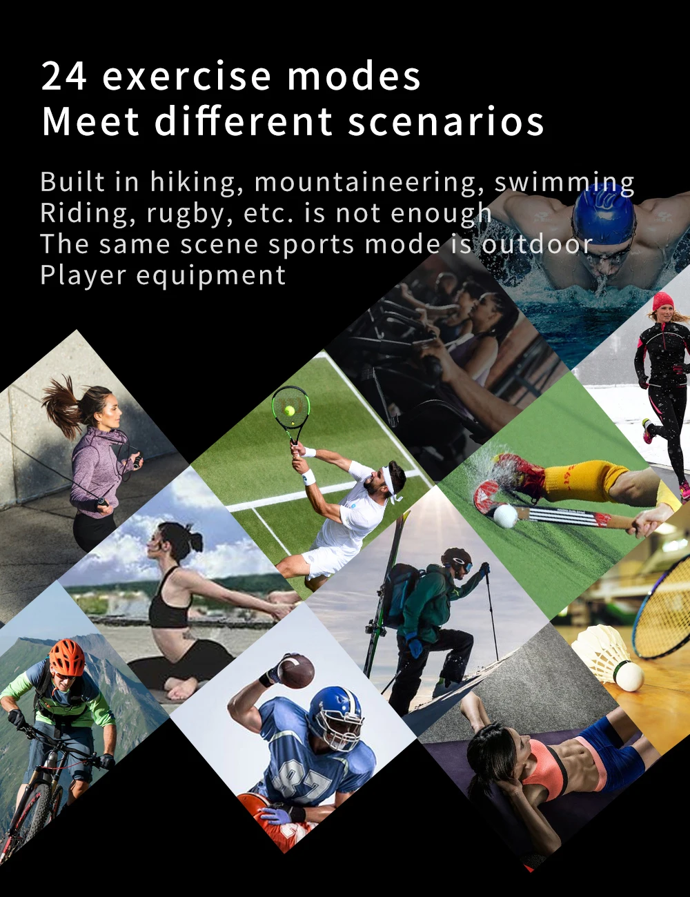 * Multi-Sport Mode:Course/marche/vélo/escalade/yoga/badminton/corde à sauter, etc.,24 modes