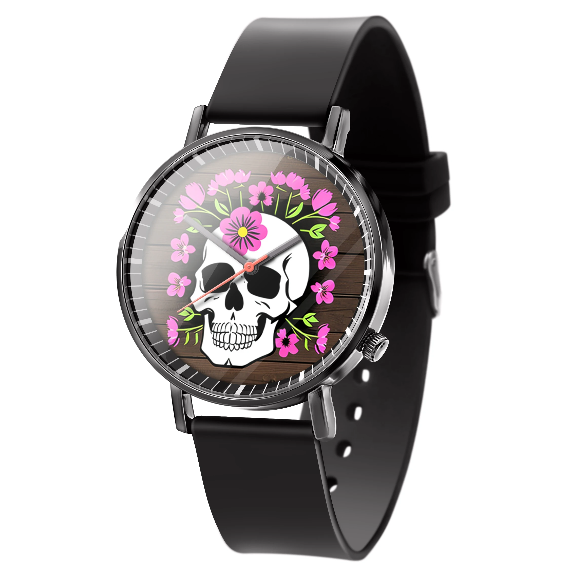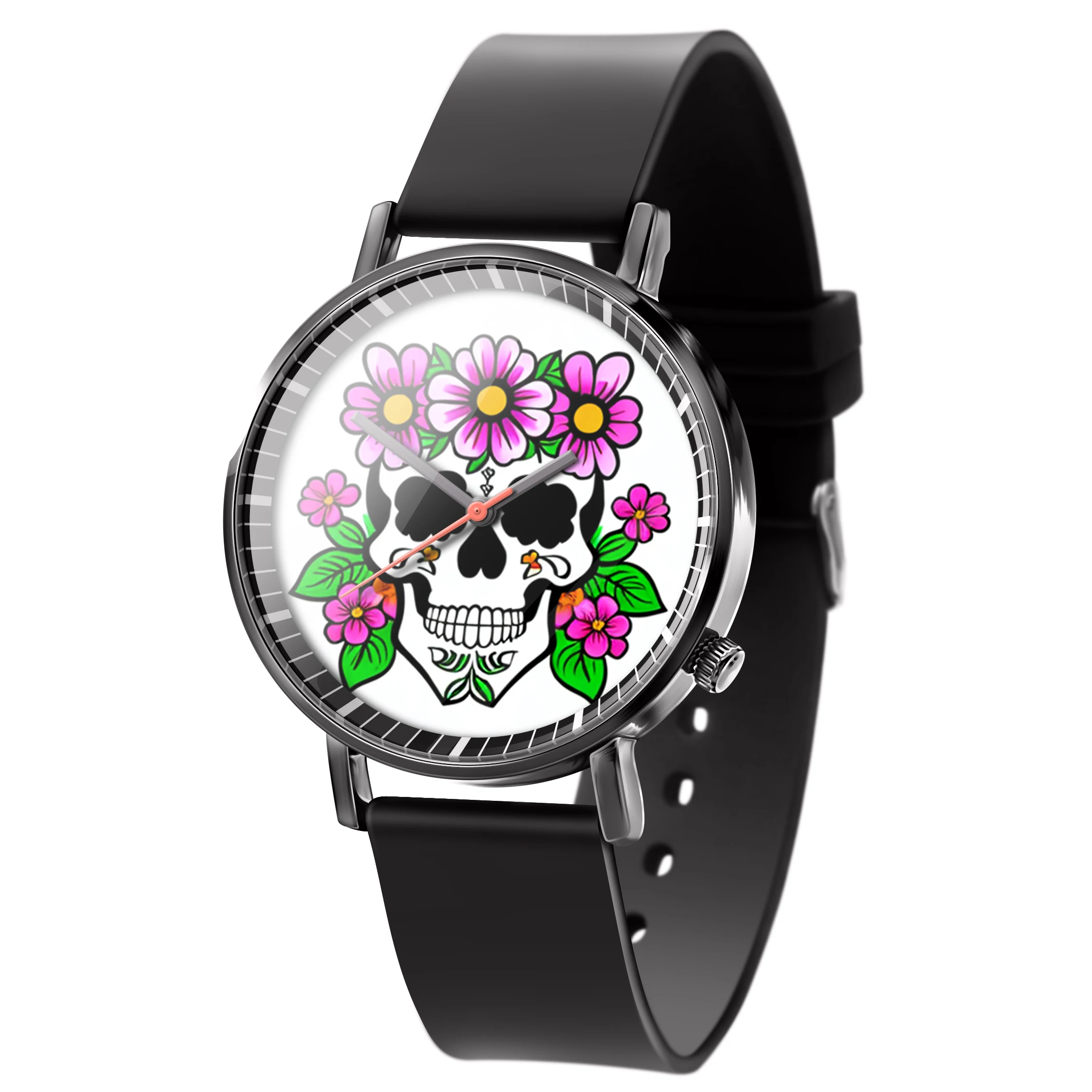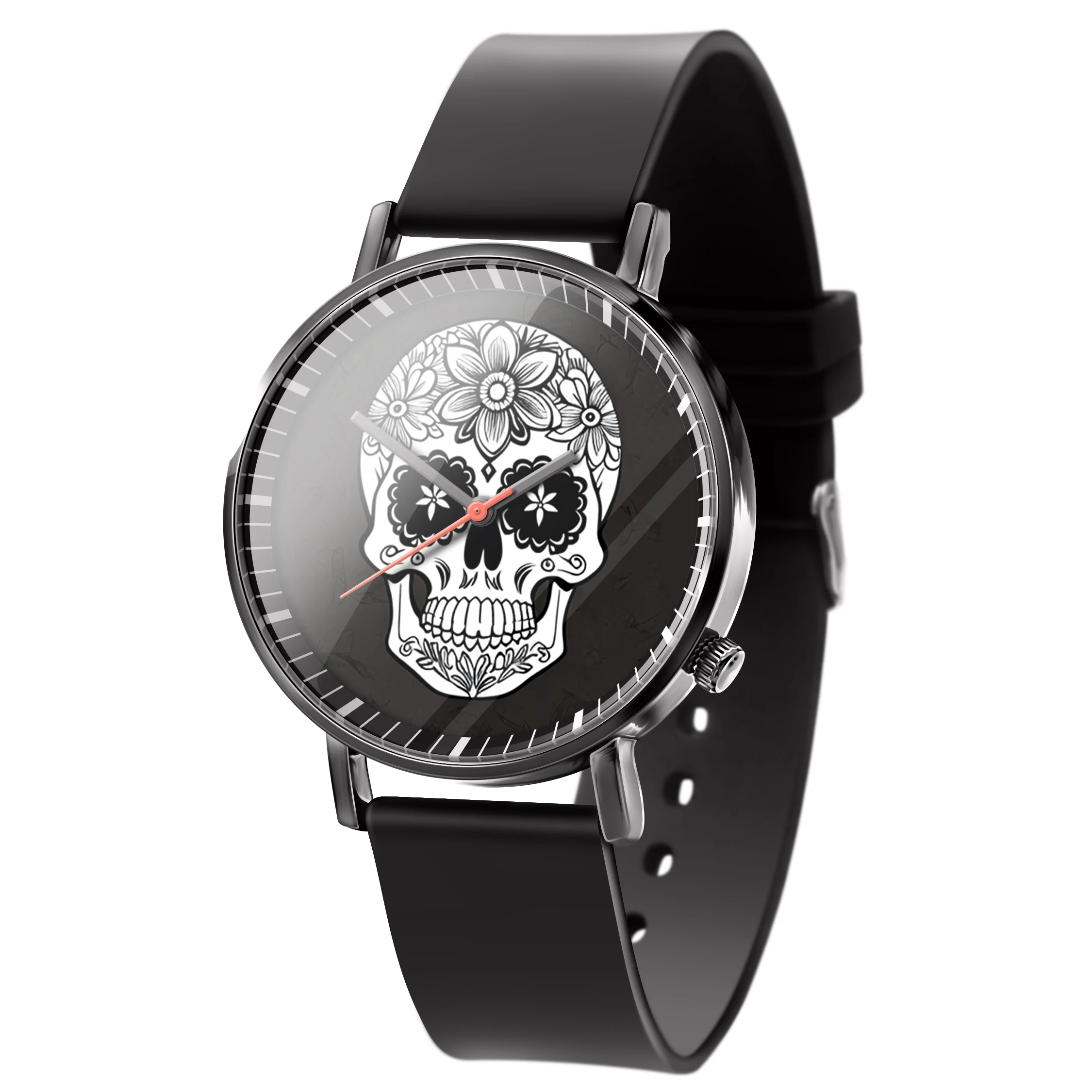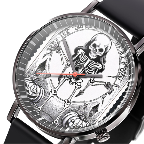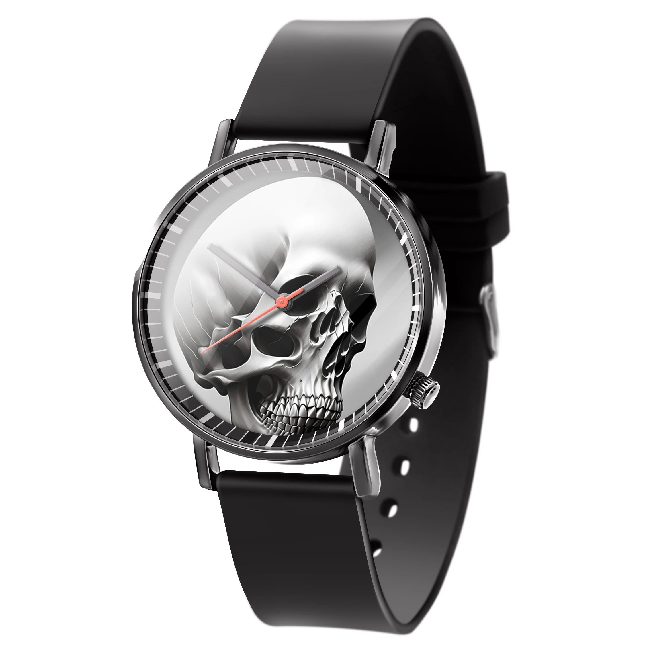 « SkullTime » – Montre décontractée pour homme, noir et blanc, imprimé tête de mort, tendance et nouveau.