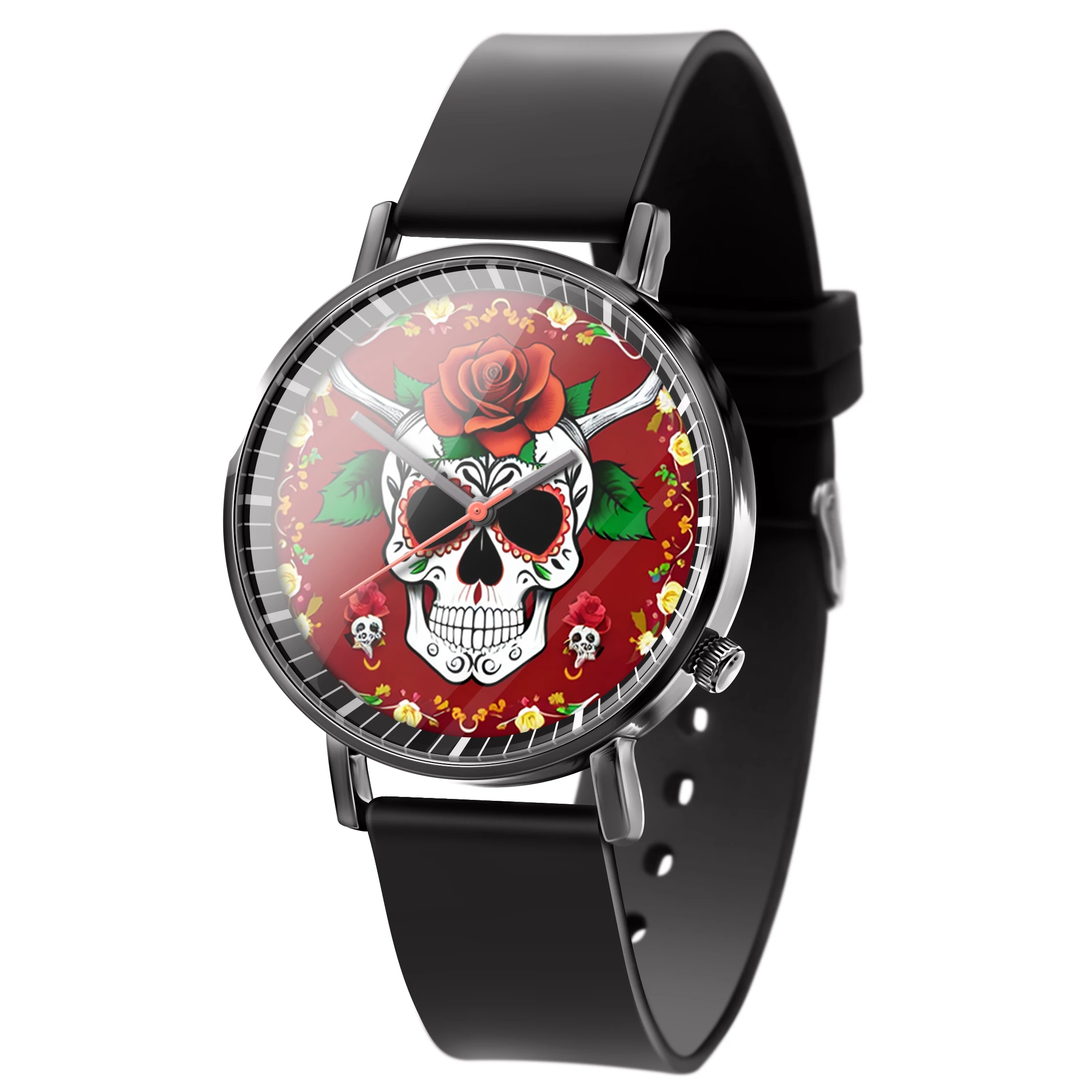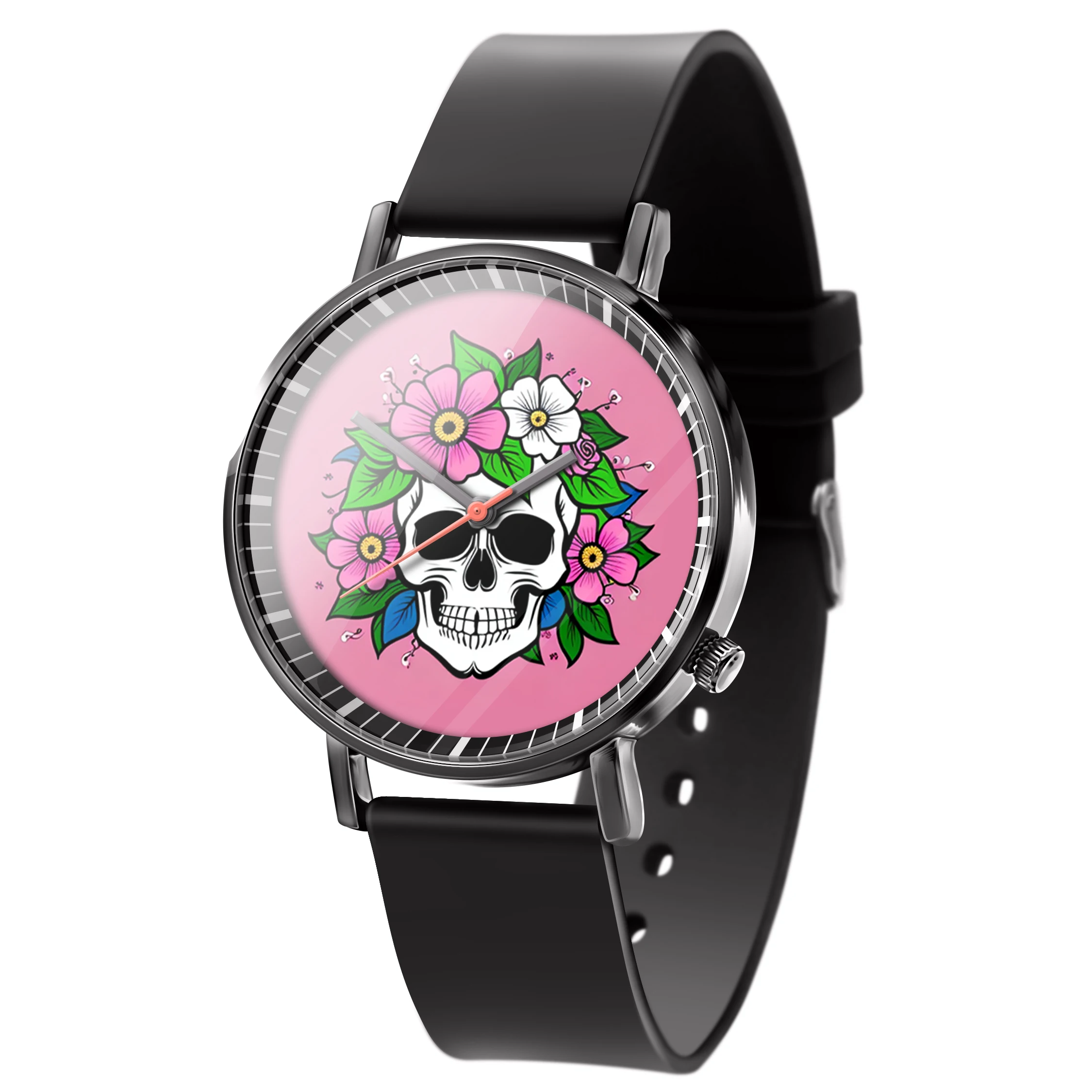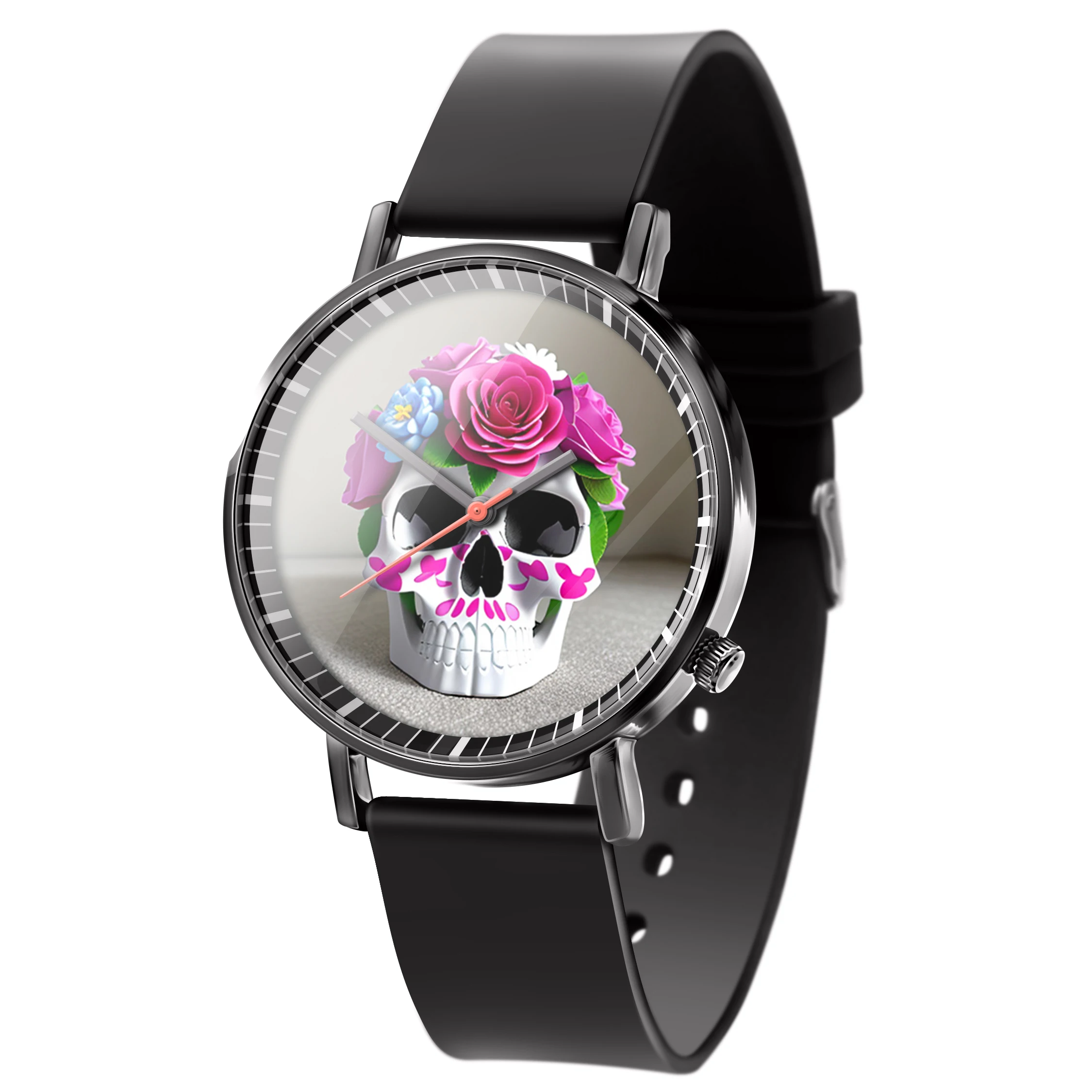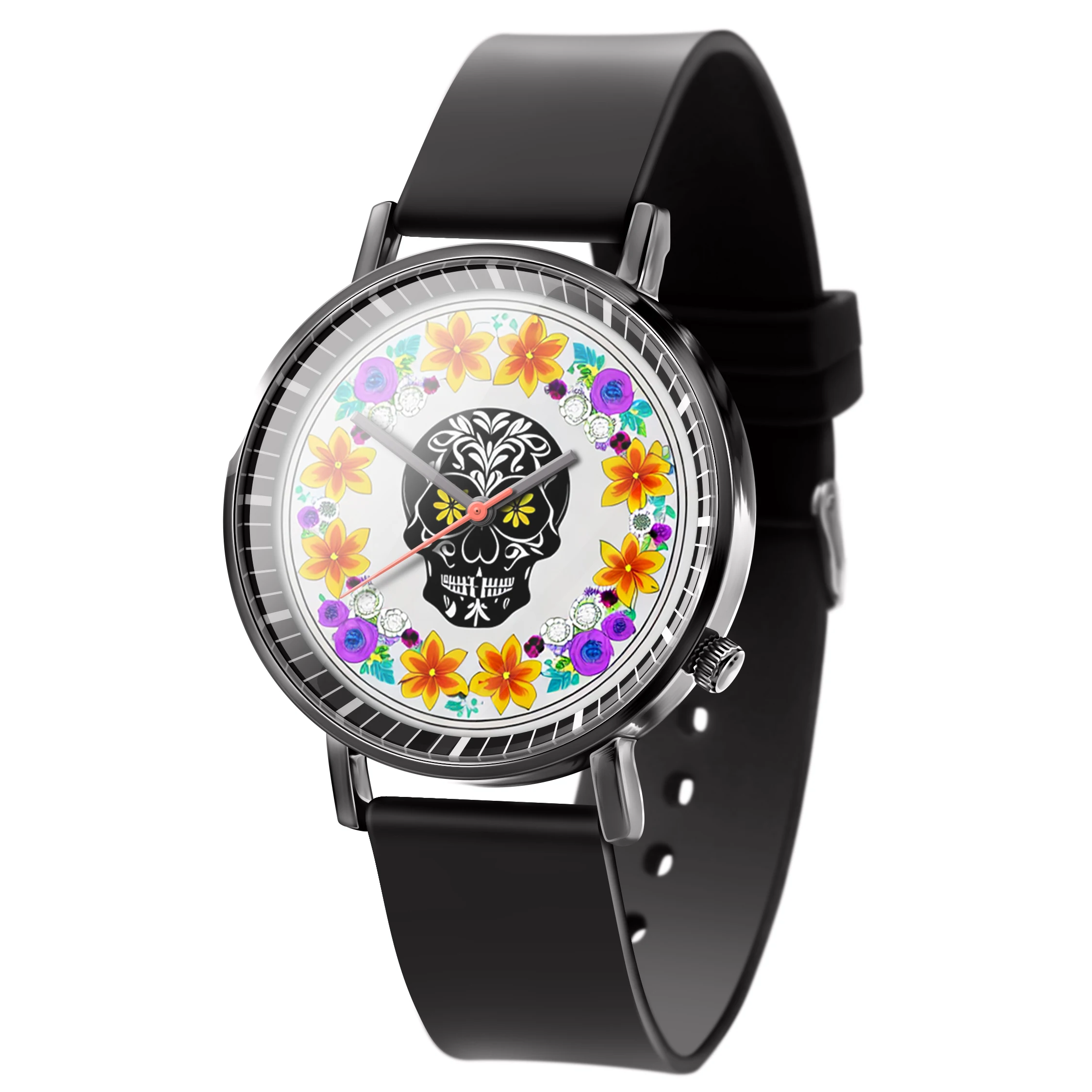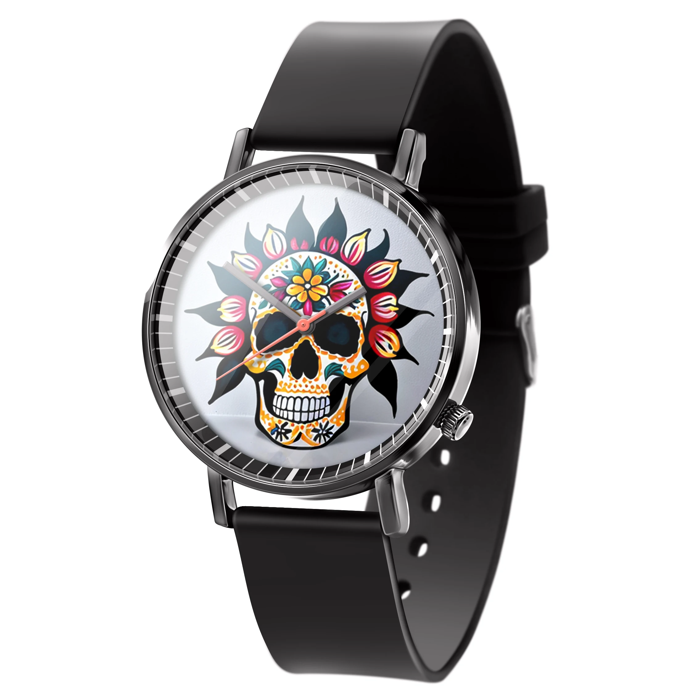 « SkullTime » – Montre décontractée pour homme, noir et blanc, imprimé tête de mort, tendance et nouveau.