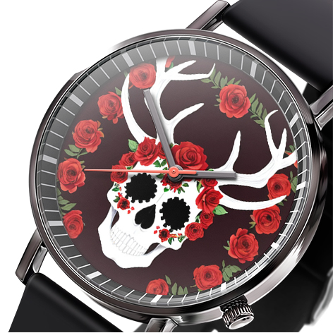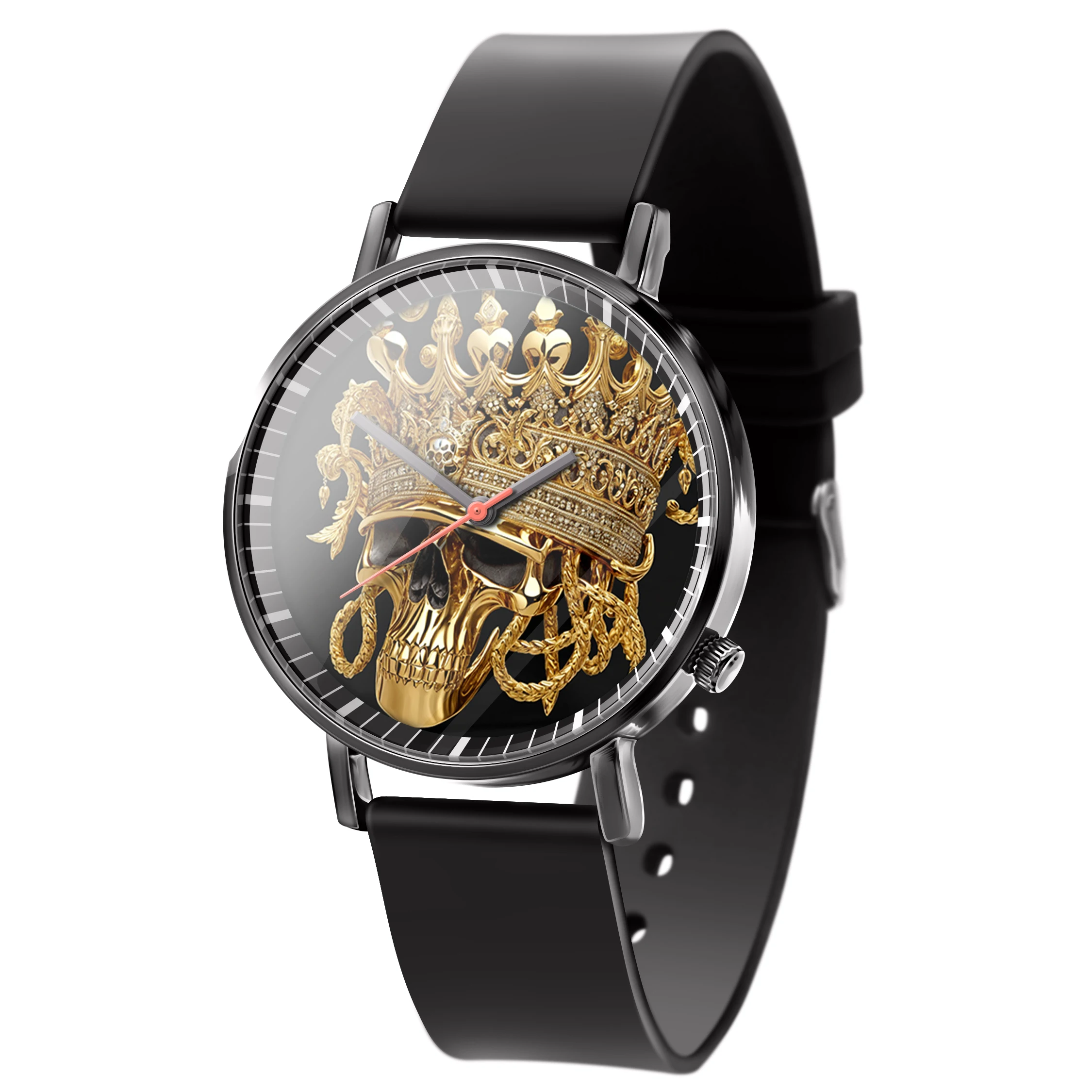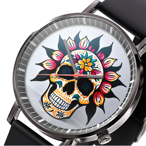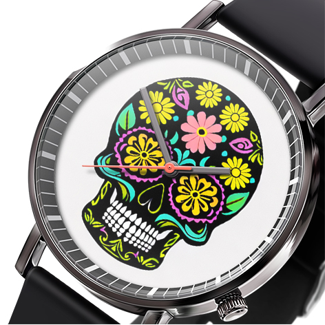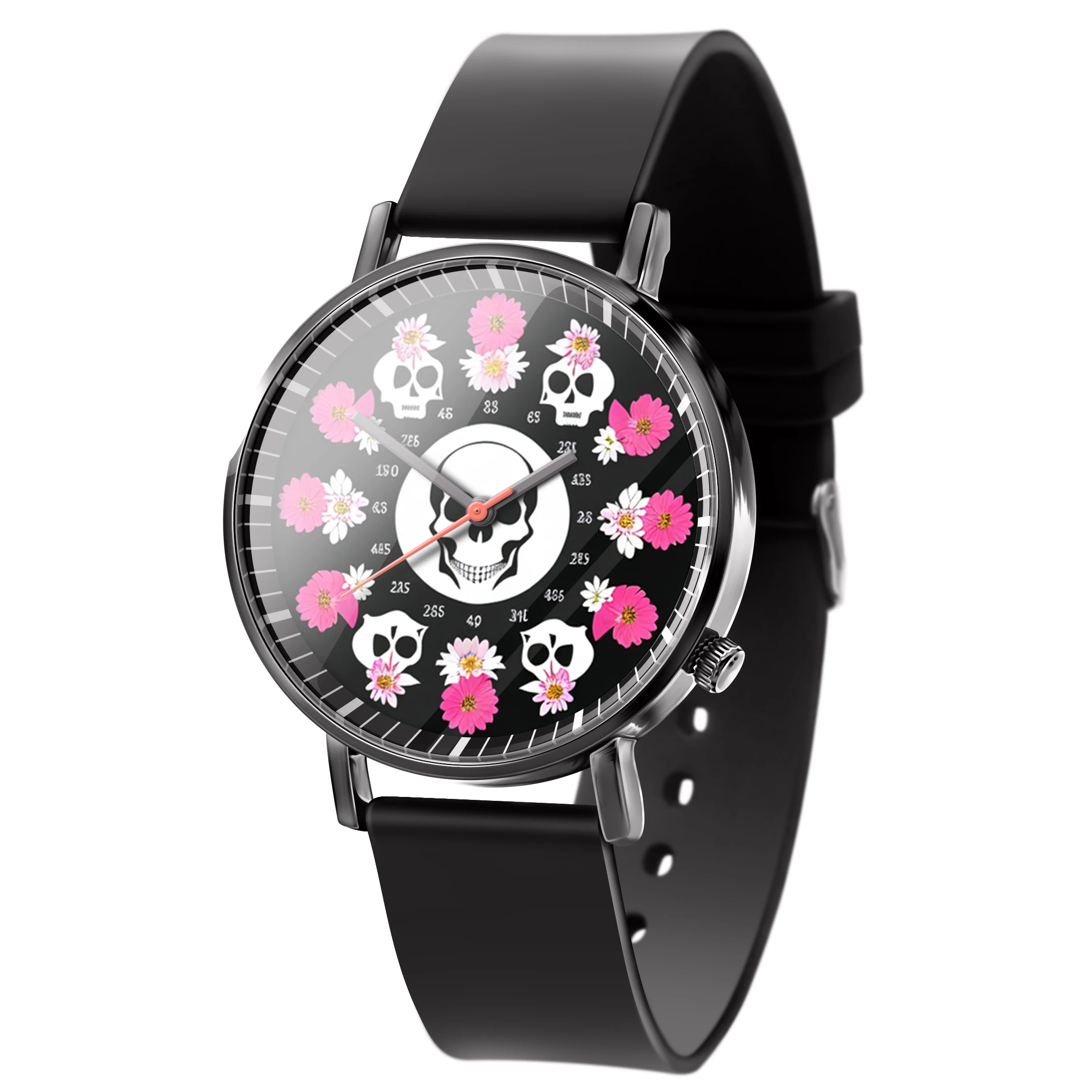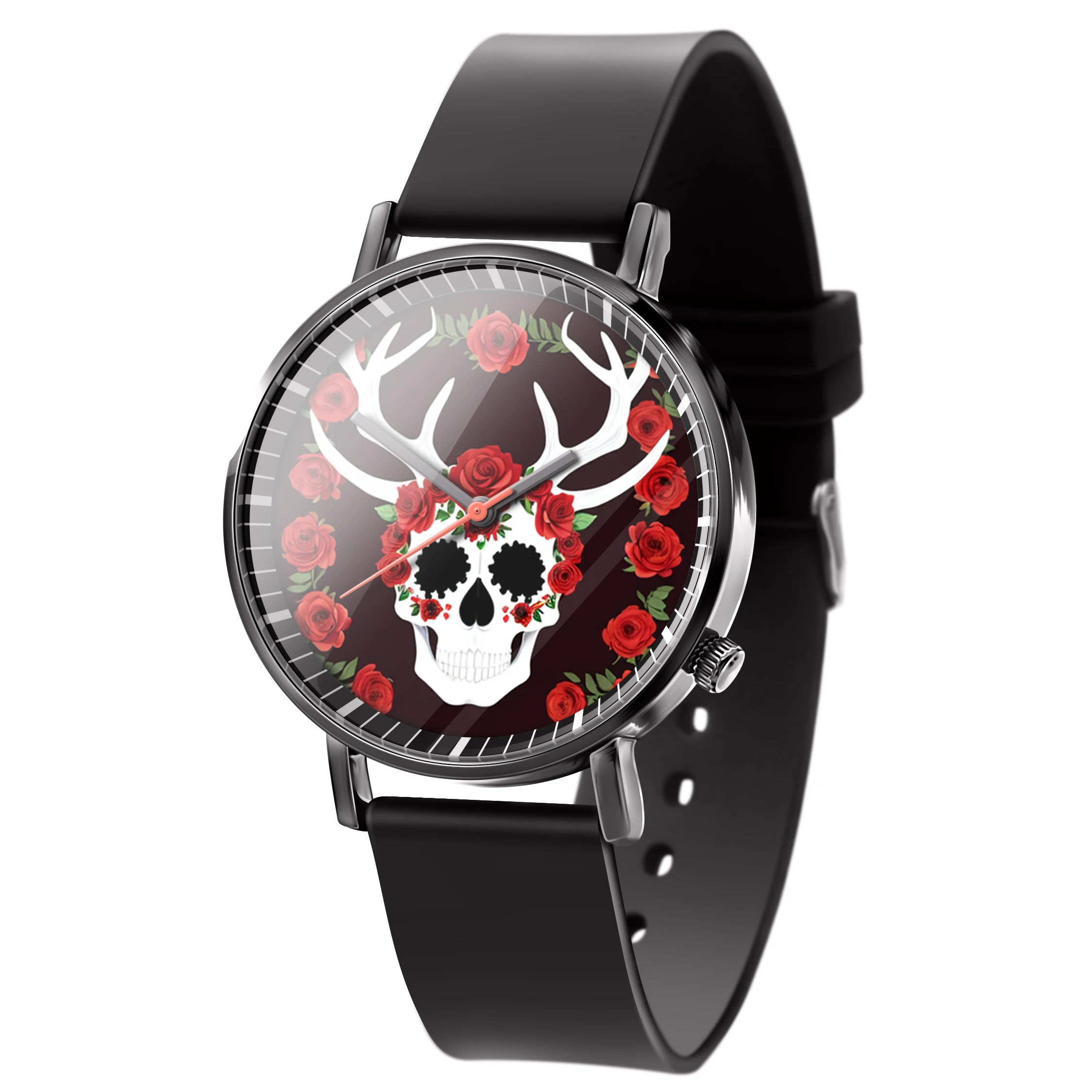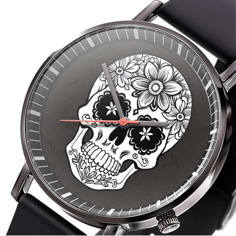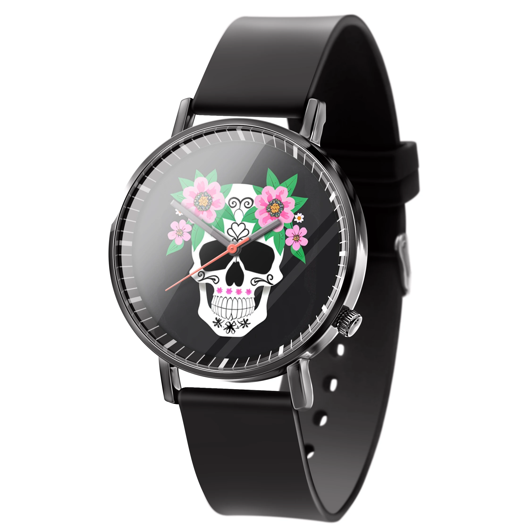 « SkullTime » – Montre décontractée pour homme, noir et blanc, imprimé tête de mort, tendance et nouveau.