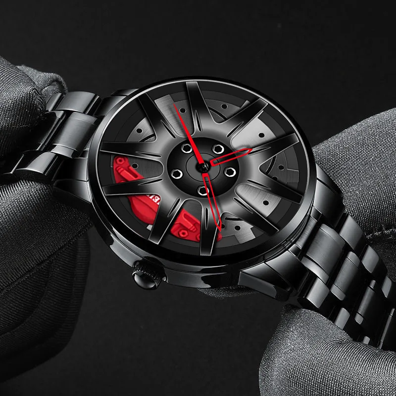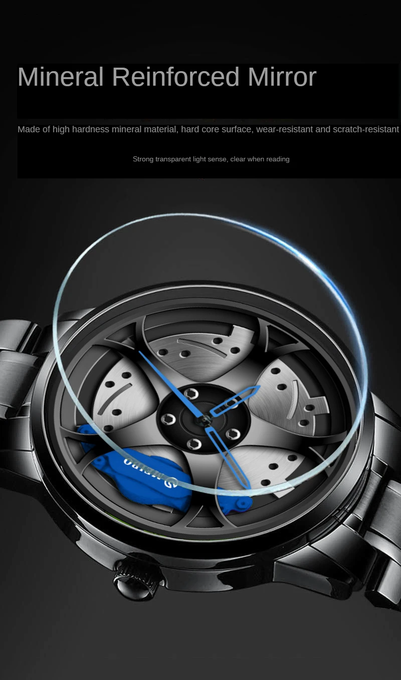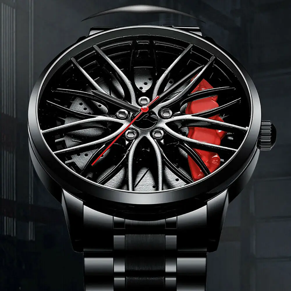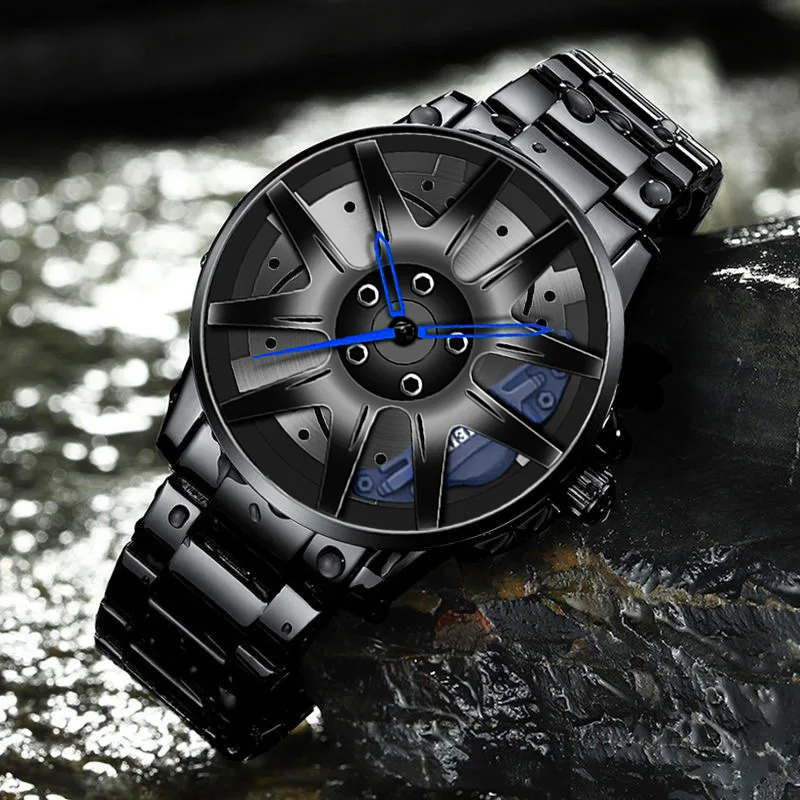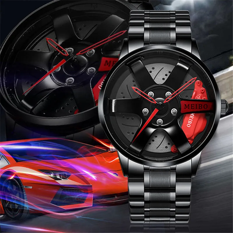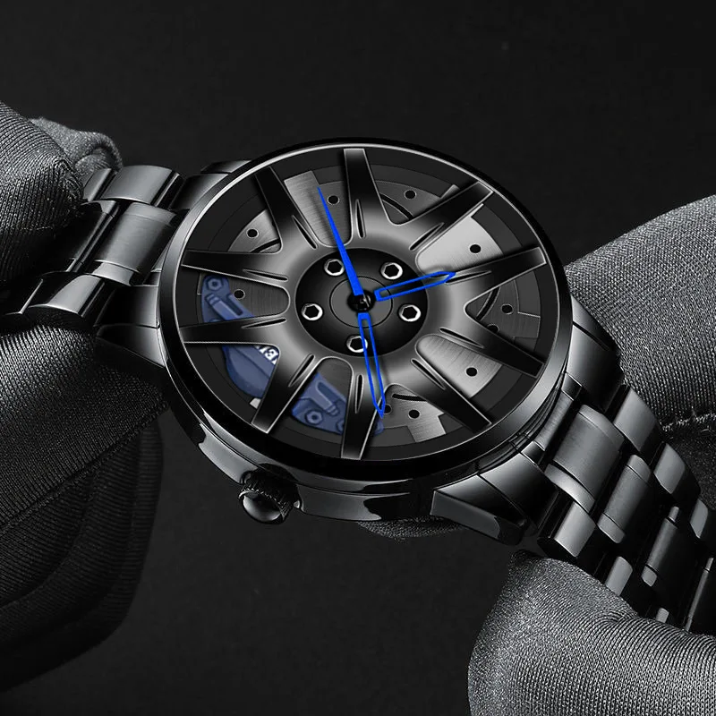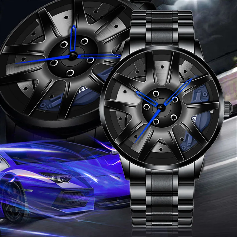 Montre à Quartz étanche pour hommes, bracelet de placage sous vide avec jante de voiture, conception de moyeu, montre-bracelet automatique de Sport
