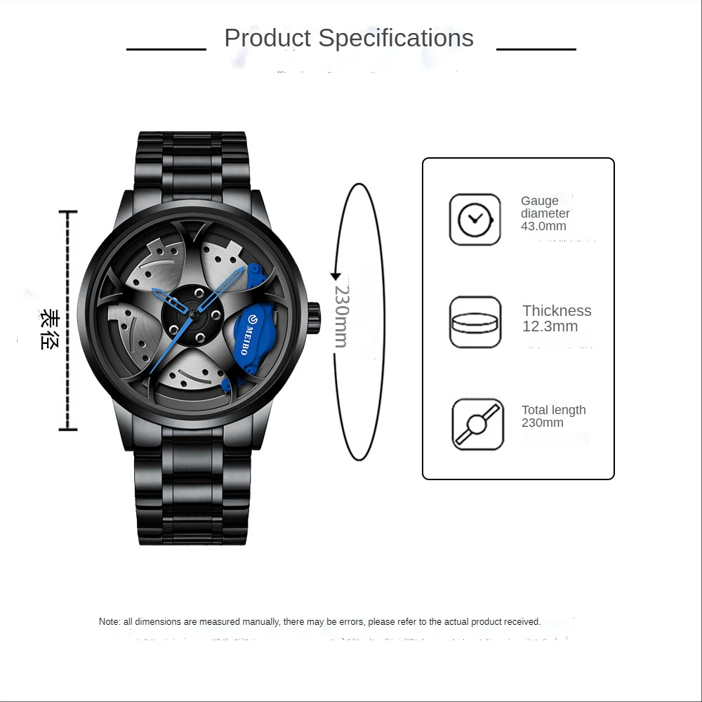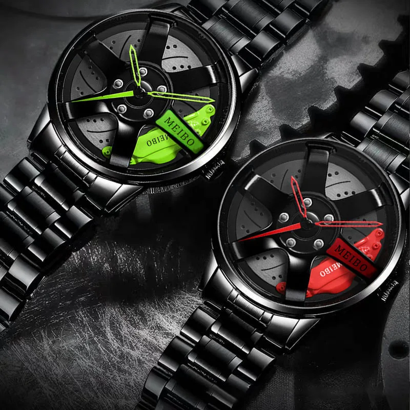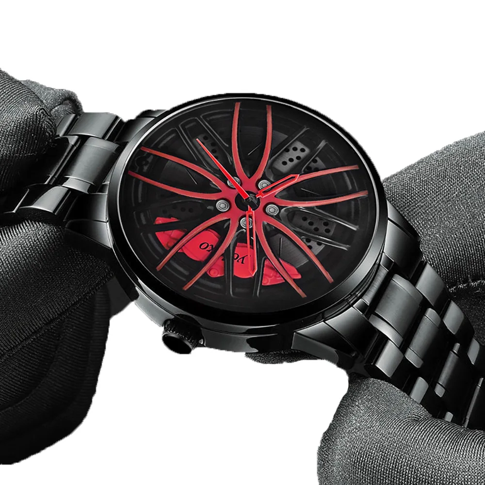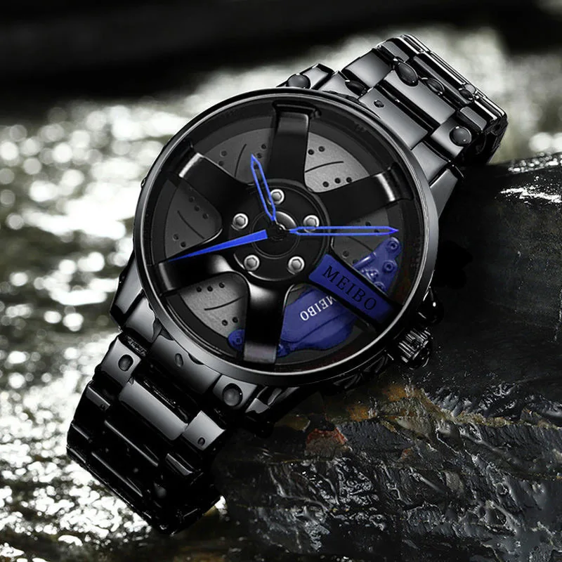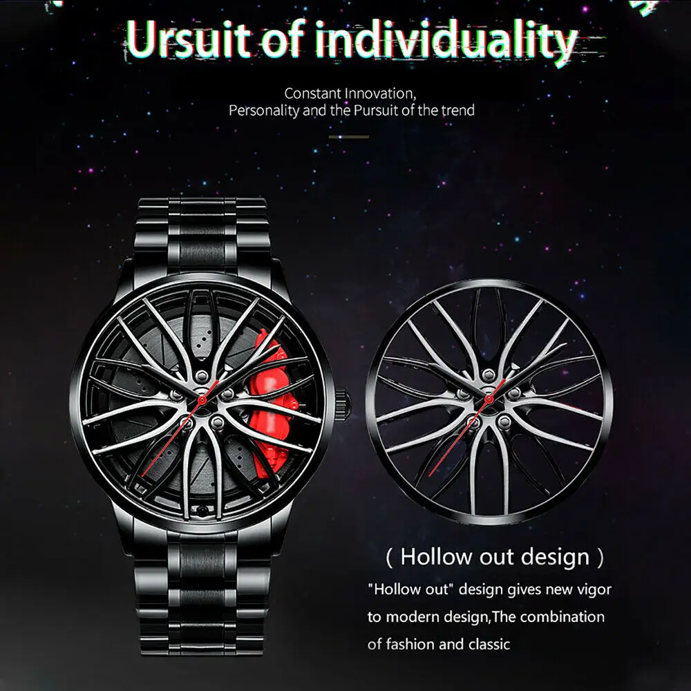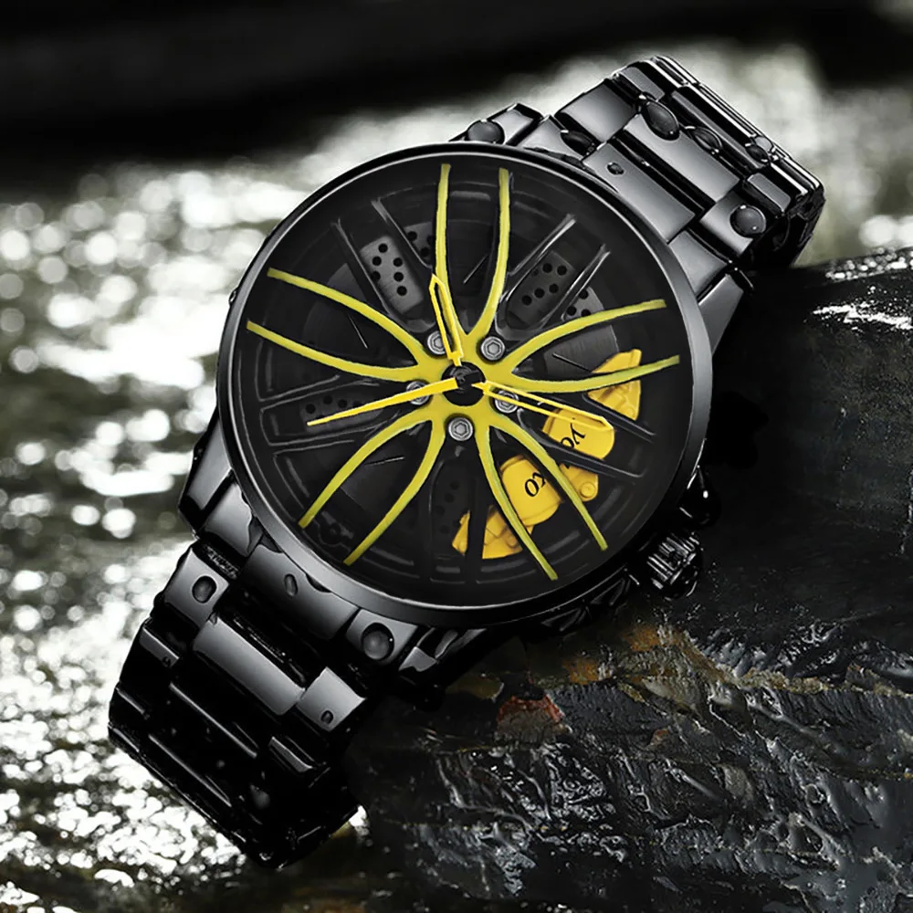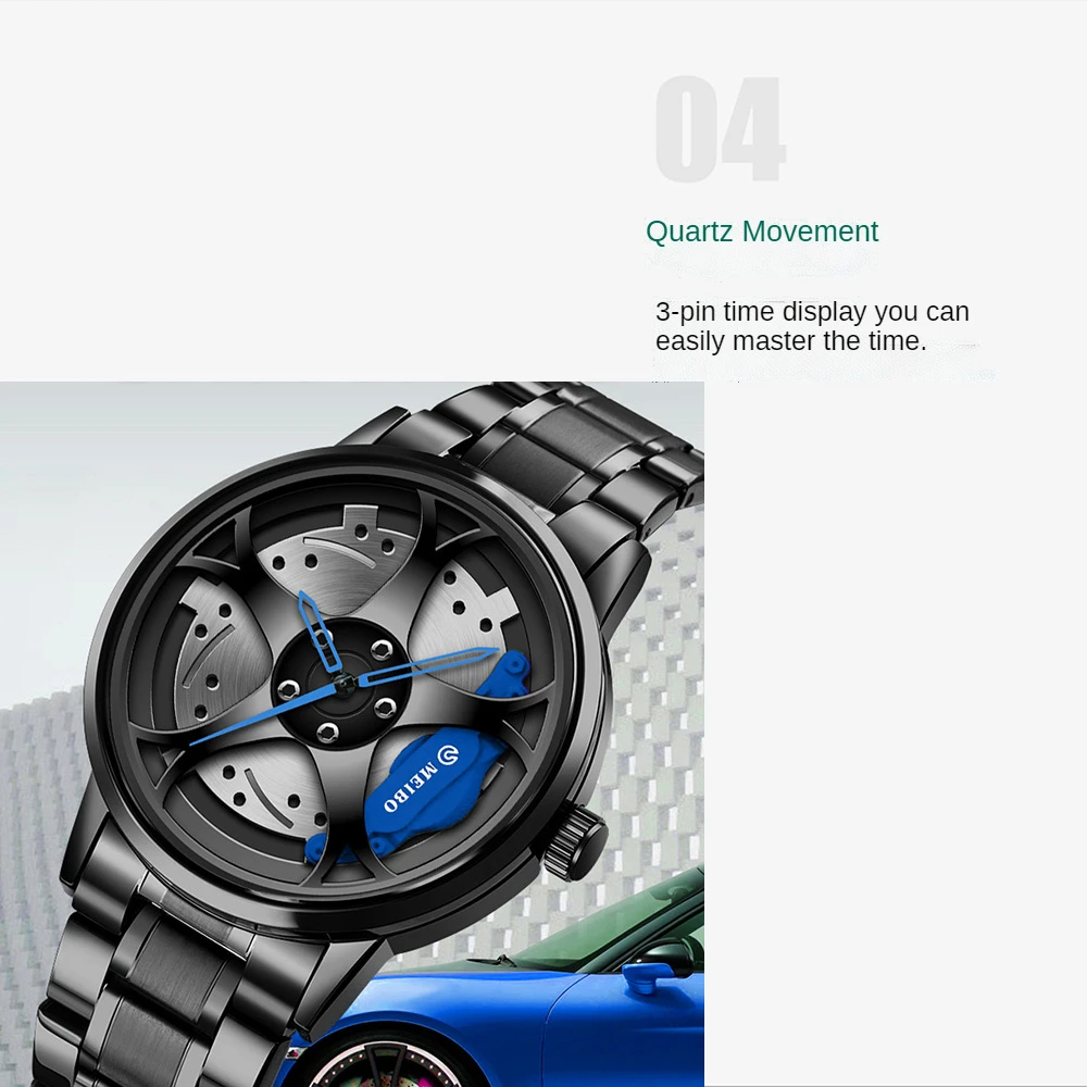 Montre à Quartz étanche pour hommes, bracelet de placage sous vide avec jante de voiture, conception de moyeu, montre-bracelet automatique de Sport