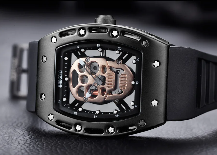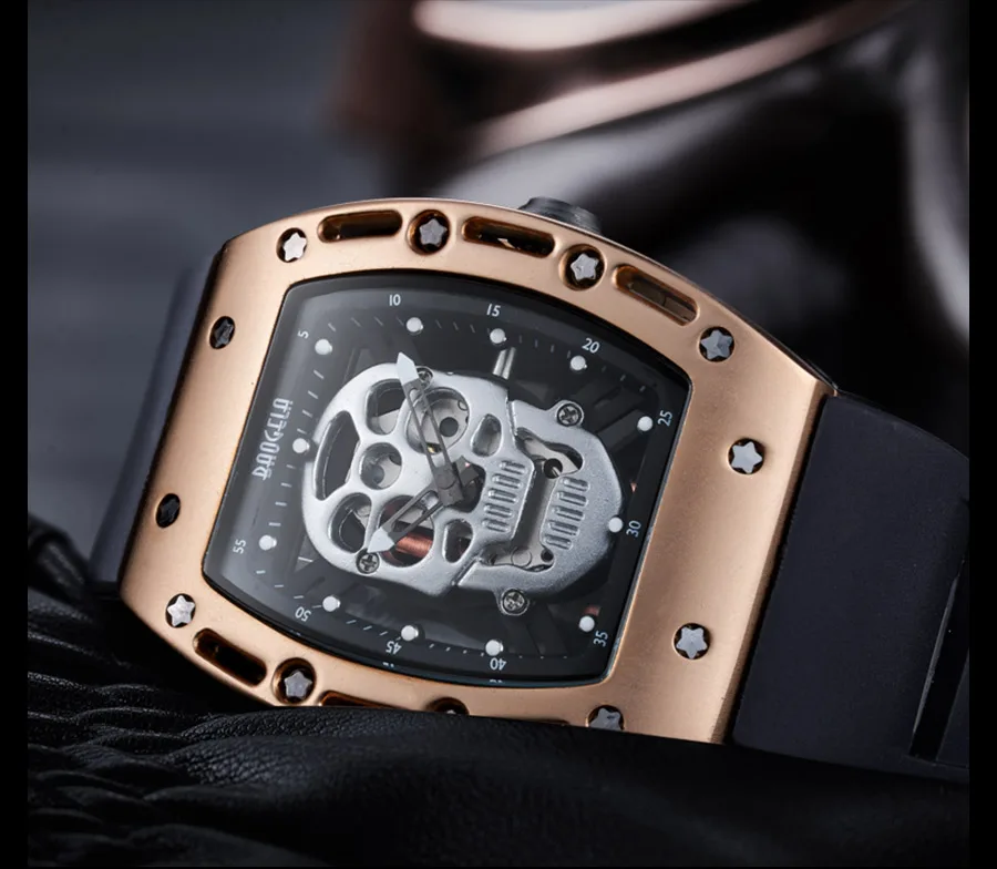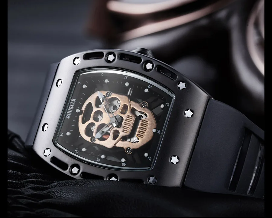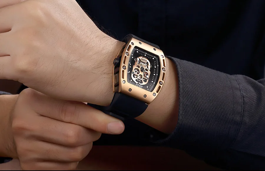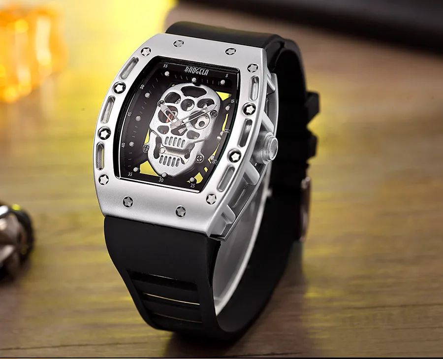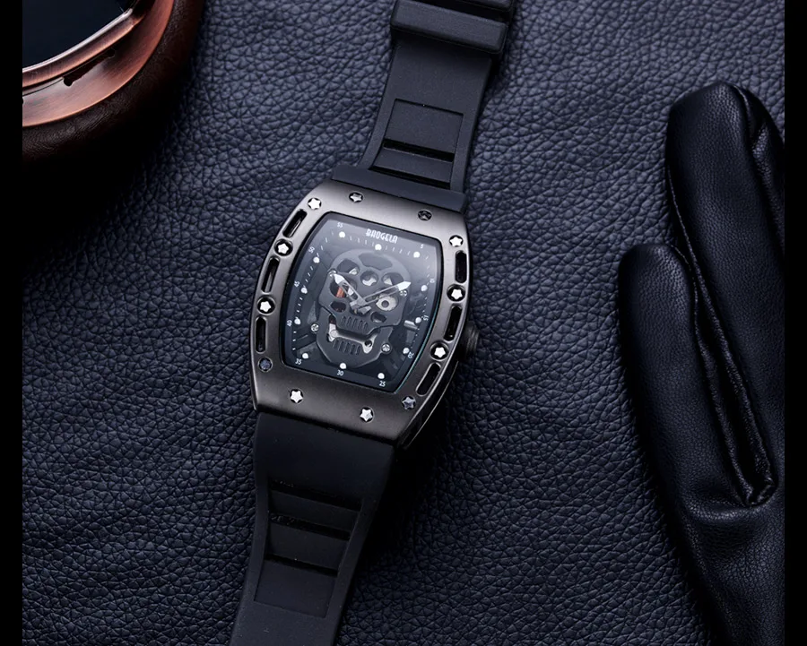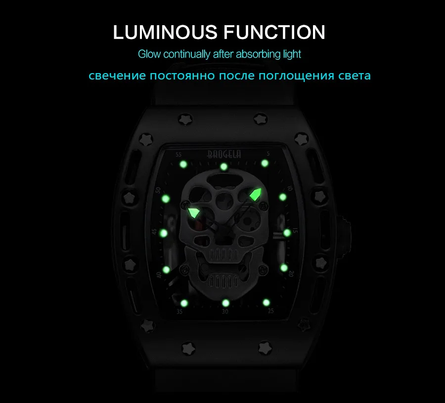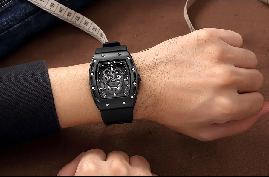 Montre à Quartz pour hommes, bracelet en Silicone noir lumineux, militaire, crâne, cadran Rectangle avec étoiles