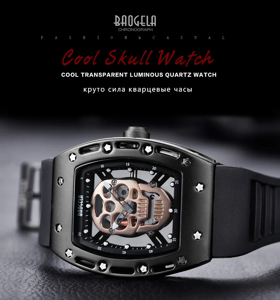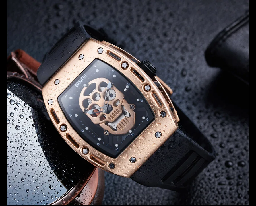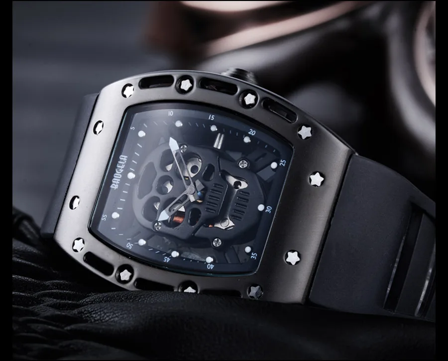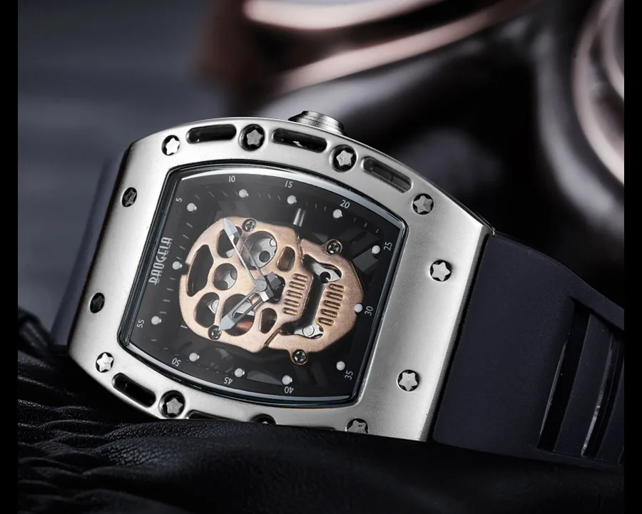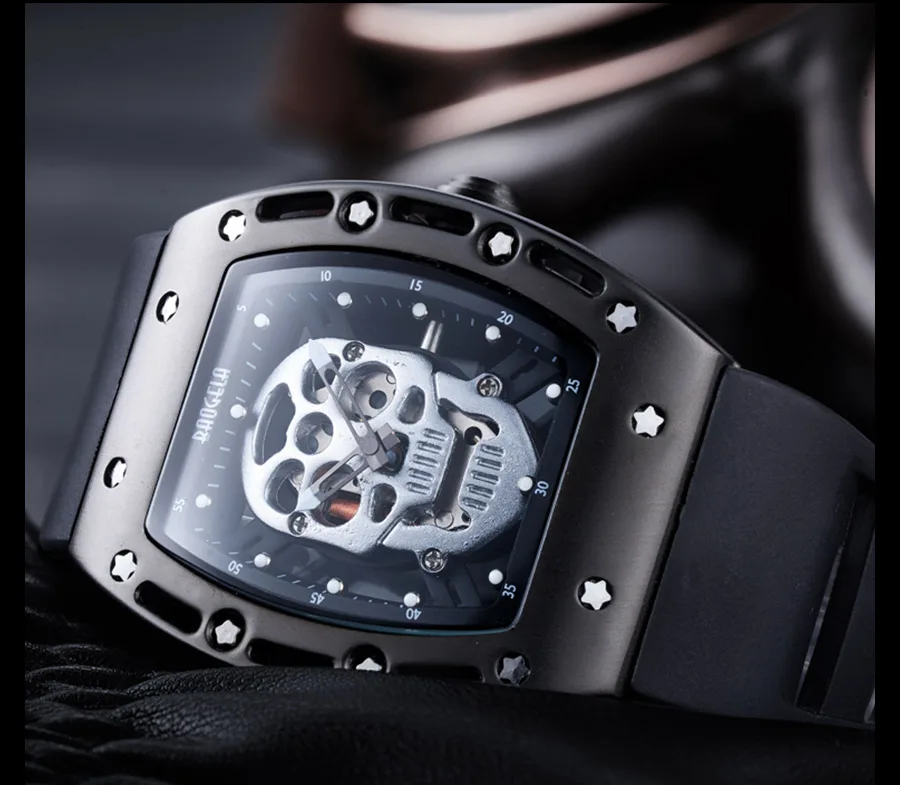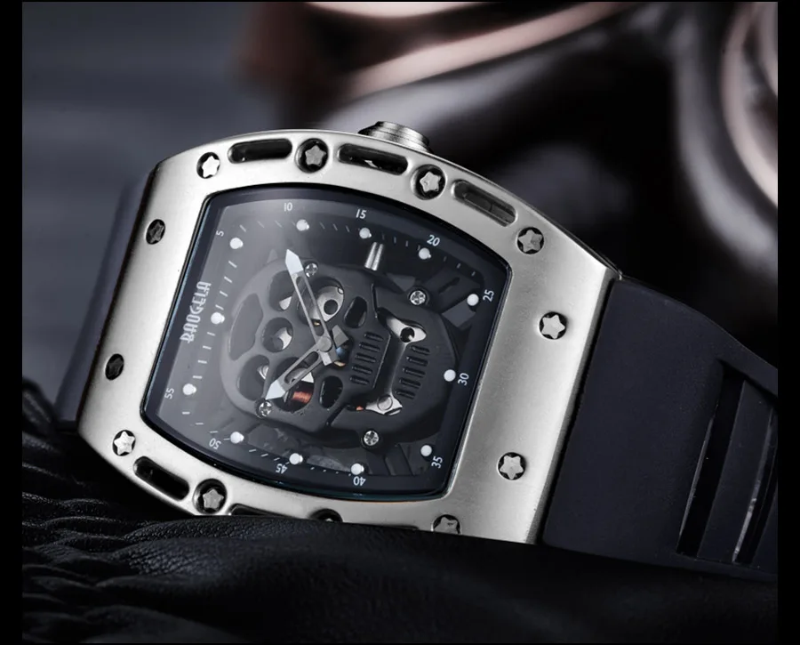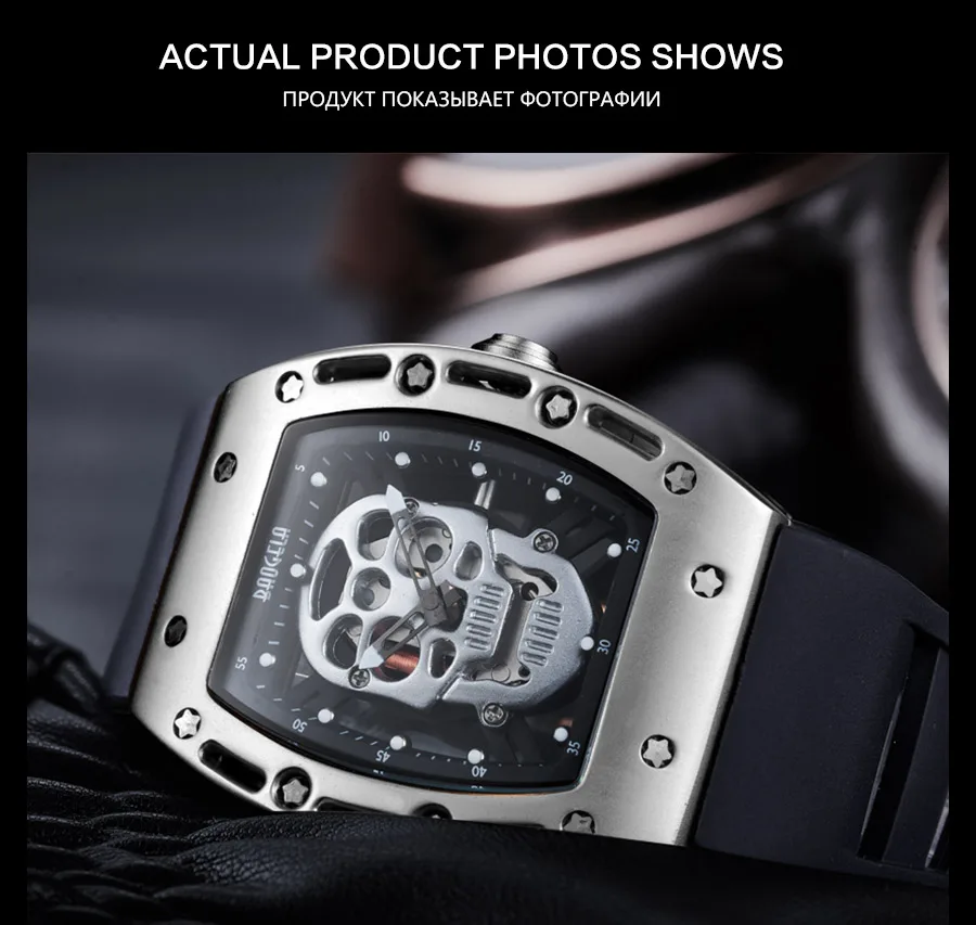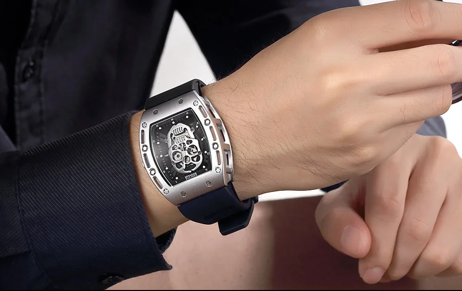 Montre à Quartz pour hommes, bracelet en Silicone noir lumineux, militaire, crâne, cadran Rectangle avec étoiles