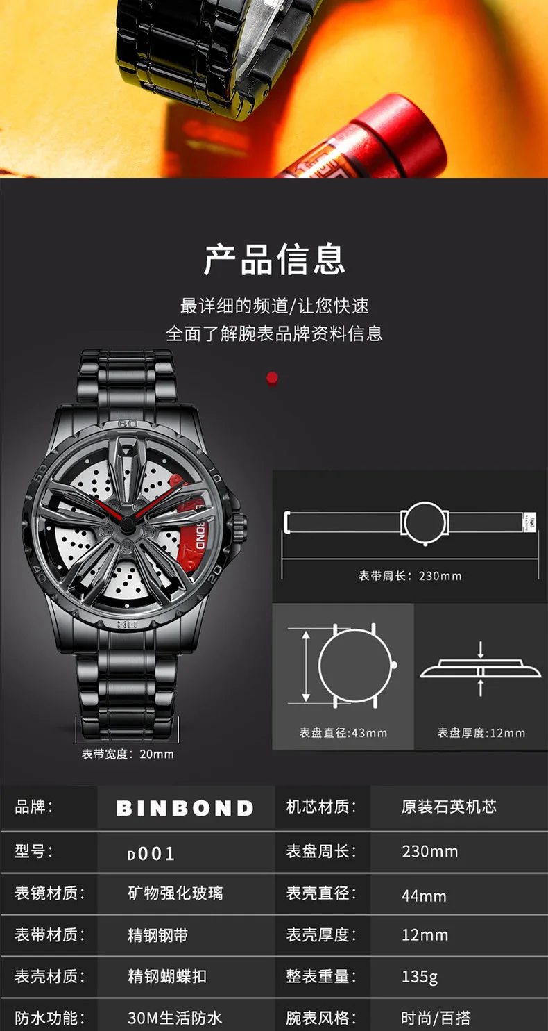 Type de montre: roue de ROTATION de moyeu de jante montres hommes