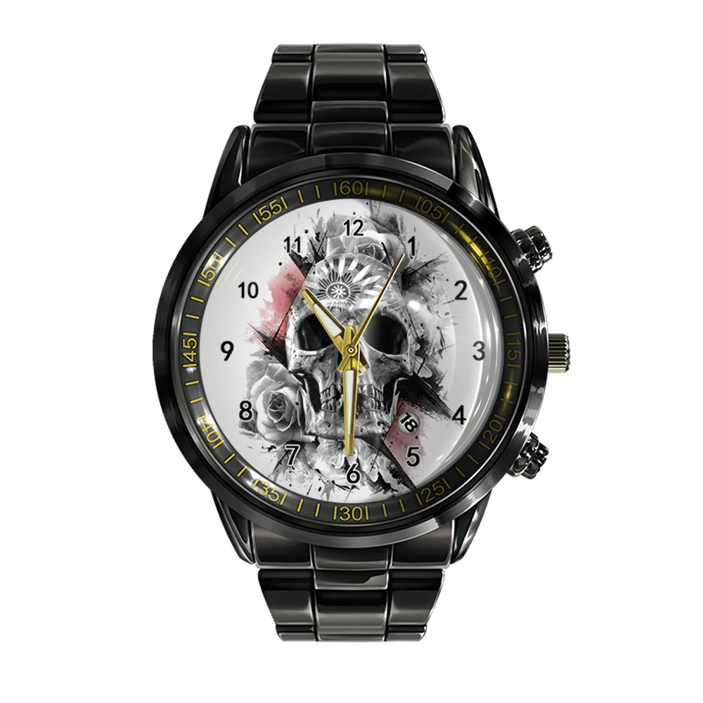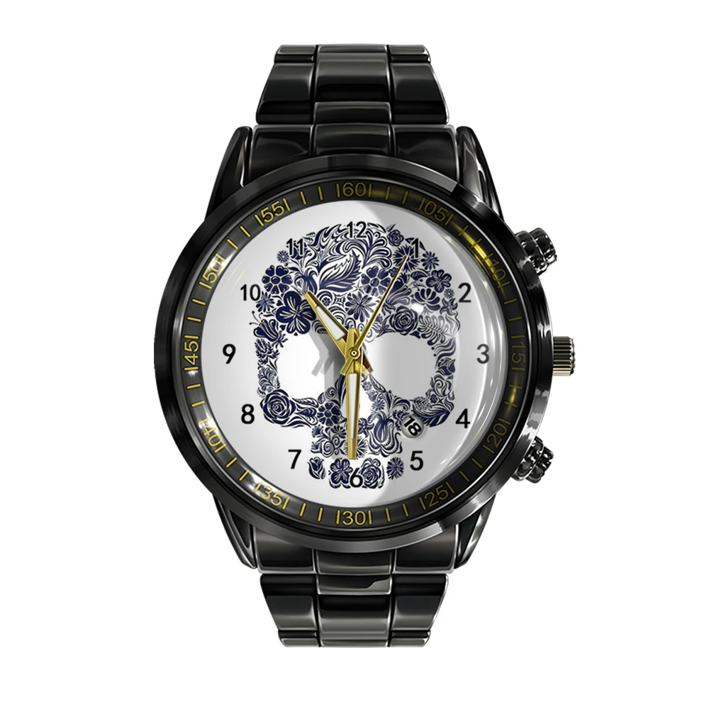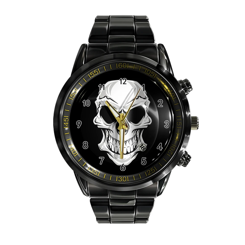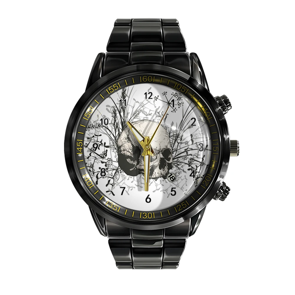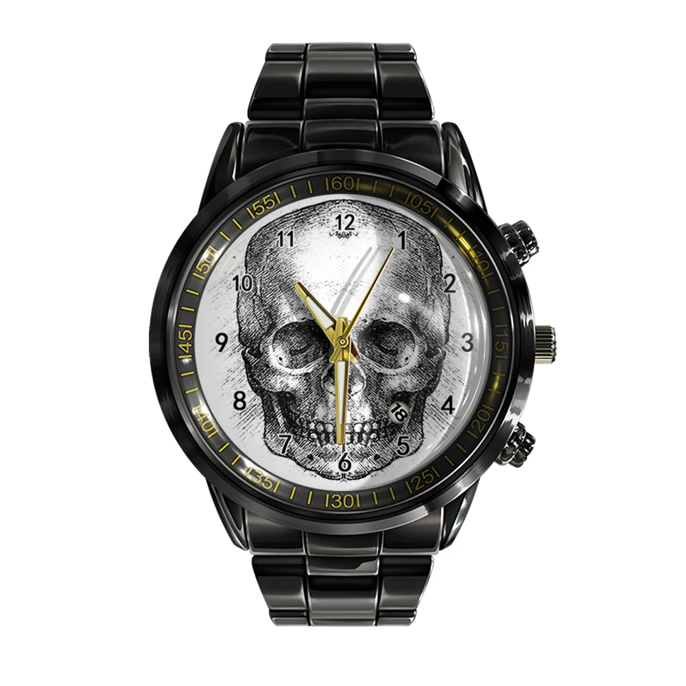« Skullwatch »: Montre-bracelet à quartz noire et blanche pour homme, tendance et décontractée.