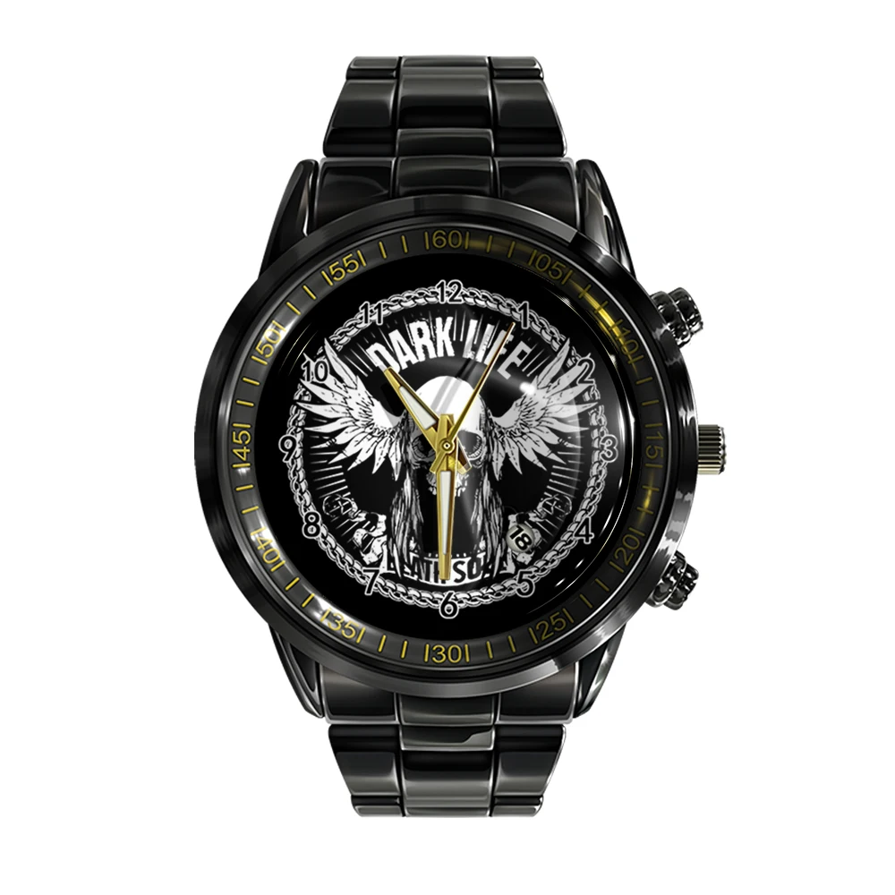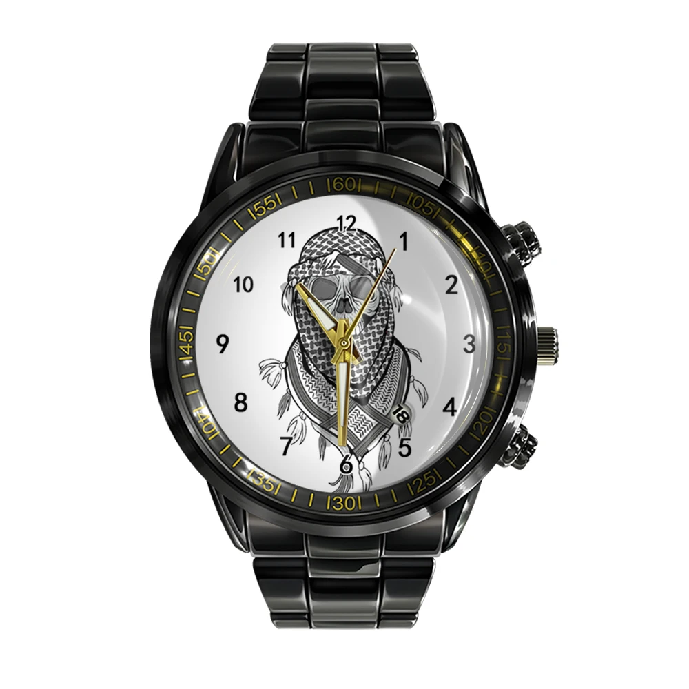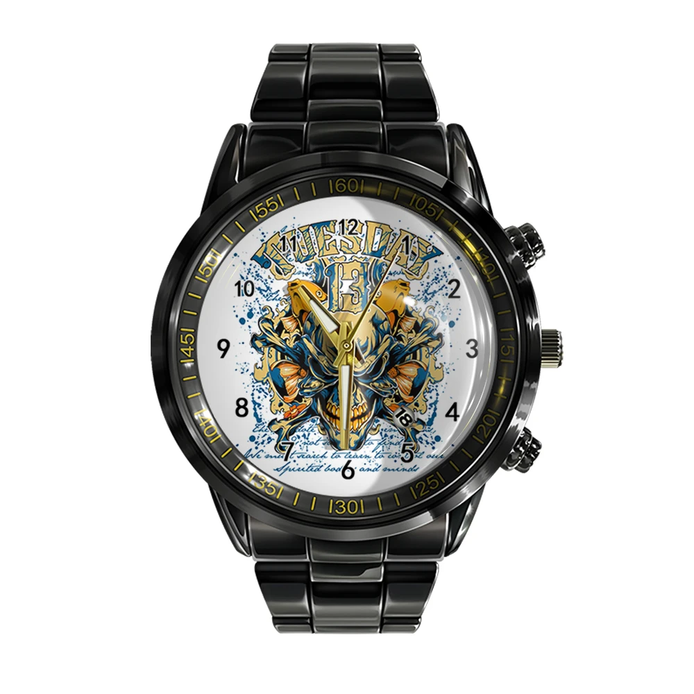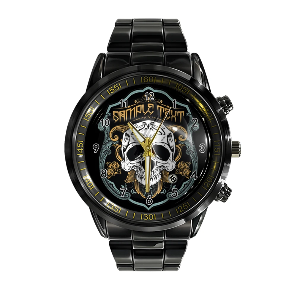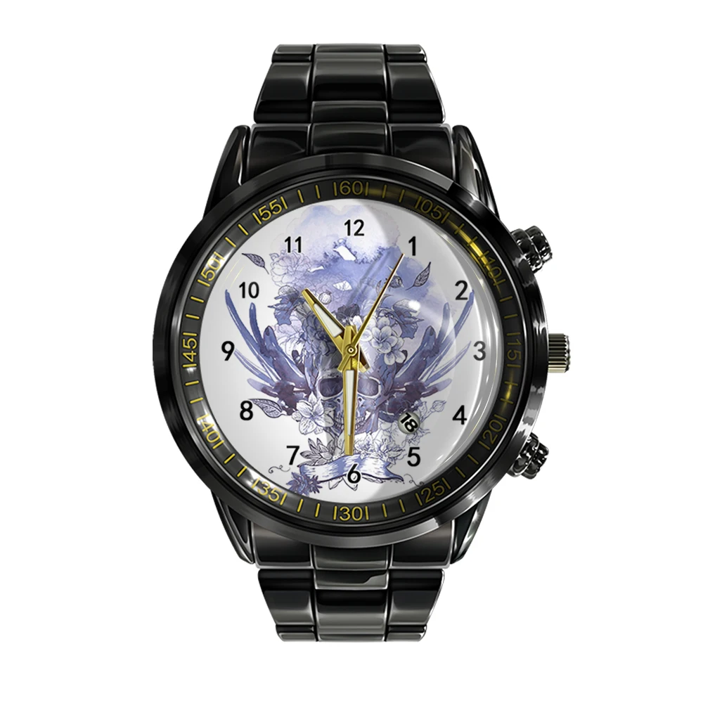 « Skullwatch »: Montre-bracelet à quartz noire et blanche pour homme, tendance et décontractée.