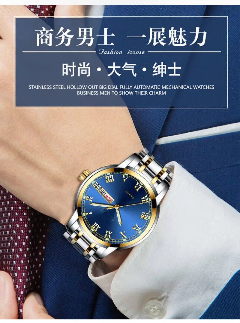 😎 Prêt pour un look qui impressionne ? Vous le méritez. Vous êtes un homme d’affaires qui aime être à la mode et qui aime être vu. Alors, pourquoi ne pas porter une montre-bracelet en acier inoxydable authentique, étanche, élégante et super mode ? 🤩