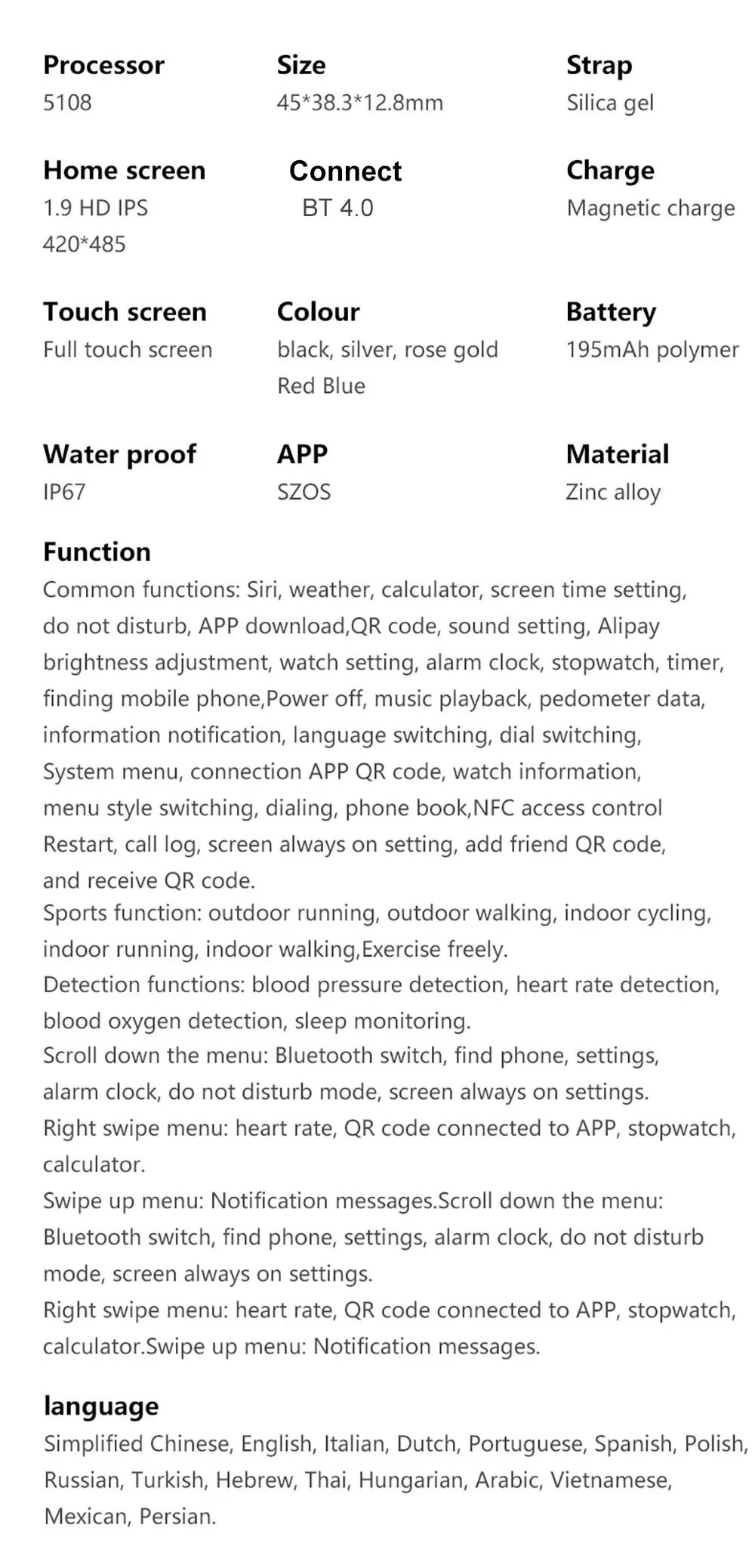 • Taille D'écran: 1.9inch smart watch