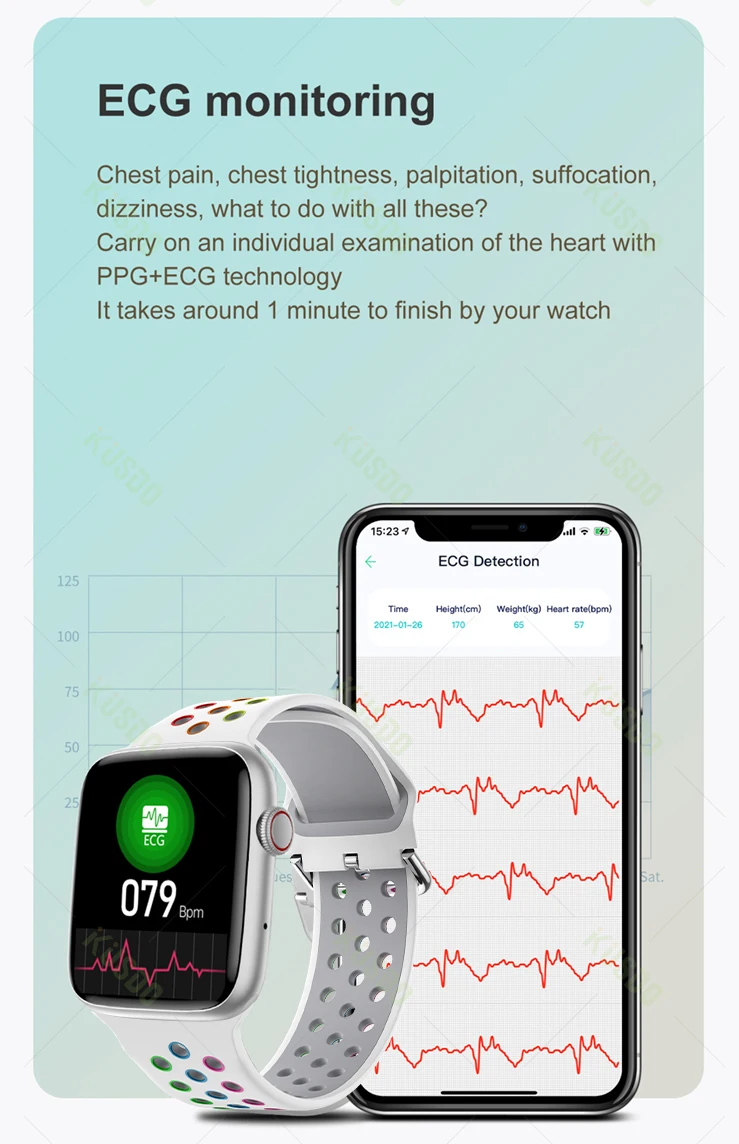 Douleurs à la poitrine, oppression thoracique, palpitations, suffocation, des étourdissements, ce qu’il faut faire avec tous ces? Transporter sur un examen individuel de la coeur avec PPG + la technologie ECG Il prend environ 1 minute pour terminer par votre montre
