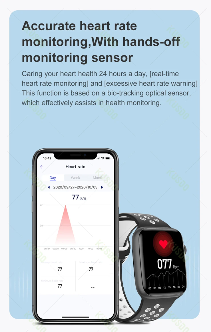 Prendre soin de votre coeur santé 24 heures un jour, [En temps réel surveillance de la fréquence cardiaque] et [excessive coeur taux avertissement] Cette fonction est basé sur un bio-suivi optique capteur, qui assiste efficacement en matière de veille sanitaire.