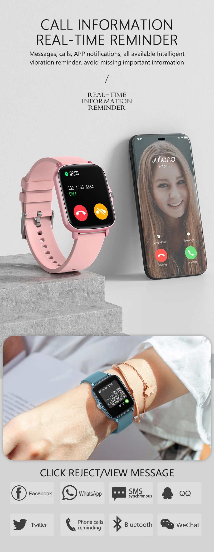 > Vie: Notifications de Smartphone, survie, météo, robinet, domination de la chant, 100 + cadrans de montre. (prend en avoué les cadrans de montre personnalisés.)