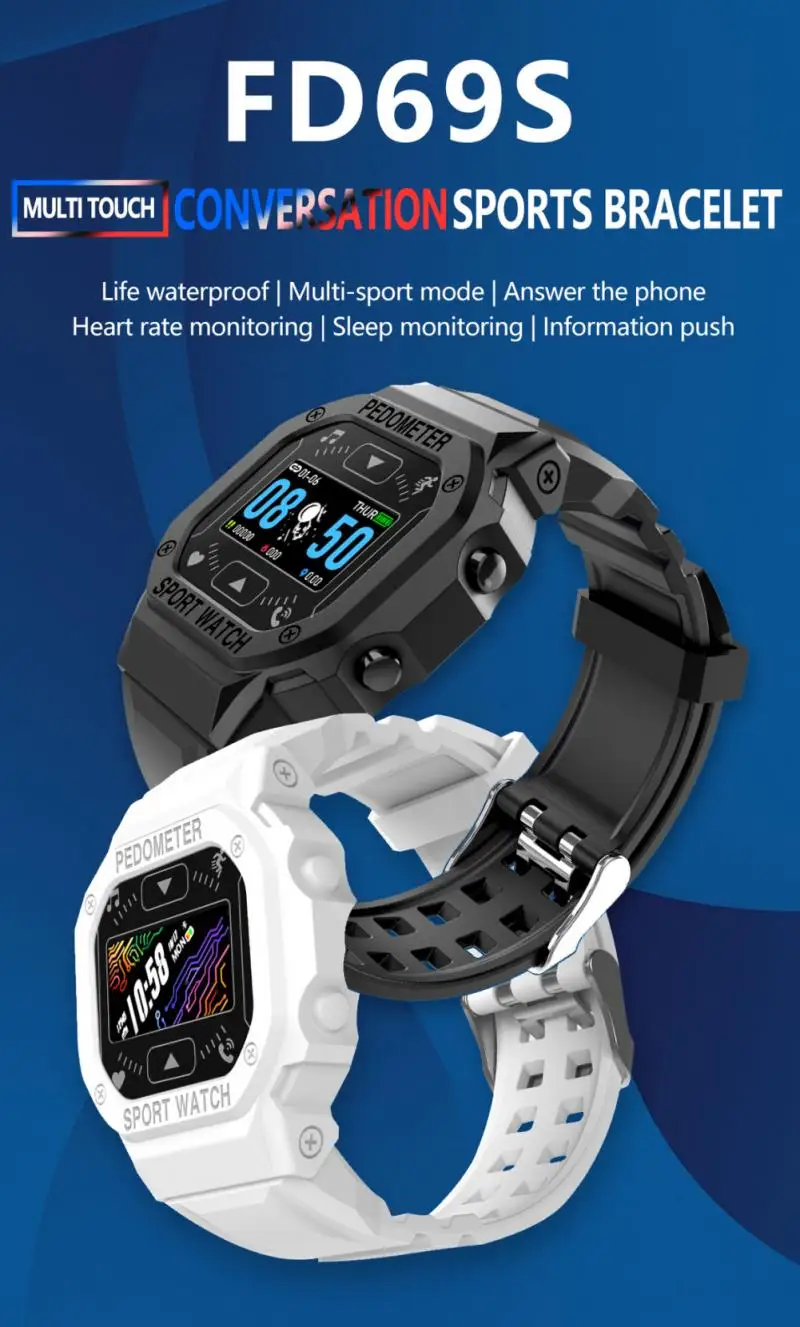 Montre connectée de sport militaire pour hommes et femmes, moniteur de fréquence cardiaque, de pression artérielle, d’activité physique, PK FD68S, nouvelle collection