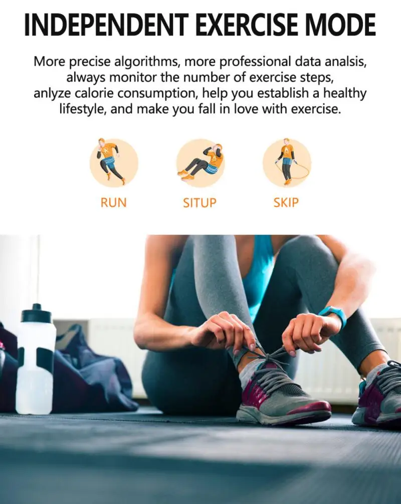● IP65 étanche: Ce bracelet a un imperméable à l’eau de vie, si vous pouvez le porter quand vous vous lavez le visage, se brosser les dents, et se laver les mains sans se soucier de dégâts d’eau pour le bracelet (ne pouvait pas mettre dans l’eau)