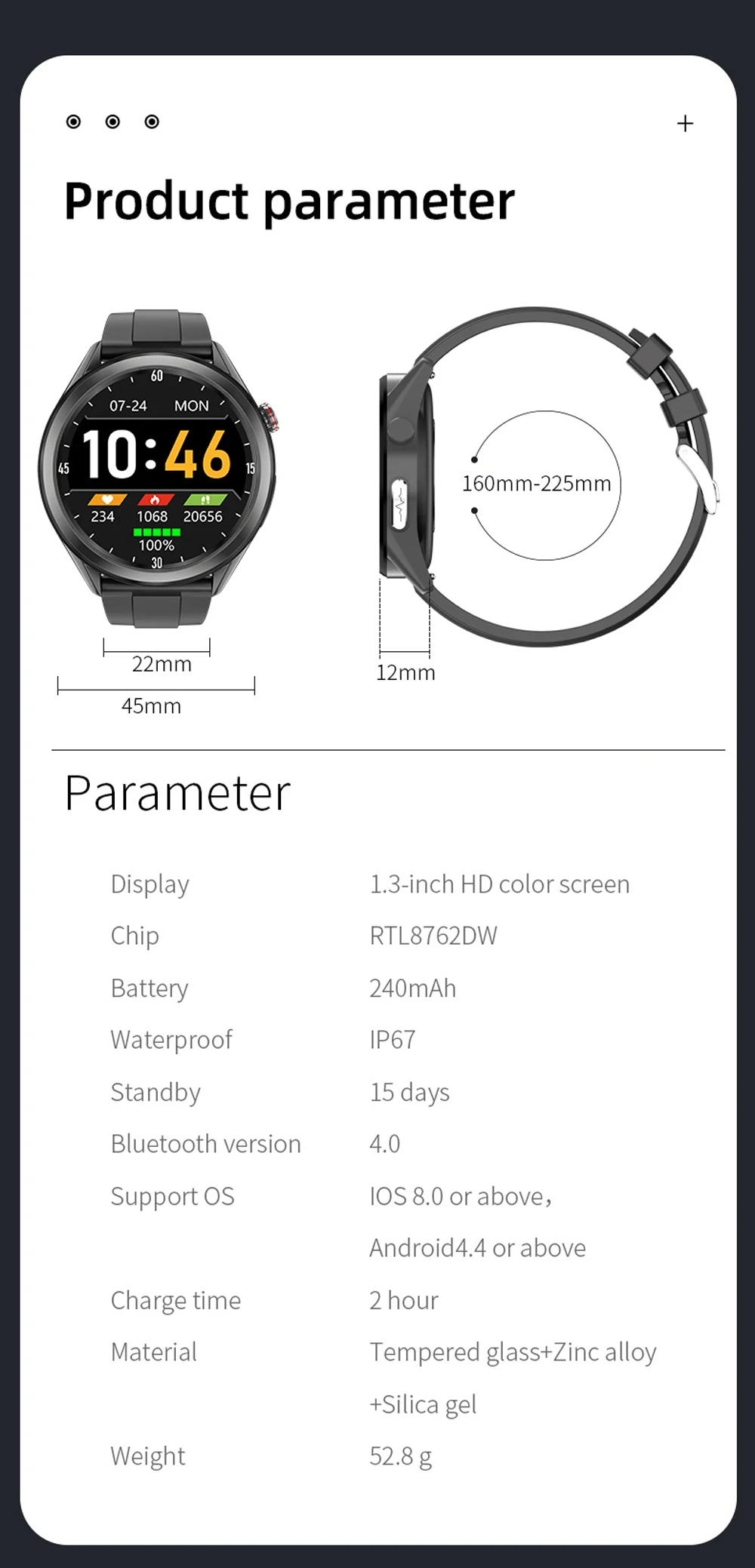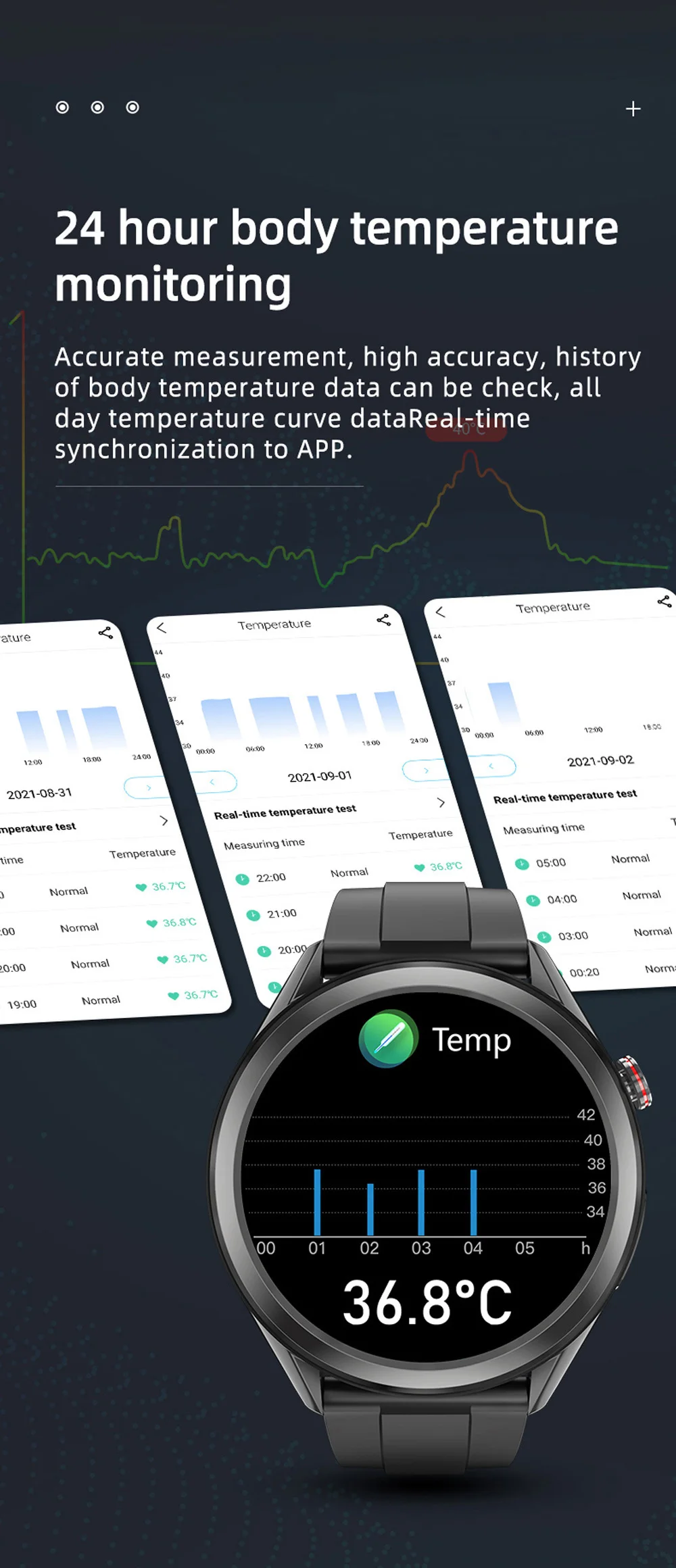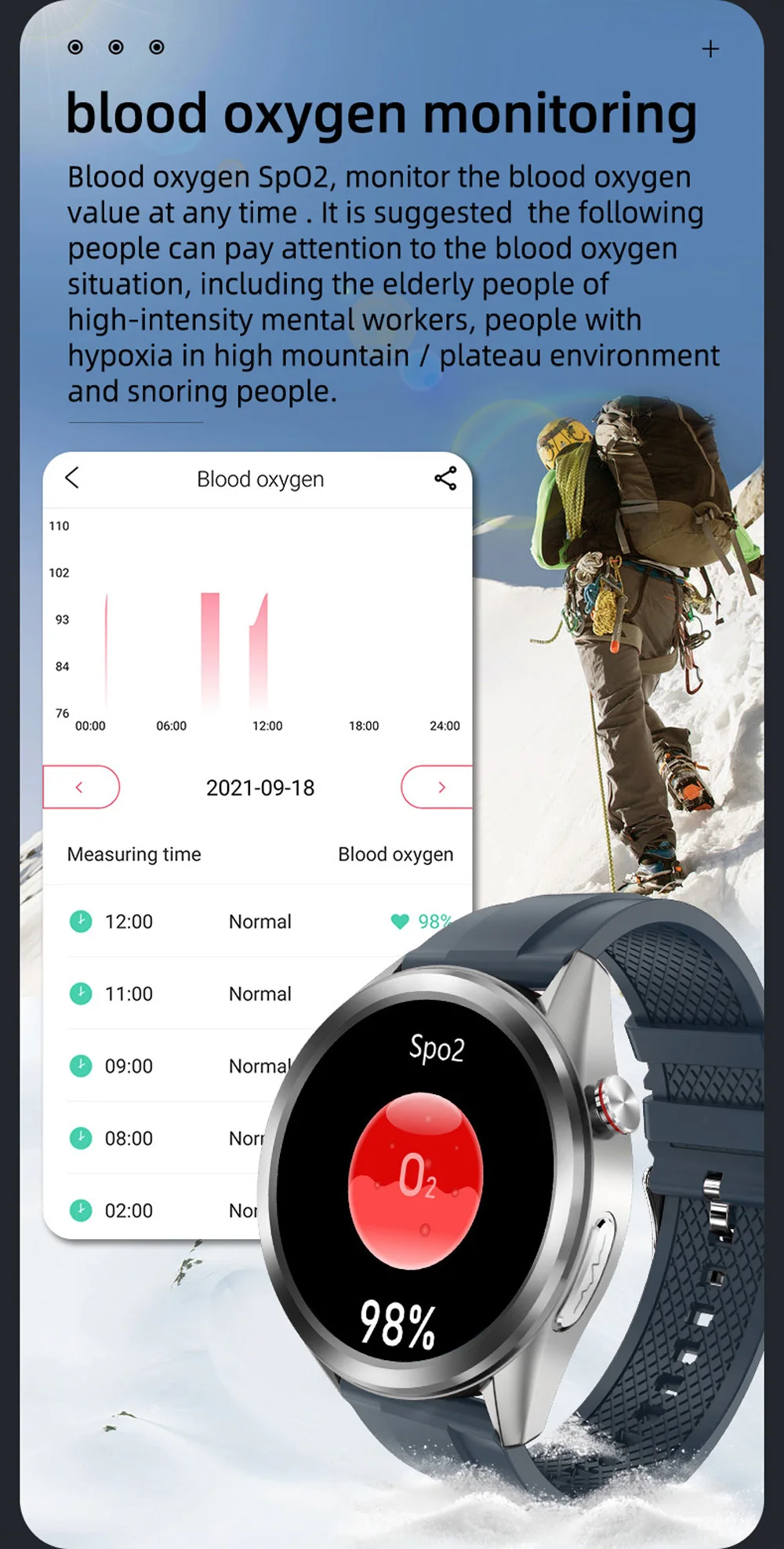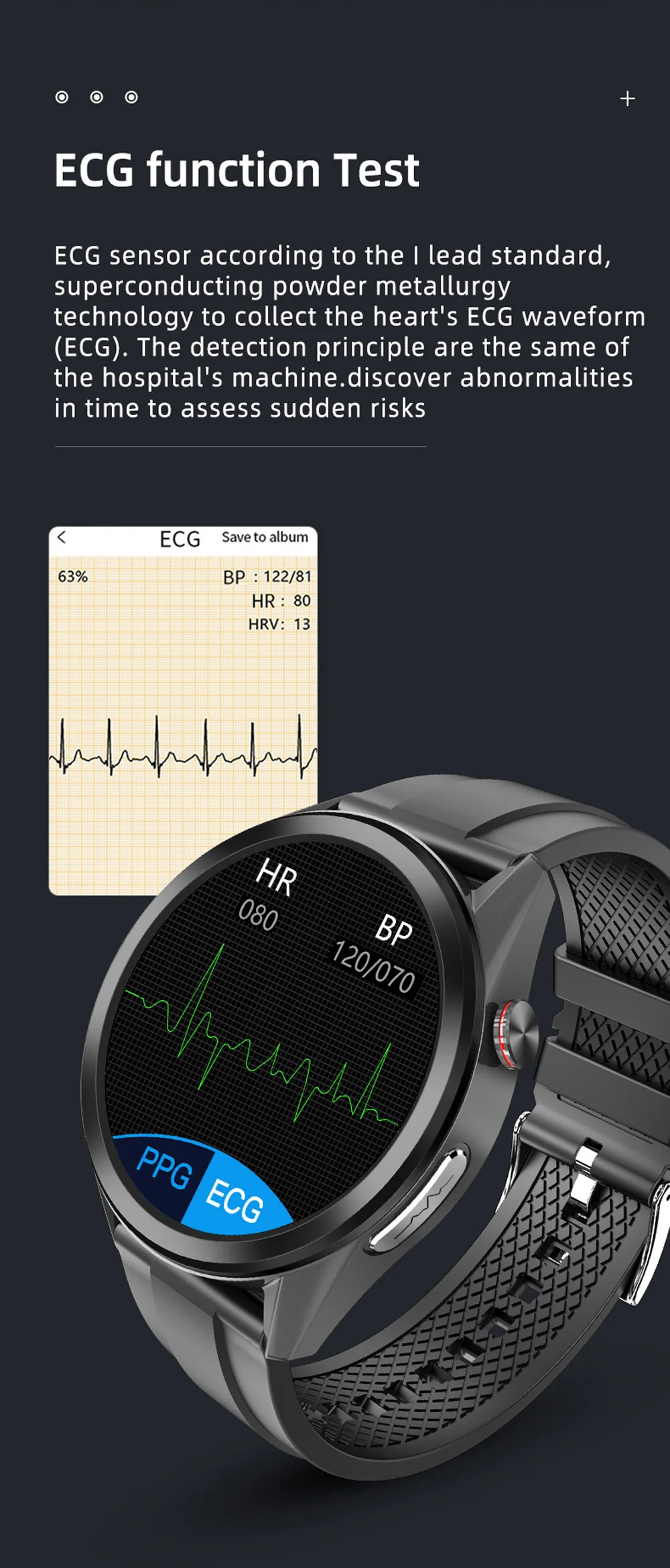 - Fonction: Blood pressure monitoring, ECG PPG detection, blood oxygen monitoring,body temperature monitoring