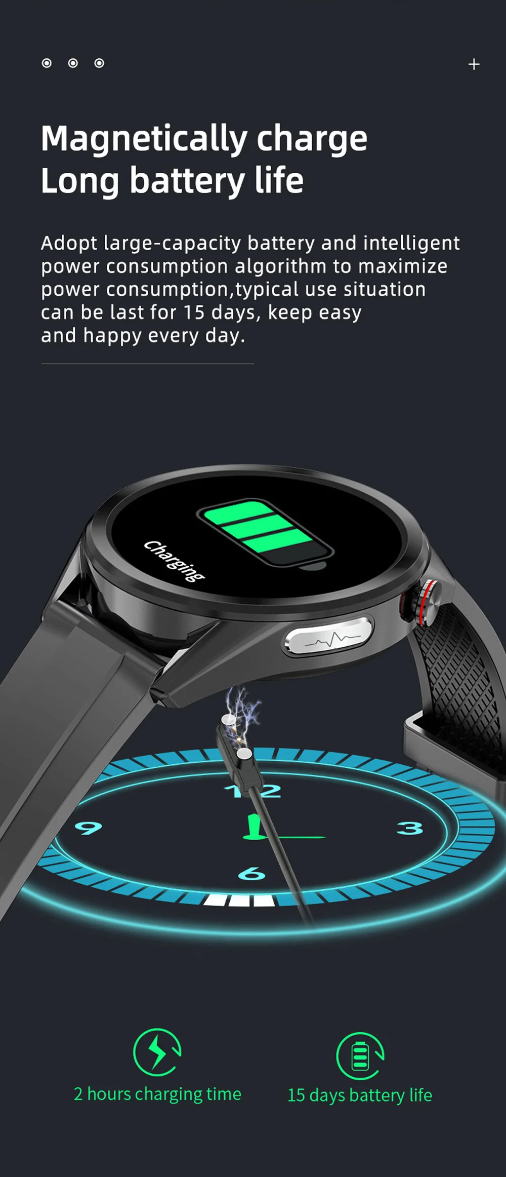 * Polymère haute capacité 240mAh, temps d’utilisation 4-5 jours, temps de veille 15 jours