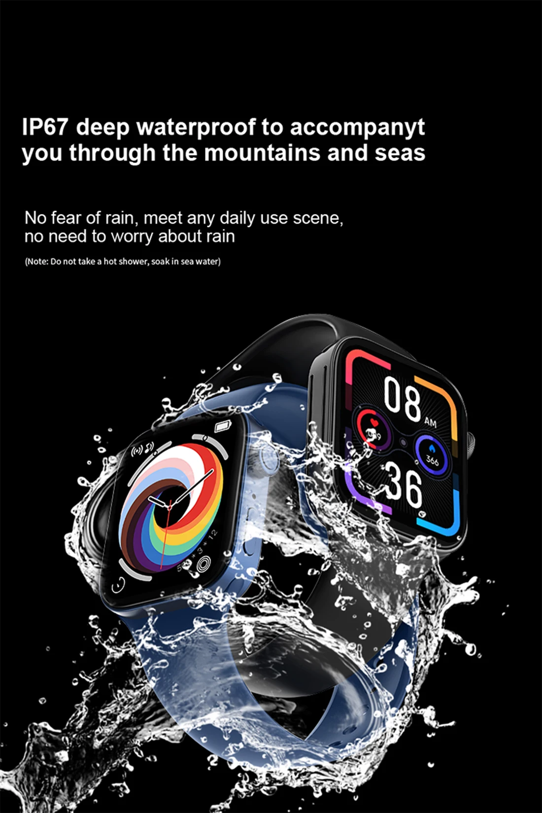 IP67 étanche, veuillez ne pas prendre la montre pour aller nager, plonger, prendre une douche et un sauna!!