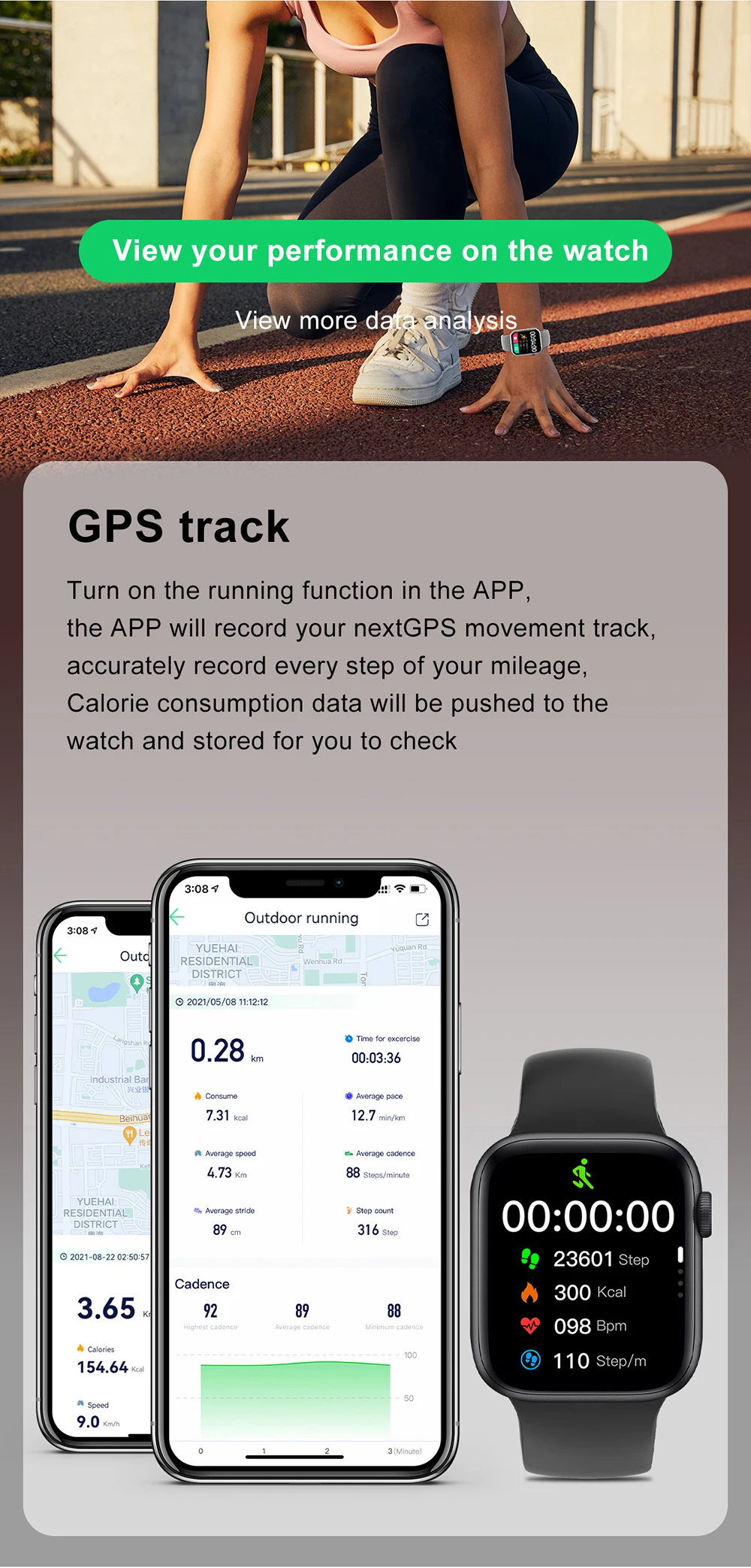 Moniteur de fréquence cardiaque, moniteur de sommeil, tension artérielle, appel bluetooth (passer un appel, recevoir un appel) et rappel de message, musique à distance/caméra. Réveil, chronomètre