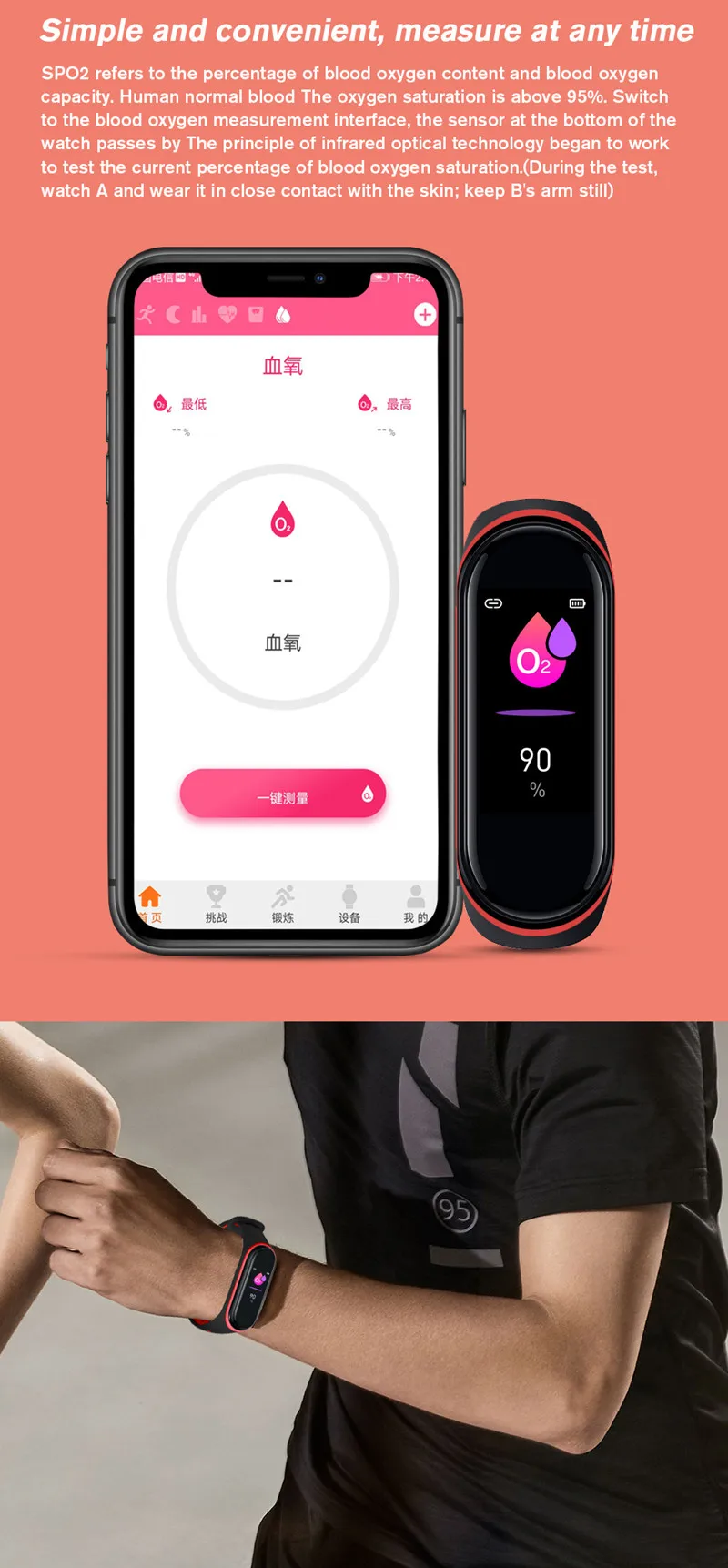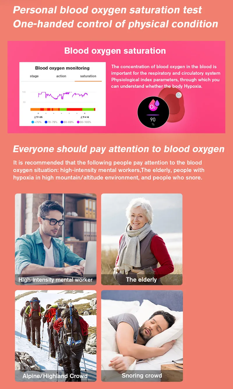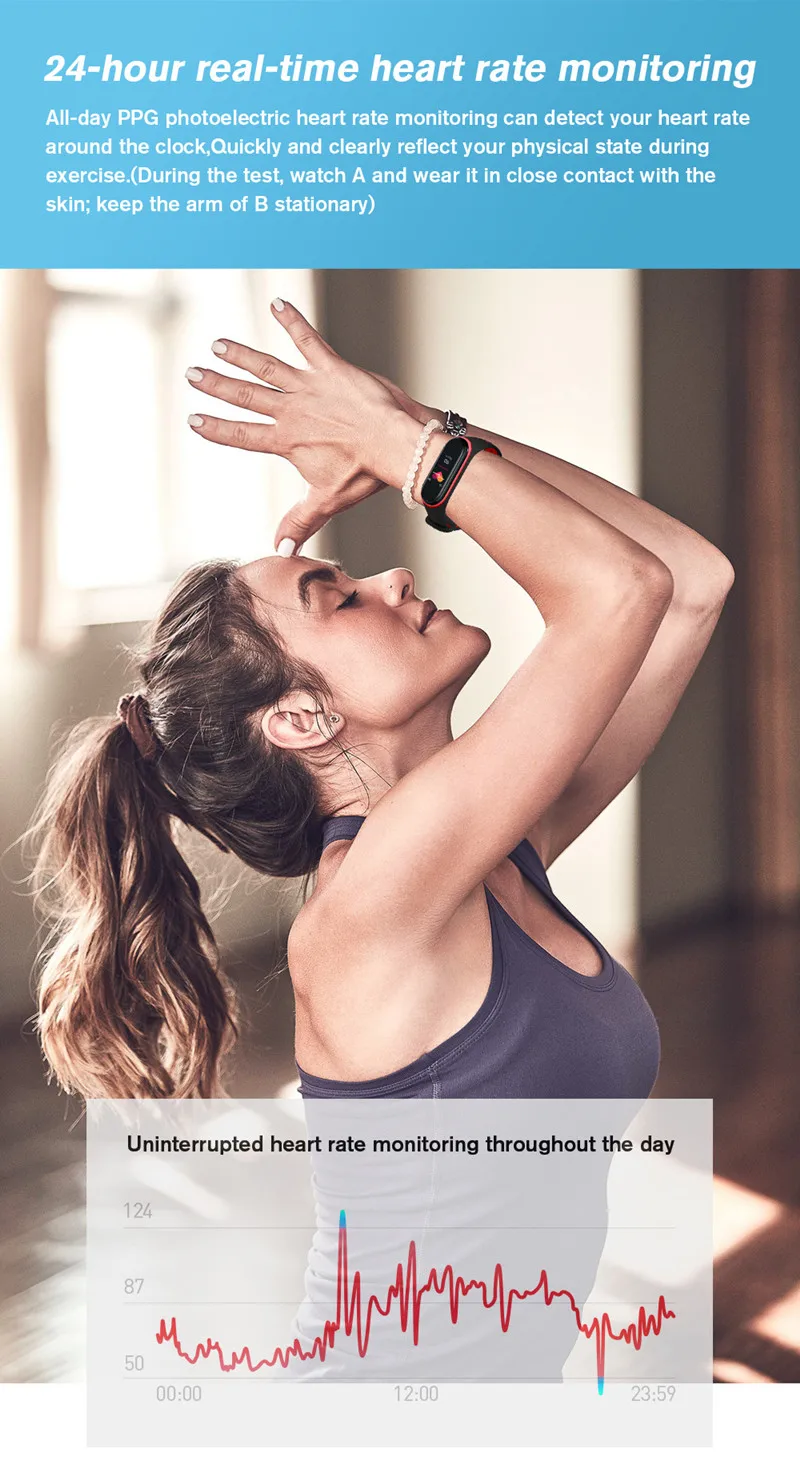 ④ Détection de fréquence cardiaque en temps réel sur 24 heures, surveillance de fréquence cardiaque photoélectrique PPG par tous les temps, vous pouvez vérifier votre condition physique en temps réel