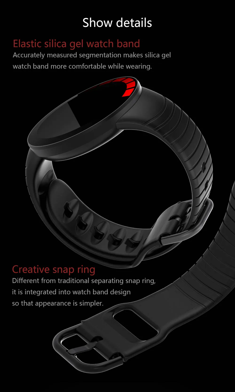 -Écran coloré de 1.28 pouces, résolution de 240*240, vous offrant une expérience visuelle merveilleuse!-Fonction de surveillance du sommeil avec données d’analyse du sommeil, connaître votre qualité de sommeil.-Plusieurs modes de sport, choisissez une montre de sport qui est élégante et augmente votre énergie athlétique, pour avoir une vie saine!-Contenu du Message push: appel téléphonique, SMS, Poussez et affichez les informations sur les médias sociaux.-Fonctions principales: surveillance de la fréquence cardiaque, surveillance de la pression artérielle/oxygène dans le sang, surveillance du sommeil, rappel de sédentarité, mesure multisports, horloge, alarme.-Supporte Android 4.4 et supérieur, iOS 8.2 et supérieur, version BT 4.0.-Résistant à l’eau: étanche IP68, peut nager (veuillez ne pas toucher l’eau chaude) -Langue: anglais, coréen, japonais, allemand, espagnol, français, italien, portugais, arabe, russe, néerlandais, indonésien, Hindi, polonais, turc nom: tefitibatterie: 200mah temps de charge: 2 heures d’autonomie en veille: ≈ 21 jours, utilisation normale: ≈ 10 jours écran principal: écran couleur IPS de 1.28 pouces résolution: 240*240 écran tactile: TouchRAM/ROM complet: 64M 160K