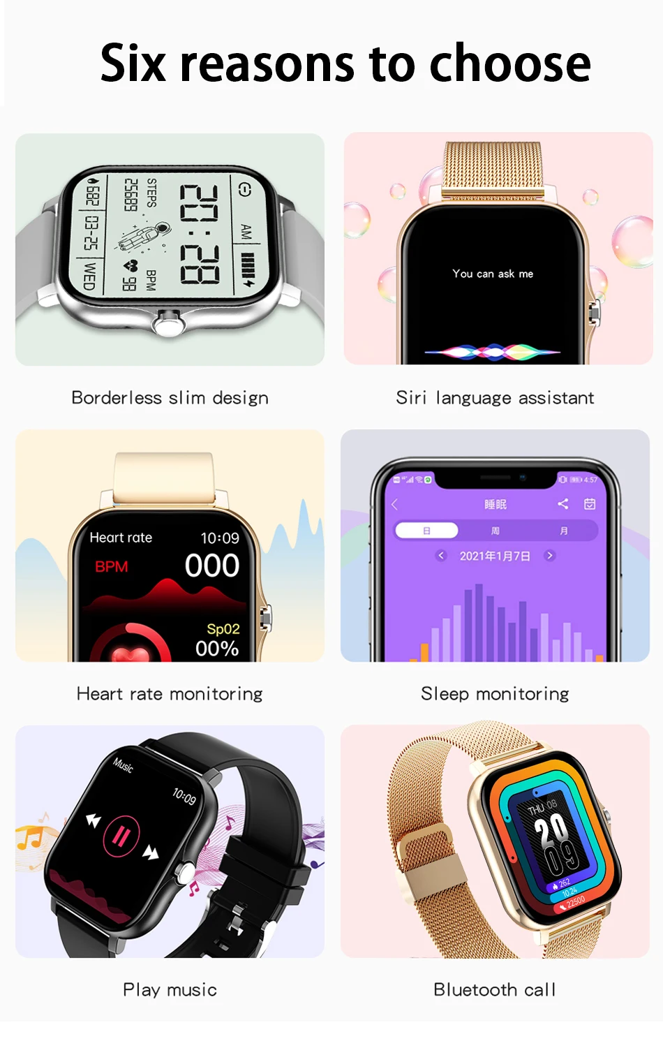 - function 7:: Heart rate, blood pressure, sleep, alarm clock, …