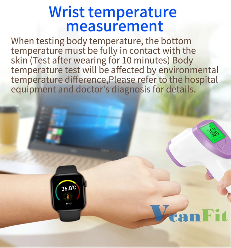 Lors du Test de la température corporelle, la température inférieure doit être entièrement en contact avec la peau (test après 10 minutes) le Test de température corporelle sera affecté par la différence de température ambiante, veuillez vous référer à l’équipement hospitalier et au diagnostic du médecin pour plus de détails.