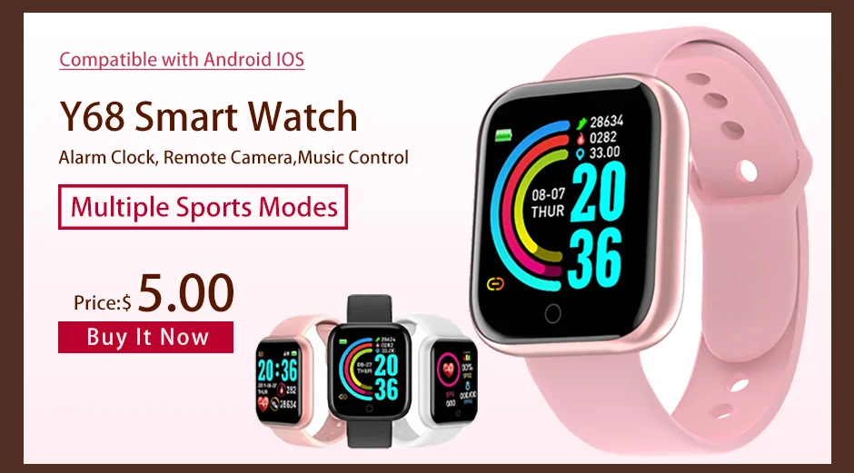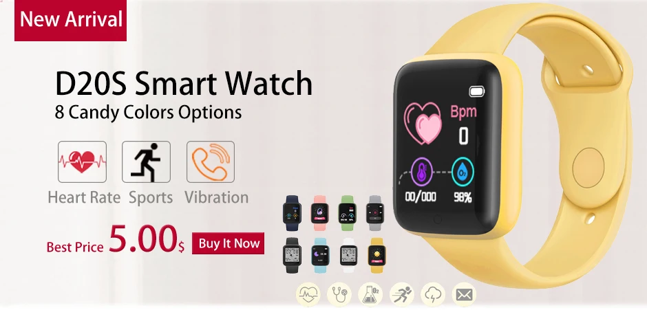 Montre connectée Y68 pour hommes et femmes, Bluetooth, moniteur d’activité physique, moniteur de fréquence cardiaque, étanche IP67, D20, 2022