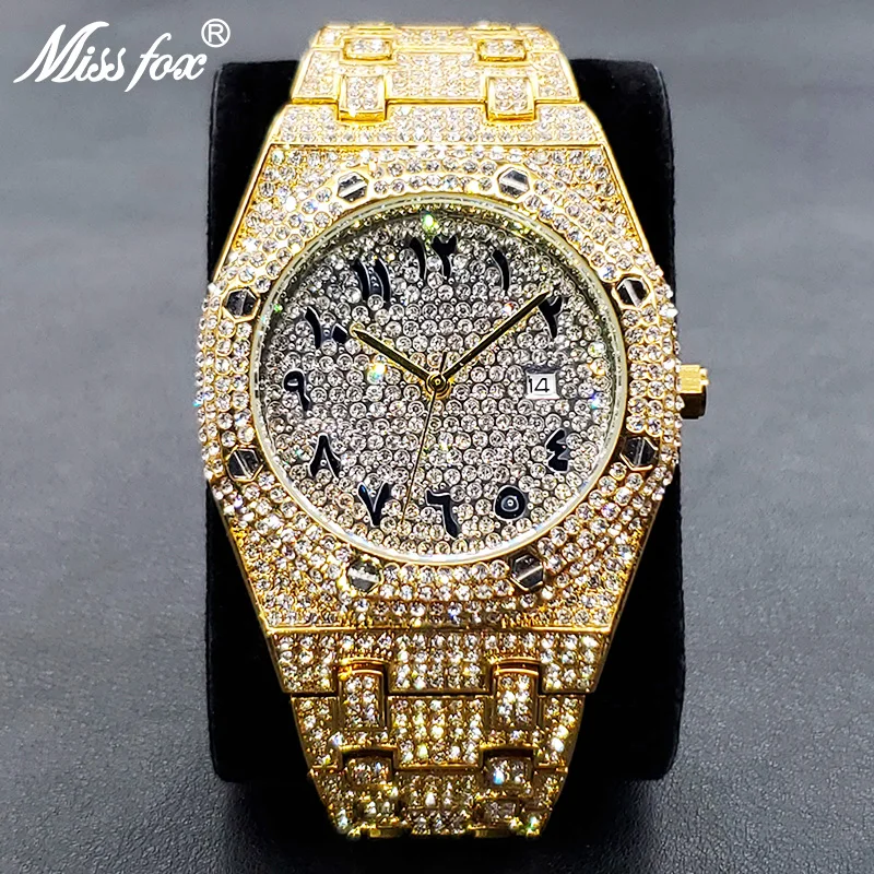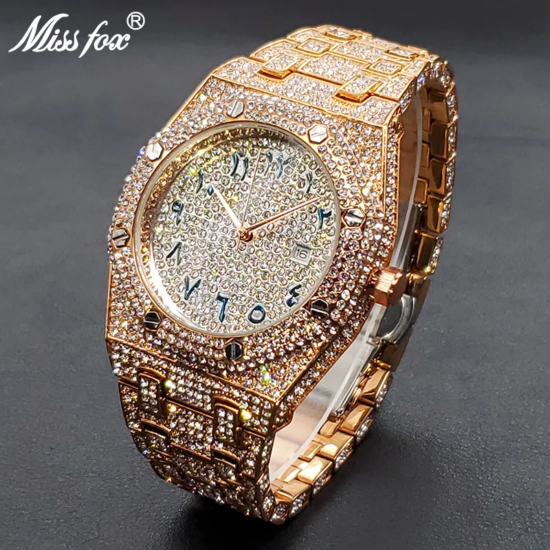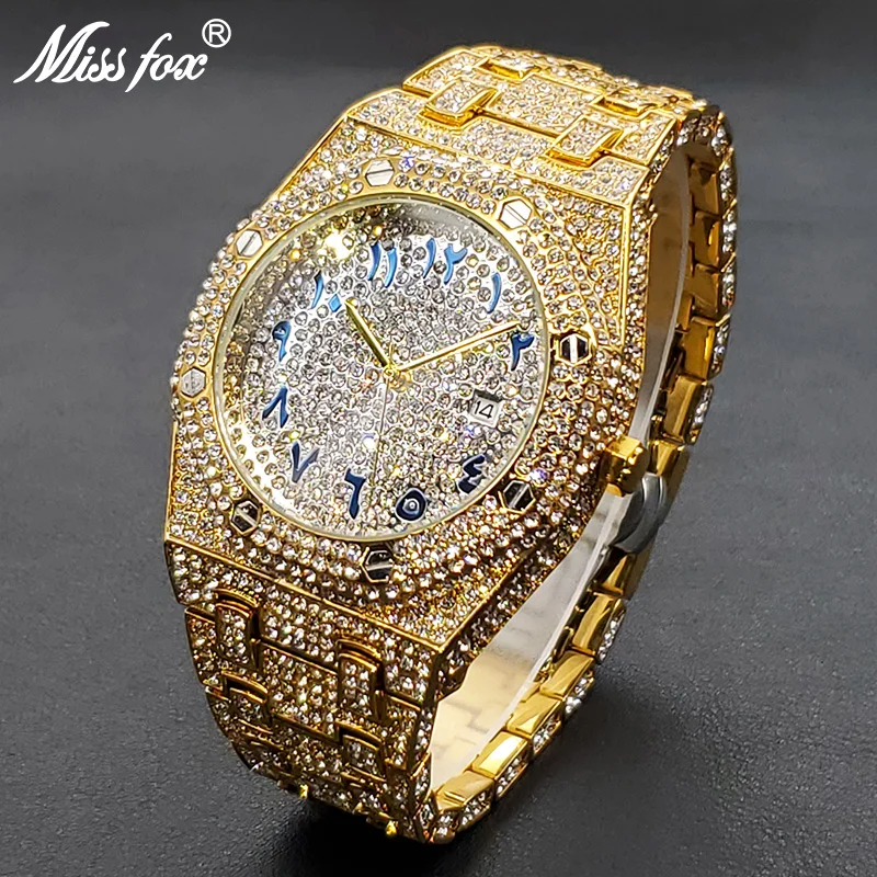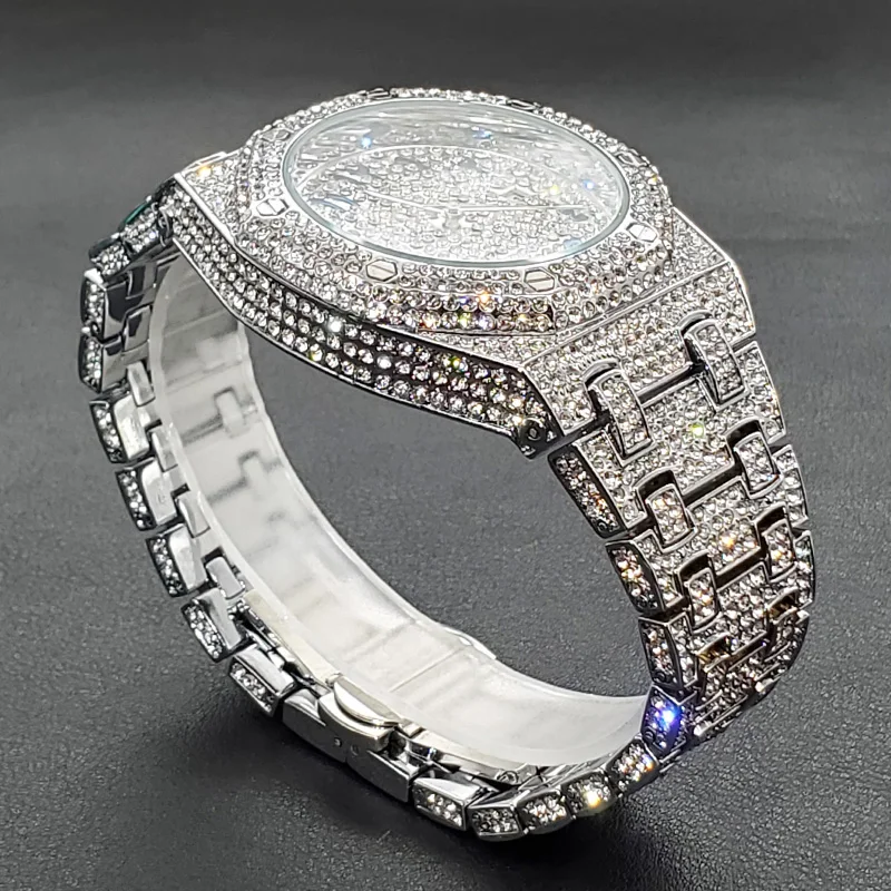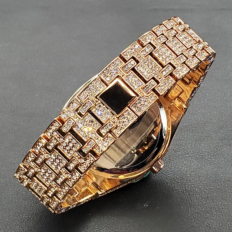 « Aurum Quartz » – Montre luxe en diamant, acier inox, style Hip Hop, étanche, offre spéciale.