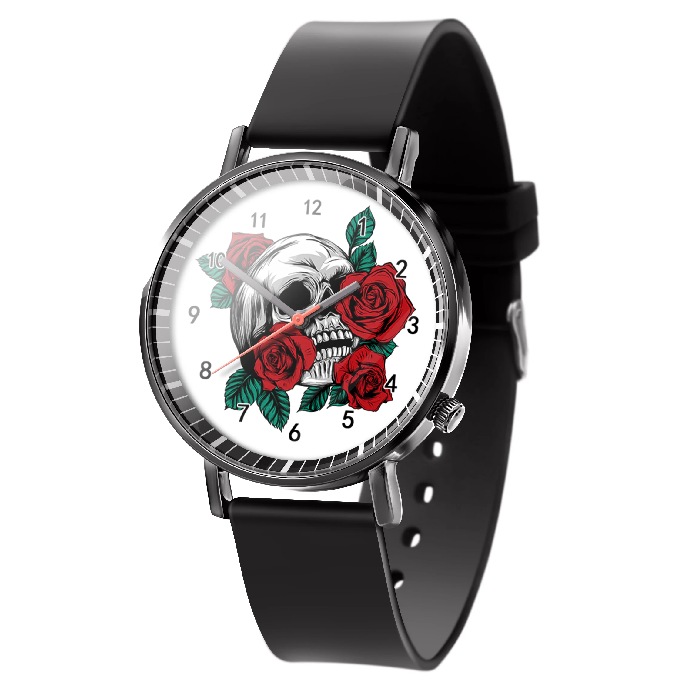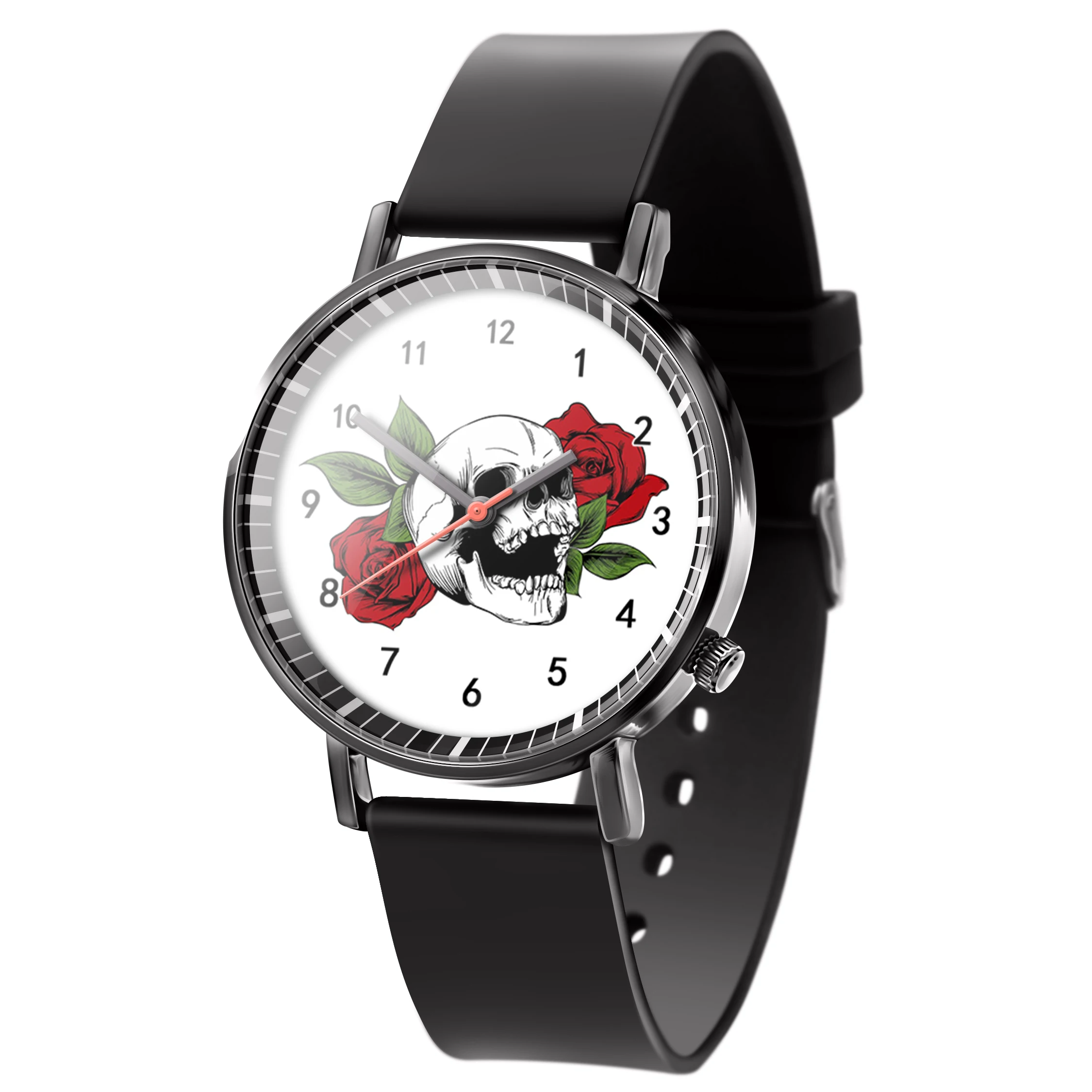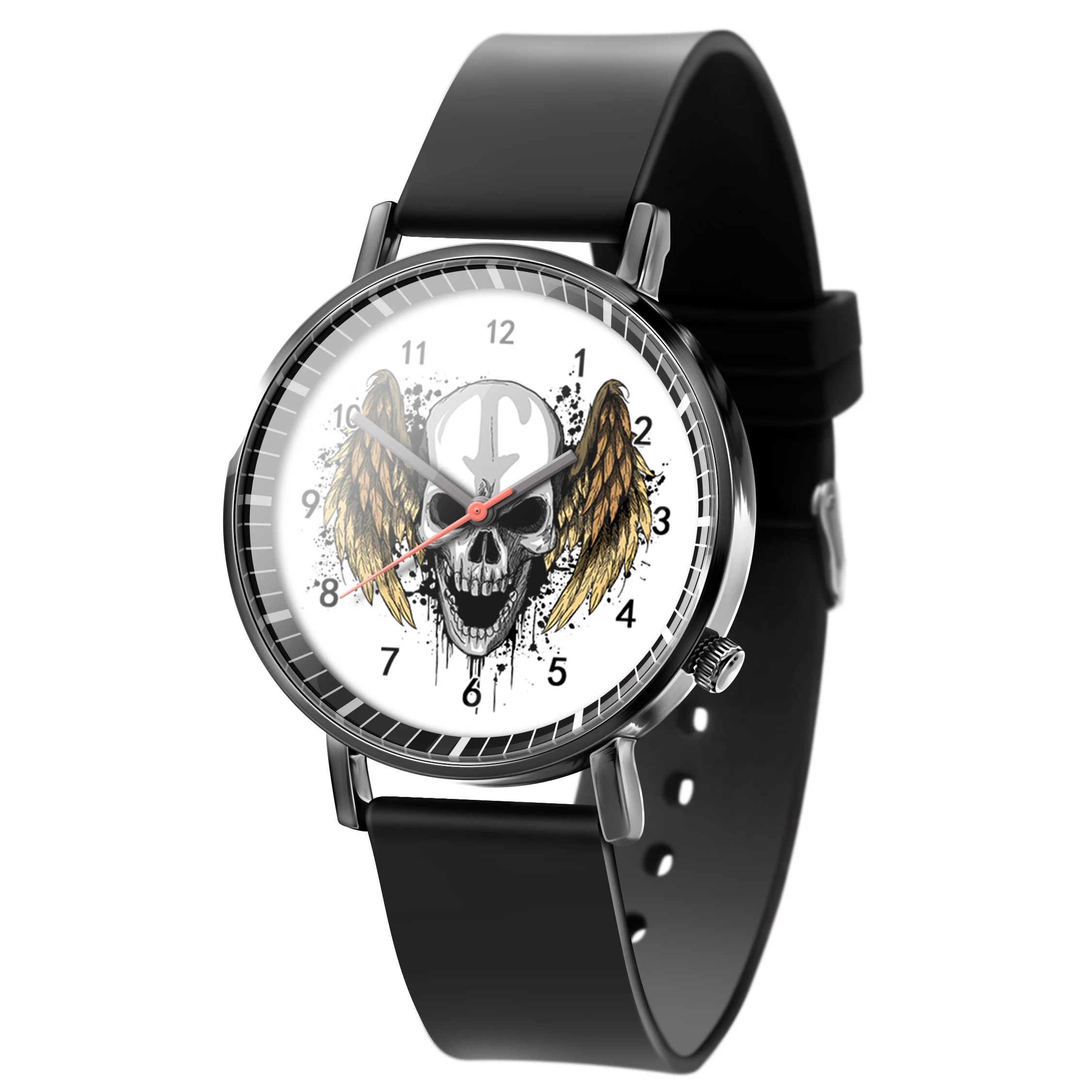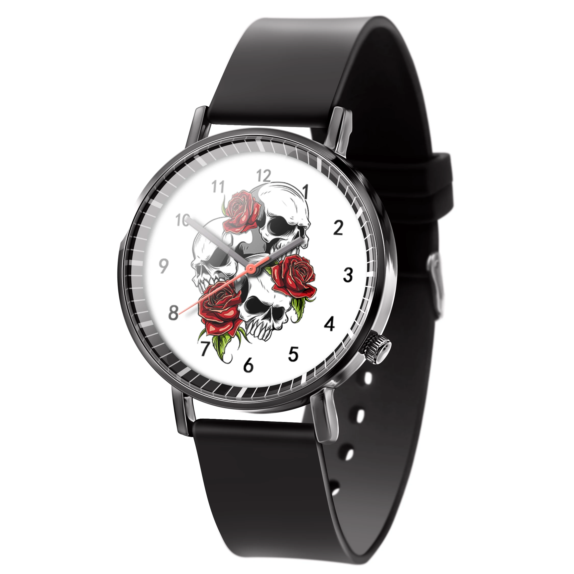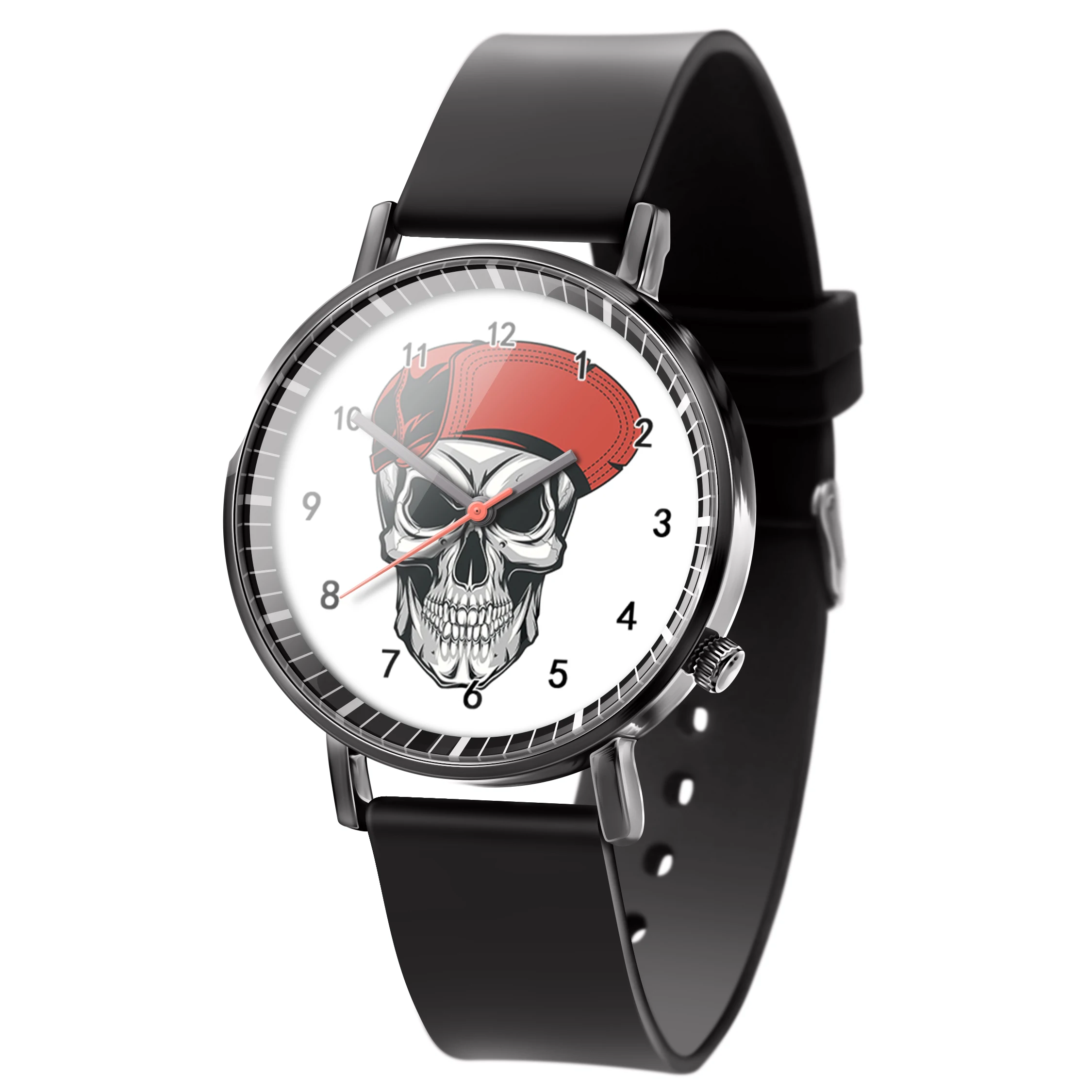 « Skullwatch » – Montres skull homme, bracelet en caoutchouc, noir et blanc, tête de mort, à Quartz, sport, nouvelle tendance.